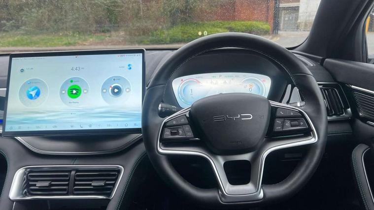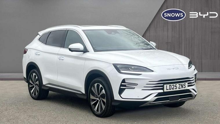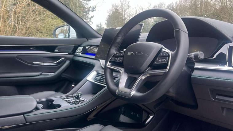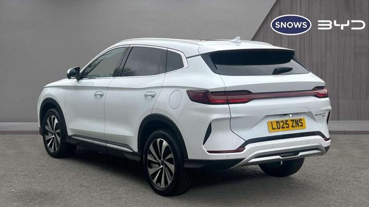12.3" TFT full LCD instrument panel, 360 camera, Adaptive Cruise Control (ACC) and Intelligent Cruise Control (ICC), Automatic vehicle hold, Blind spot detection, BYD voice control assistant "Hi, BYD", Controller Deceleration Parking (CDP), Drive mode select (Eco, normal, sport, snow), e-Call (emergency call), Electric tailgate release, Emergency Lane Keeping Assist (ELKA), Forward collision warning, Front and rear parking sensors, Front cross traffic alert and front cross traffic brake, Head up Display, Indirect driver fatigue management, Intelligent Speed Limit Control (ISLC), Keyless system entry and start, Lane change assist, Lane Departure Assistant (LDA) and Lane Departure Warning (LDW), Lane departure prevention, PAS, Predictive collision warning, Rear collision warning, Rear cross traffic alert and rear cross traffic brake, Rollover Control System (RMI), Smartphone wireless charging, 2 x 15W, Traffic sign recognition (TSR), Vehicle-to-Load (V2L) function, 11kW on board charger, Mode 3 Type 2 charging cable (3 phase), V2L (Vehicle to load) power strip - Type F, 15.6" Electrically rotatable touchscreen, FM/DAB+ radio, Front USB ports, 1 x 18W Type C, 1 x 60W Type C, Infinity sound system with 10 speakers, Rear USB ports, 2 x 18W Type C, Aluminium roof rails, Auto dimming interior rear view mirror, Auto headlamps (on/off), Dynamic welcome lights, Electric folding and heated door mirrors, Emergency tow hook, Exterior mirror footlights, Follow me home headlights (The headlights turned on in advance and delayed off function), Front windscreen, UV protection, thermal insulation and sound proofing, High beam assist, LED 3rd brake light, LED daytime running lights, LED Headlights, LED taillights, One touch electric front/rear windows with pinch protection, Panoramic sunroof with anti-pinch sensor and electrically adjustable sunshade, Rain sensor windscreen wipers, Rear fog lights, Rear side wing doors, Rear window and rear windscreen with tinted glass, Rear wiper, 12V power outlet, 3 seat bench in 2nd row, 8 way electrically adjustable drivers seat, Adjustable rear headrests, Boot parcel shelf, Driver and passenger sunvisors with illuminated vanity mirrors, Driver seat memory function, Front centre armrest with 2 cupholders, Front LED reading lights, Front passenger seat with 4-way electric adjustment, Front seat footlights, Heat pump, Heated front seats, Heated steering wheel, Integrated headrest in front seats, ISOFIX and i-Size for front passenger and outer rear seats, LED front door lights, Nylon floor mats, PM2.5 air filter, PM2.5 air purification system, Rear air vents, Rear armrest with 2 cupholders, Rear side LED reading lights, Rhythm-reactive multi-colour ambient lighting, Single front passenger seat, Split folding rear seats - 40/60, Vegan leather multifunction steering wheel, Vegan leather upholstery, Ventilated front seats, 3x3 point rear seatbelts, ABS/EBD, Automatic emergency braking system, Brake override system (BOS), Child presence detection, Comfort stop, Door open warning, Driver airbag, Electric parking brake, Force limiting pre-tensioned front seat belts, Front centre airbag, Front passenger airbag, Front passenger airbag deactivation, Front side airbags, Hill descent control, Hill hold control, Hydraulic Brake Assist (HBA), Hydraulic brake boost, Mechanical child safety lock, Rear middle seat force limiting seat belt, Rear seat belt pretensioners, Reflective vest, Side curtain airbags, Traction control system (TCS), Tyre pressure monitoring system (TPMS), Vehicle Dynamics Control System (VDC), Warning triangle, 2 x Smart keys, Anti theft alarm system, Automatic door locking, 19" Bi-colour alloy wheels, Tyre nut covers remover, Tyre repair kit,