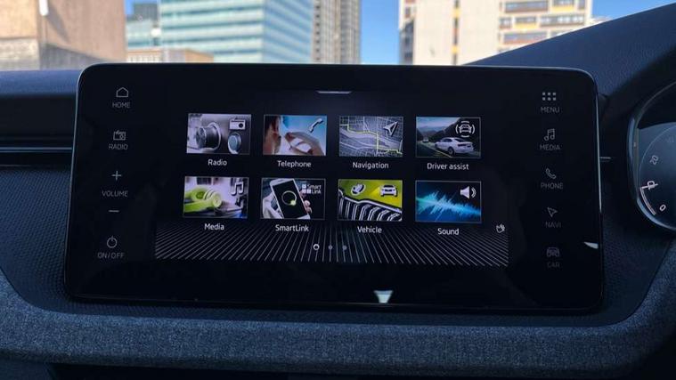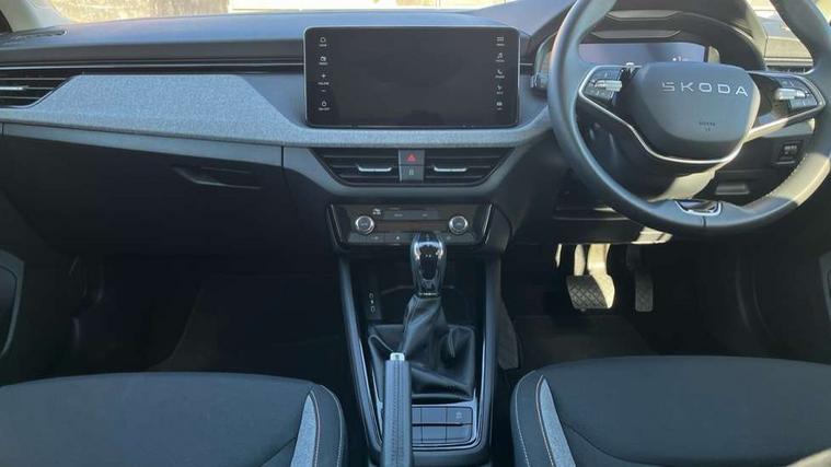 Advanced driver attention and drowsiness monitor, Bluetooth, e-Call (emergency call), Front assist system, PAS, Rear parking sensors, Rear view camera, Speed limiter, Tailgate, Traffic sign recognition, Virtual Cockpit - 10.25" digital display, Voice control system, Wireless smartlink, 4 USB C ports, 8 Speakers, 9.2" Skoda navigation display, DAB radio, Auto dimming rear view mirror, Automatic headlamp activation with Coming home and Leaving home feature, Automatic high/low beam, Body colour bumpers, Body colour door mirrors and handles, Chrome moulding around grille, Front and rear electric windows, Full LED headlights, Heated rear window, LED 3rd brake light, LED brake lights, LED daytime running lights, LED front turning lights, LED high beam, LED low beam, LED taillights, Rear LED fog light, Rear side wing doors, Rear wiper, Tinted windows, Unique dark chrome design logo on alloy wheels, 12V socket in luggage compartment, 3 seat bench in 2nd row, Black / Grey armrest stitching, Black hotstamping, Cargo elements, Chrome inner door handles, Door inserts in satin black, Driver and passenger sun visors with vanity mirror, Dual zone climate control, Front and rear roof lights, Front centre armrest, Front head restraints, Glasses storage in roof liner, Height adjustable driver seat, Height adjustable passenger seat, Ice scraper, Illuminated glove compartment, Inner circulation control with pollen filter, ISOFIX for front passenger seat, Isofix preparation for back seats, Leather gearknob and handbrake lever, Loft cloth upholstery, Luggage net under rear parcel shelf, Manual lumbar support for front seats, Net package and top tether hooks in boot space, Pearl grey ceiling, Pocket on the back of both front seats, incl. mobile phone pockets, Single front passenger seat, Skoda lettering on steering wheel, Textile floor mats, Third rear headrest, Ticket holder, Top tether for front passenger seat, Umbrella in driver's door, 3x3 point rear seatbelts, ABS, Child locks, Curtain airbags and front side airbags, Disc brakes, Driver and front passenger airbags, ESP, Hill hold control, Manual leather parking brake, One tone horn, Passenger airbag switch off function, Seatbelt reminder for driver and front passenger, Tyre pressure monitoring system, Anti theft alarm system with interior monitoring, backup horn and towing protection, Anti-theft wheel bolts, Remote central locking with 2 remote folding keys, SAFE function for remote central locking, Decord pad, door inserts Kota uni,