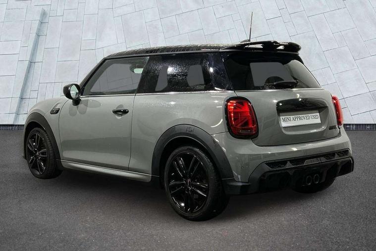 Automatic start/stop function with brake energy recuperation, Compatible mobile phone bluetooth with audio streaming, Cruise control with brake assist, Electro-mechanical speed dependant steering assistance, Flexible car sharing preparation, Instrument cluster, MINI Driving Modes - centre toggle switch to control driving setting (sport, mid and green), Mini E-call, MINI TeleServices, On board computer, Rear park distance control, Service interval indicator, Adaptive suspension, Double Vanos system, Fully variable valve control, High precision injection, Performance Control, Steptronic sport transmission with double clutch and steering wheel paddles, 4 speakers in front door trims and underneath front seats, 8.8" touchscreen with LED ring, FM tuner and DAB digital radio, Automatic headlight activation switch, Bonnet scoop, Dynamic brake lights, Electric front windows, Heated rear window, Heated windscreen washer jets, JCW Aerodynamic kit - Front and rear bumpers with sporty JCW styling and part-painted side sills with MINI John Cooper Works door sill finishers, John Cooper Works rear spoiler, LED headlight with closed ring and daytime driving lights, Metal door sill strips with Cooper S, Model logo Cooper S on right of tailgate, Radiator grille chrome border with honeycomb structure including S Badge, Rain sensor window wipers, Rear fog lights, Rear LED lights with union jack design, Rear window wiper, Side scuttle panel with integrated indicator, Sun/heat protection glass, Two central exhaust tailpipes with chrome finisher, White indicator lenses, 12V Accessory socket in centre console, 4 lashing eyes in luggage compartment, 60/40 split folding rear seat, Anthracite headliner including grab handles and clothes hooks, Carbon black colour line - Knee roll and door armrest, Chrome interior highlights, Cupholders, Front and rear isofix with front passenger airbag deactivation, Glove compartment, Height and length steering column adjustment, Interior lighting with 12 different colours across the dashboard, underneath door bezel with illuminated laser-engraved design on central display, JCW Sport seats with integrated headrests, adjustable thigh support and John Cooper Works logo, Leatherette gearshift lever and handbrake gaiters, LED reading lights, vanity mirror lights, front foot well light and spotlight on front seats, Manual air conditioning, Mechanical seat adjustment - forward/back & backrest for front seats and driver seat height adjust, Multifunction steering wheel, Passenger seat height adjuster, Storage compartments in doors, Storage pocket on back of front seats, Sunvisors with vanity mirrors, Tool kit, Velour floor mats, Walknappa leather steering wheel with grey seam and John Cooper Works badge on Piano Black lower steering wheel spoke, Piano black exterior pack - Mini Hatchback Cooper S, 3 point seatbelts on all four seats, 6 Airbags - front, side, head and seat belt tensioners, Anti-lock braking system (ABS), DSC - Dynamic Stability Control, Front and rear disc brakes, Two tone horn, Tyre pressure monitoring system, Alarm system with tilt sensor, monitoring doors, bonnet interior and tailgate, Electronic vehicle immobiliser, Start/stop toggle with keyless go, Piano black interior trim,