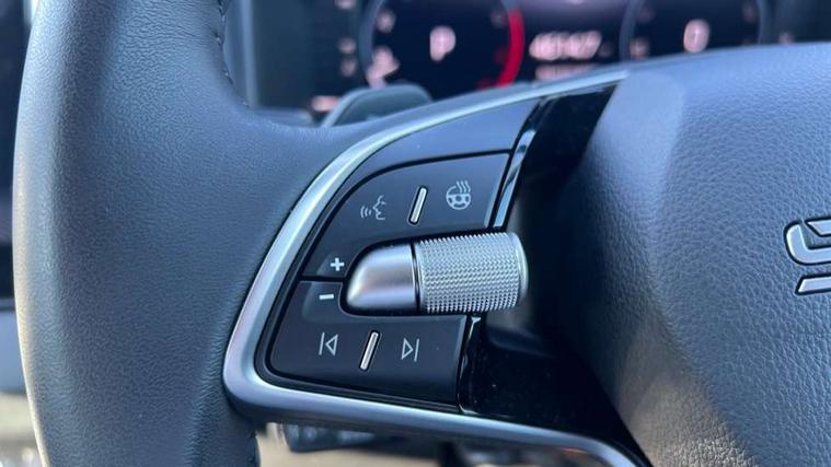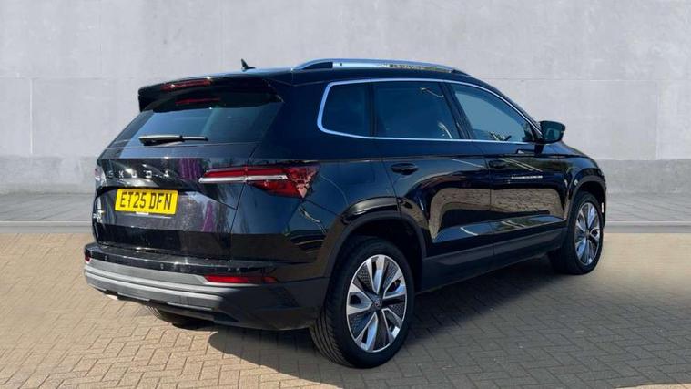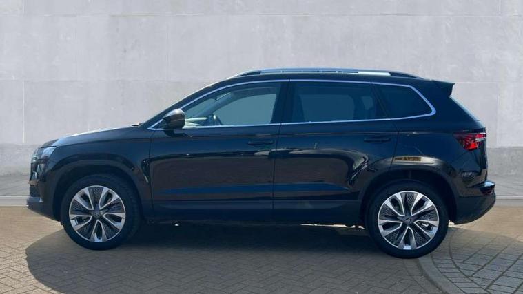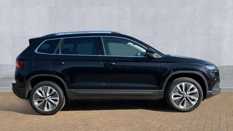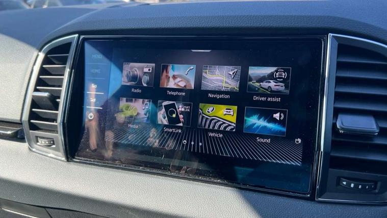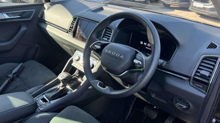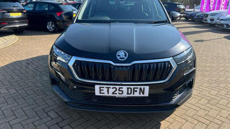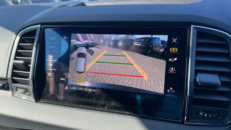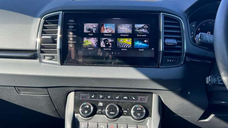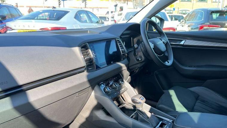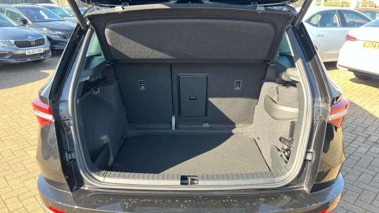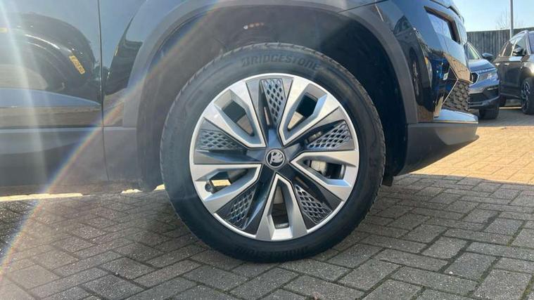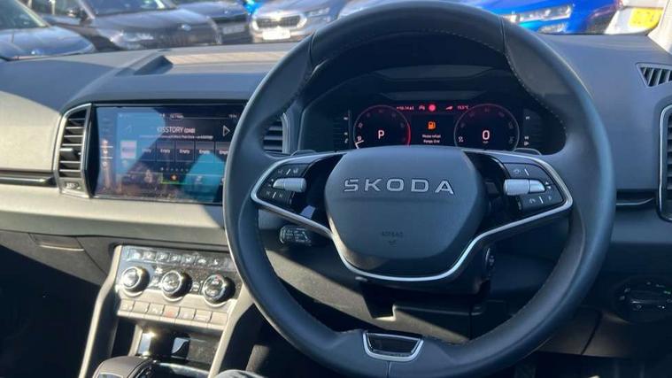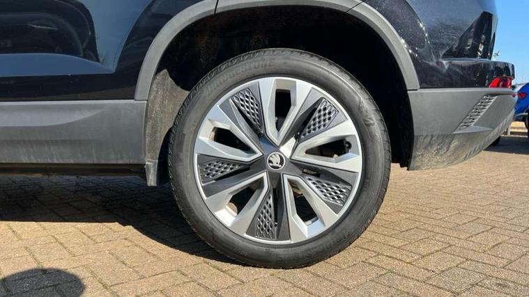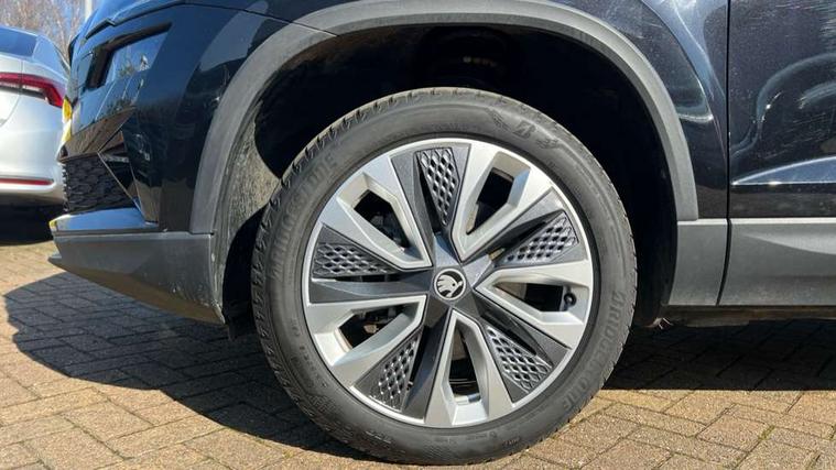 Advanced driver attention and drowsiness monitor, Drive Mode Selection including ECO function, Electro-mechanical PAS, Emergency services call system, Outside temperature gauge, Sensor for driver assistance systems, Service interval indicator, SmartLink wireless for Apple and wired for Android, Start/stop system with regenerative braking, Traffic sign recognition, USB C Port x 2 in front centre console, Virtual Cockpit - 10.25" digital display, Virtual pedal with electrically operated boot door, Wireless smartphone charging, DAB radio with Bluetooth, USB connection, Acoustic glass, Aero front windscreen wipers with intermittent function, Auto dimming rear view mirror with light and rain sensors, Black electric window control buttons, Body colour door mirrors and handles, Electric front and rear windows with child proof lock, Extended rear roof spoiler, Heated rear windscreen, LED daytime running lights, LED rear lights with high functionality welcome effect and dynamic indicators, Light assistant (coming/leaving home/tunnel light), Plastic scuff plates in door apertures, Privacy glass, Rear side wing doors, Rear window wiper with washer system and intermittent control, Safety reflectors on front doors, Third brake light, Unique dark chrome design logo on alloy wheels, 1.5 litre bottle holders in driver and front passenger door panels, 12V socket in boot, 12v socket in front centre armrest with storage compartment and rear air vents, 2 spoke leather heated multifunction steering wheel with DSG paddles, 2 x Tablet holder, 3 rear height adjustable headrests, 3 seat bench in 2nd row, 4 foldable roof handles with rear coat hooks, Black floor carpet, Cargo elements in boot, Chrome inner door handles, Decorative door sills with KAROQ badging, Foldable hooks in the boot, Front head restraints, Height adjustable front three point seats belts with tensioners, Height/reach adjust steering wheel, Ice scraper, Illuminated glovebox, Illuminated luggage compartment, Interior noise suppression, Isofix child seat preparation for front passenger seat, Isofix child seat preparation outer rear, Manual lumbar support for front seats, Pearl grey interior ceiling, Pen holder, Pollen filter, Rear boot cover, Rear package tray, Rear reading lights, Rubbish bin door, Safety vest holder, Single front passenger seat, Skoda lettering on steering wheel, Storage box in upper central dashboard closed, Sunvisors with illuminated vanity mirrors, Textile floor mats, Ticket holder, Columbus pack - Karoq, Design Pack - Karoq, Non Smokers pack, Parking pack - Karoq, Automatic door unlocking in case of crash, Automatic fuel cut off in case of crash, Driver airbag, Electronic parking brake with auto hold function, Emergency rear braking signal, ESC (incl. ABS+MSR+ASR+EDS+HBA+DSR+RBS+MKB), Front side airbags, Head airbags, Hill hold control, Knee airbags, Passenger airbag with switch-off function, Pedestrian monitor, Power operated child safety locks, Seatbelt reminder signalisation and pretensioner for all seats, Three point seatbelts rear, Two tone horn, Tyre pressure monitor, Alarm with interior monitoring, back up horn and tilt sensor with safe function, Electronic engine immobiliser, Keyless entry and start/stop, Remote central locking with 2 remote folding keys, Black centre console, Chrome framed air vents, Satin black dashboard, Anti-theft wheel bolts protection, Breakdown and tool kit,