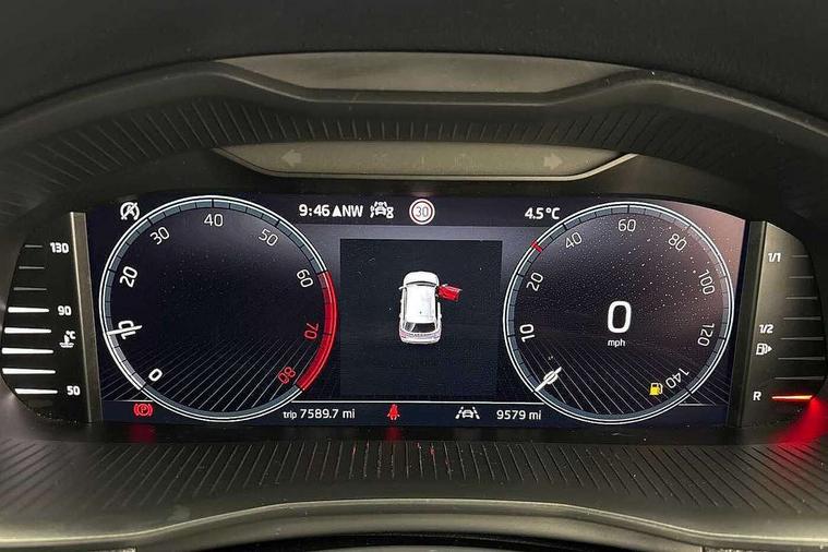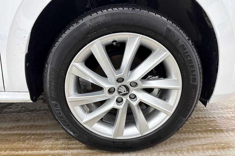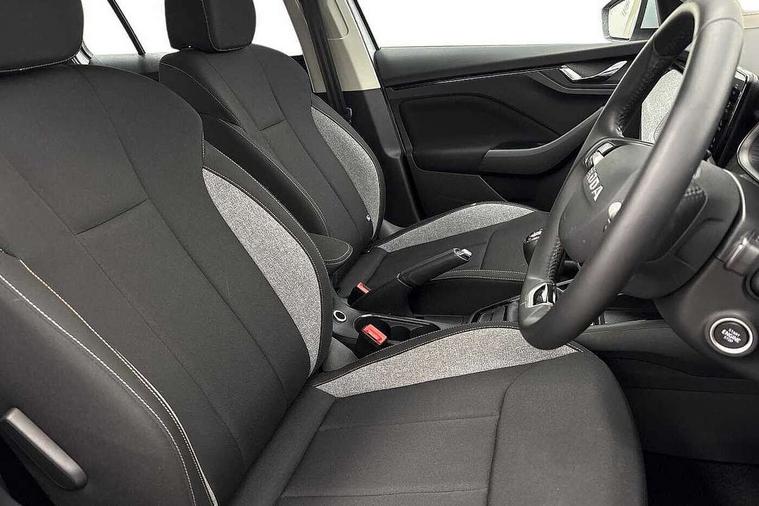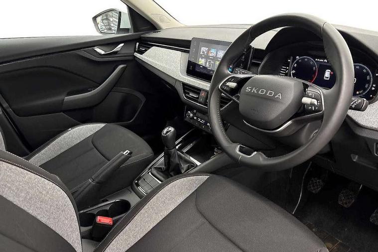 Advanced driver attention and drowsiness monitor, Bluetooth system, E-call, Front assist system, PAS, Rear parking sensors, Rear view camera, Service indicator, Speed limiter, Traffic sign recognition, Virtual cockpit with 10.25" display, Voice control system, Wireless smartlink, 4 USB C ports, 8 Speakers, 9.2" Skoda navigation display, DAB Digital radio, Auto dimming rear view mirror, Automatic headlight control with coming home and leaving home feature, Black roof rails, Body colour bumpers, Body colour door mirrors and handles, Chrome grille surround, Front and rear electric windows, Full LED headlights, Heated rear window, LED brake lights, LED daytime running lights, LED front turning lights, LED high beam, LED low beam, LED third brake light, Rear LED fog light, Rear side wing doors, Rear wiper, Ticket holder inside windscreen, 12V socket in luggage compartment, 3 seat bench in 2nd row, Black hotstamping, Cargo elements, Chrome inner door handles, Driver and passenger sun visors with vanity mirror, Dual zone climate control, Front and rear roof lights, Front centre armrest, Front head restraints, Glove compartment with illumination, Height adjustable driver seat, Height adjustable front passenger seat, Ice scraper, Inner circulation control with pollen filter, ISOFIX on front passenger seat, Isofix preparation for back seats, Krepp recycled decor inserts, Leather gearknob and handbrake lever, Loft cloth upholstery, Manual lumbar support for front seats, Net package and top tether hooks in boot space, Net under rear shelf, Overhead glasses storage compartment, Pocket on the back of both front seats include mobile phone pockets, Rake/reach adjustable steering wheel, Reading lights, Satin black door inserts, Single front passenger seat, Textile floor mats, Third rear headrest, Top tether for front passenger seat, Umbrella in driver's door, 3x3 point rear seatbelts, Airbags - driver and front passenger, Disc brakes, ESP, Extended and predictive pedestrian/cyclist protection, Front passenger airbag deactivation switch, Front side airbags with curtain airbags, Hill hold control, Manual leather parking brake, Manual rear child locks, One tone horn, Seatbelt reminder for driver an co-driver, Traction control, Tyre pressure monitor, Anti-theft alarm system with interior monitoring, backup horn, towing protection and remote central locking with SAFE system, Anti-theft wheel bolts, Electronic engine immobilizer,