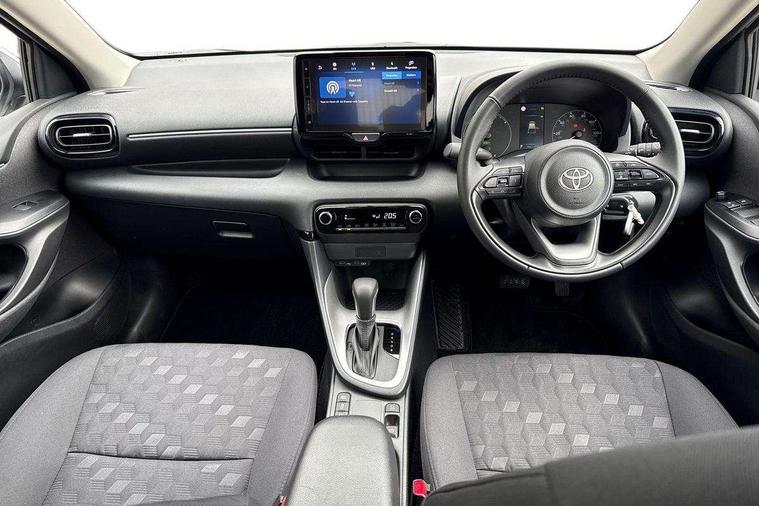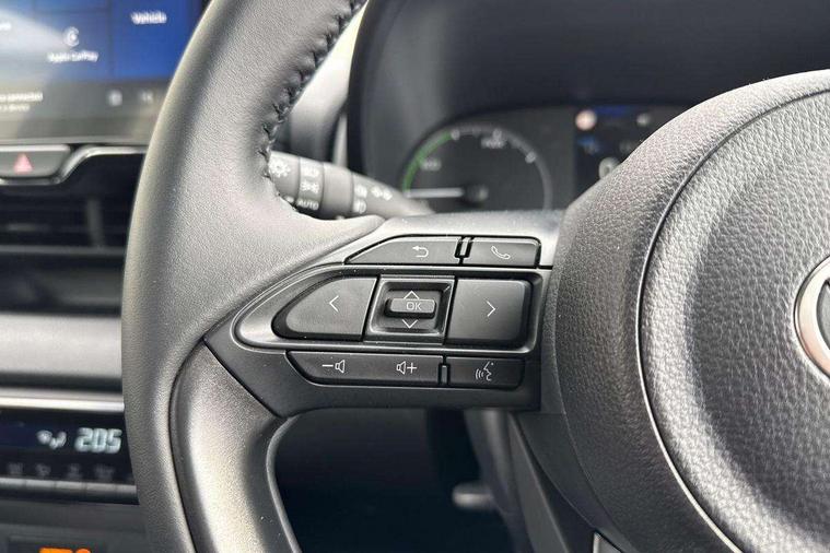 4.2" coloured TFT multi information display with analogue speedometer, Adaptive cruise control, Adjustable speed limit with speed warning, Bluetooth connectivity, E-call, Electric power steering, Hybrid energy display, Lane trace assist, Multi information display switches on steering wheel, Pre-collision system (PCS), Reversing camera, Smartphone integration with Apple CarPlay and Android auto, Tailgate, Voice recognition, Vehicle Stability Control (VSC), 4 speakers, 9" Multimedia touch display, Toyota Touch 3 system with DAB radio, USB connection, Acoustic windscreen glass, Auto high beam assist, Auto windscreen wipers, Automatic headlights, Body coloured door mirrors, Bulb indicators, Chequered front grille, Daytime running lights, Electric adjustable heated door mirrors, Follow me home headlights, Front auto power windows with anti jam protection, Front halogen fog lights, Halogen projector headlights, LED High mounted stop lamp, Manual headlight levelling, Rain sensor, Rear auto power windows with anti jam protection, Rear roof spoiler, Rear side wing doors, Rear wiper, Shark fin antenna, Turning signal integrated indicators in door mirrors, Variable front intermittent wipers, 3 adjustable rear headrests, 3 seat bench in 2nd row, 3 spoke leather steering wheel, 60/40 split folding rear seat, Active headrests, Adjustable boot height, Auto air conditioning, Coat hooks in rear grab handles, Cup holders (2 front & door), Data Communication Module (DCM) connected services, Fabric upholstery, Front armrest, Glovebox, Grey roof lining, Height adjustable driver's seat, Isofix seat fixing, Leather gearshift, Pollen filter, Shopping bag hooks, Single front passenger seat, Tilt/telescopic steering column, 3 point seatbelts on all rear seats, ABS+EBD+Brake assist, Electronic parking brake, Emergency brake light system (EBS), Front passenger airbag on/off switch, Front seatbelt reminder, Hill start assist control (HAC), Rear child proof door locks, Rear seat belt reminder, Supplemental Restraint System (SRS) 8 airbags: Driver & passenger's airbags, dual side curtain airbags, side impact airbags, front centre airbag, Toyota Safety Sense 3 with over the air updates, Tyre pressure warning system, 2x Master key, Alarm/immobiliser, Remote powered central double locking doors, Soft touch instrument panel, 16" 5 spoke silver finish alloy wheels, Space saver spare wheel,