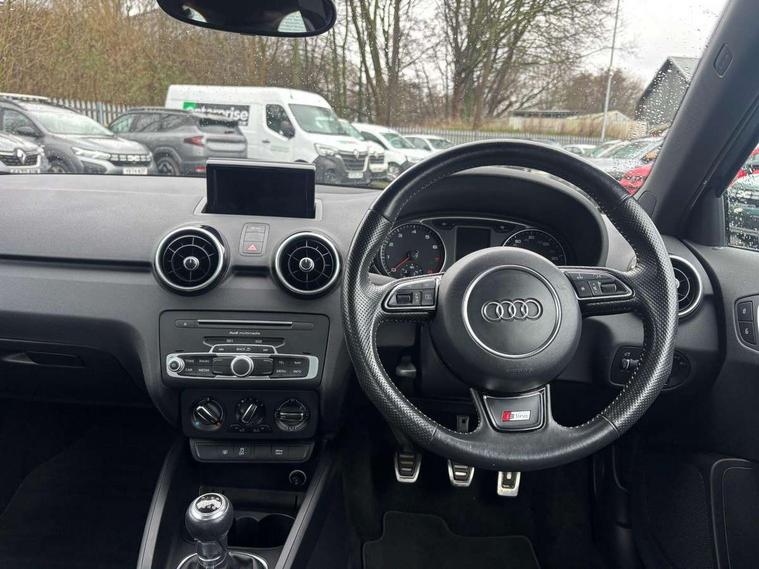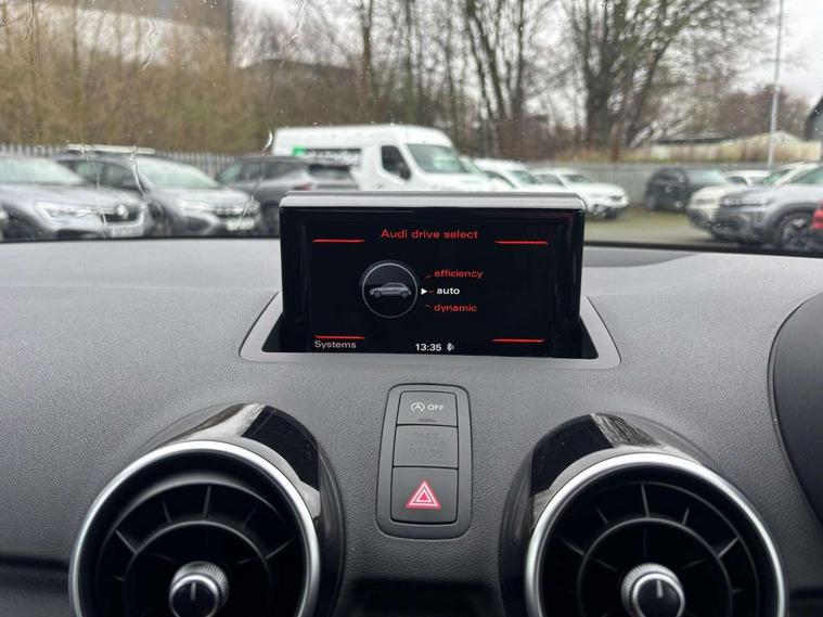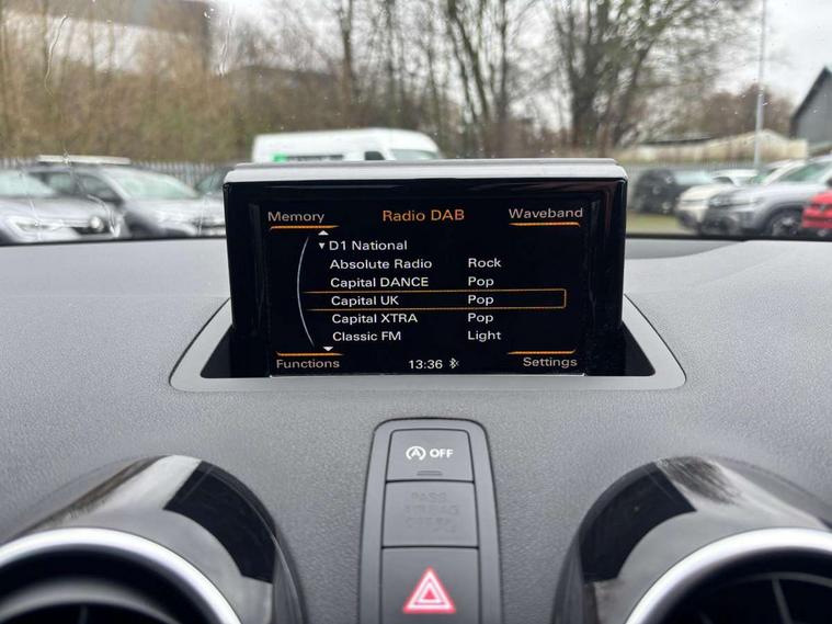 Audi drive select, Electro-mechanical PAS, Low washer fluid indicator, Service interval indicator, Voice control system, Additional SD card reader, Audi music interface, Bluetooth audio streaming, DAB Digital radio, Adaptive brake lights, Electric adjustable door mirrors, Electric front windows, Front fog lights, Heat insulating glass, Heated door mirrors, Heated rear windscreen, Rear diffuser, Rear wiper, S Line body styling, Xenon plus headlights including automatic headlights, LED daytime running lights, LED rear lights, dynamic range control and headlight washers, 12V Accessory socket in centre console, Adjustable rear head restraints, Black cloth headlining, Cupholders in centre console, Door sills trims with aluminium inlays, Front floor mats, Front head restraints, Front seats - 'Easy Entry', Front sports seats, Height adjustable front seats, Illuminated glovebox, Isofix attachments on outer rear seats, Jack and tool kit, Leather handbrake, Lumbar adjustment for front seats, Rake/reach adjustable steering wheel, Split folding rear seats, ABS/EBD, Brake assist function, Driver and passenger side airbags, Driver/Front Passenger airbags, EDL, ESP with ASR, First aid kit, Front and rear seatbelt reminder, Front passenger airbag deactivation, Head airbags, Height adjustable front seatbelts, Rear three point seatbelts x 2, Tyre pressure monitor, Warning triangle, Locking wheel bolts, Remote control central locking, Thatcham category 1 alarm + immobiliser, Tyre repair kit,