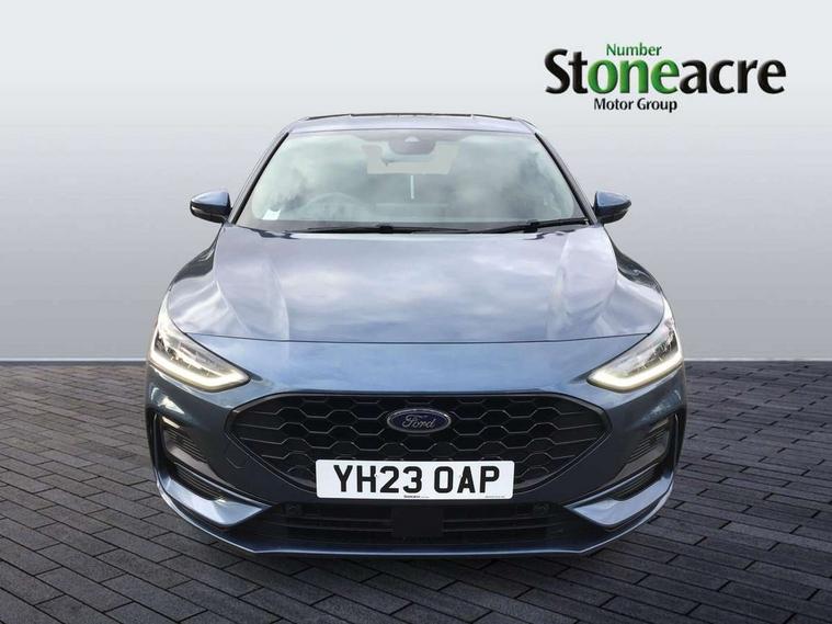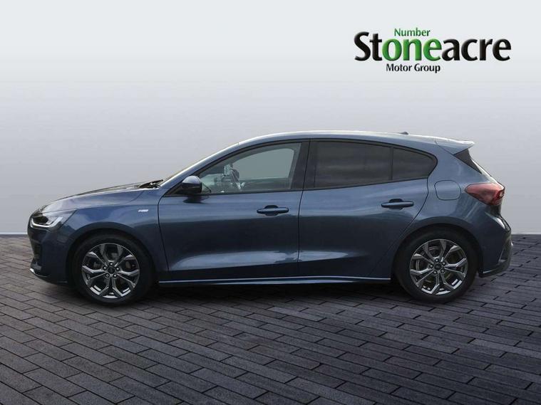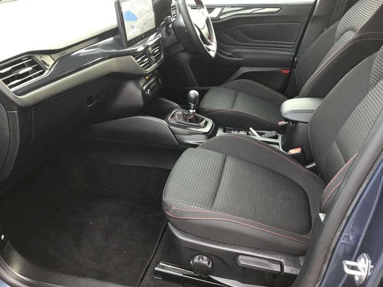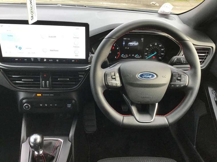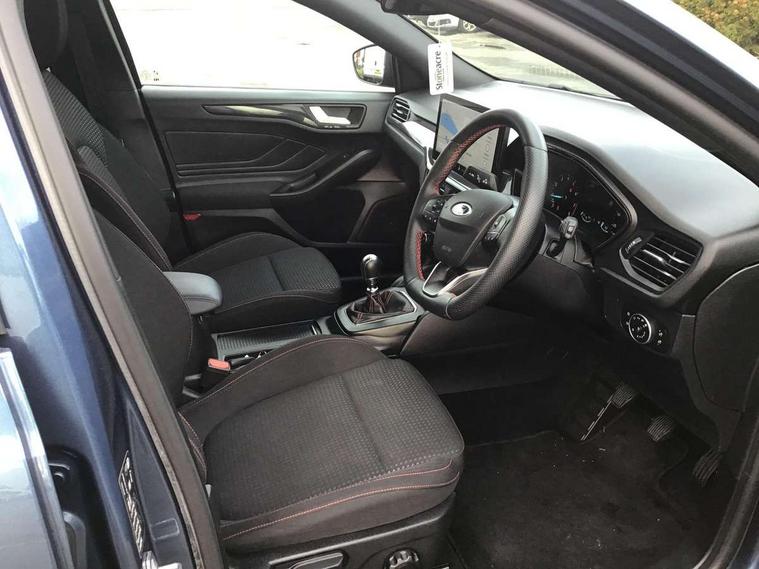 4.2" Colour TFT Ice blue illumination analogue cluster with trip computer, Bluetooth system, Digital clock, Easy fuel capless refuelling system, Eco mode, Ford SYNC 4 Navigation with 13.2'' touchscreen, DAB radio, Emergency Assistance, Apple Carplay & Android Auto, 6 speakers & FordPass Connect, Lane keeping system - lane keeping alert and lane keeping aid, PAS, Rev counter, Selectable drive mode, Service interval indicator, Sports tuned suspension, 2 USB ports, Auto headlamps (on/off), Body coloured door handles, Electrically operated front and rear windows with one touch opening and closing, Electrically operated heated power fold door mirrors with puddle lamp with side indicators, Front variable intermittent wipers with electric wash, Full fixed LED headlamps, Heated rear window, LED daytime running lamp, LED rear lamps, LED third brake light, Polished twin tailpipe, Privacy glass, Quickclear heated windscreen, Rain sensor, Rear side wing doors, Tailgate wash/wipe, Unique ST-Line grille, full bodystyling kit, and large body coloured rear spoiler, 3 rear headrests, 3 seat bench in 2nd row, Cloth upholstery, Dual zone electronic air temperature control, Height adjustable front headrests, Isofix child seat preparation, Reach + rake adjustable steering column, Single front passenger seat, 3x3 point rear seatbelts, ABS+Electronic Brake force Distribution, Auto hold function, Driver airbag, EDL traction control, Electronic parking brake, Electronic stability control, Front and rear seatbelt reminder, Front inertia reel height adjustable seatbelts with pre-tensioners, Front passenger airbag, Front side airbags, Passenger airbag deactivate switch, Post collision braking, Pre collision assist with autonomous emergency braking and pedestrian/cyclist detection, Remote/power child rear door locks, Side curtain airbags, Three rear inertia reel lap/diagonal seatbelts, Tyre pressure monitoring system, Keyless entry and keyless start, MyKey system, Remote central locking & engine immobiliser, Thatcham alarm with power door dead locks, 17" 5 spoke Rock mettalic finish alloy wheels with mini spare wheel,