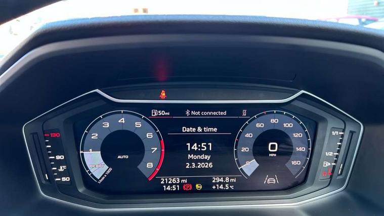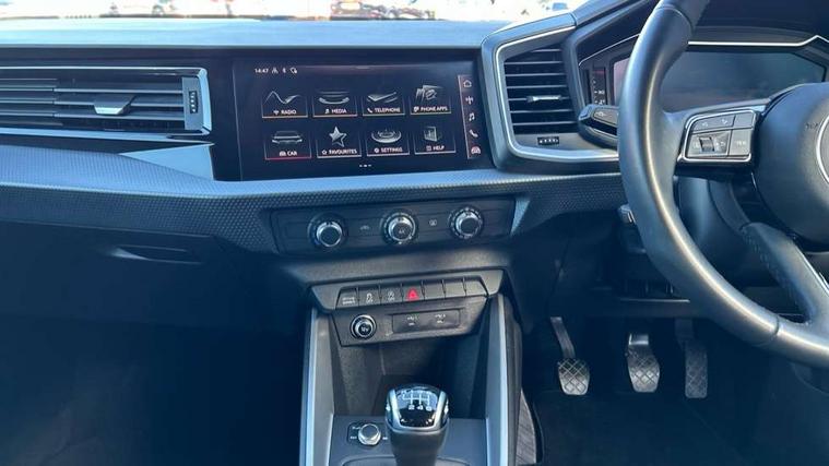 10.25" Digital instrument cluster display classis style instrument dials + speed, odometer, time, outside temperature, telephone menu + fuel level warning, Audi drive select - power steering assistance + engine, Audi smartphone interface with connect compatible smartphone via USB directly MMI display + Nav, music, third party apps controlled via MMI controller, Automatic start/stop system, Bluetooth interface, Cruise control, Driver's information system, Electromechanical power steering, Emergency e-call, Lane departure warning system, Rear parking sensor, Service interval indicator, Speed limiter, Voice control system, Washer fluid level indicator, Dynamic suspension, 2 x USB type C connection points, 6 passive loudspeakers, DAB Digital radio, MMI radio plus with 10.1" colour MMI display screen and MMI touch, Auto dimming rear view mirror, Body coloured bumpers, Body coloured door mirrors, Electric front and rear windows, Electrically adjustable, heated, folding door mirrors with integrated LED side indicator, Front side air inlets in grained matt black and C frame in anthracite black, Heat insulating glass windscreen and side windows, Heated rear windscreen, High level LED brake light, LED headlights with LED rear lights + dynamic rear indicators + headlight adjustment and high beam, turning light + LED daytime running lights, Radiator grille and rear diffuser in matt anthracite black, Radiator protective grille frame in matt aluminium silver, Rain and light sensors, Rear fog lights, Rear side wing doors, Rear wiper, Side front spoiler lips in grained matt black, 12V socket in centre console with two cup holders, 3 rear seats with headrests, 3 seat bench in 2nd row, 3 spoke leather multifunction plus steering wheel, 40:60 Split folding rear seat or folded fully, Black front and rear floor mats, Door sill trims with aluminium inlay, Driver and passenger seat with manual height adjust with forward and backwards adjustment, Front head restraints, Front passenger seat, Grey cloth headlining, Height and reach adjustable steering wheel, ISOFIX child seat mounting for front passenger and outer rear seats including top tether attachment point of outer rear seats, Leather gear knob with aluminium trim, Leather handbrake grip, Luggage compartment light with front and rear reading lights, Manual air conditioning, Manually adjustable lumbar support in front seats, Novum cloth upholstery with front sport seats, Luggage compartment pack - A1, 3x3 point rear seatbelts, Audi pre-sense front with pedestrain and cyclist recognition, Brake assist function, Driver and front passenger airbag with front side and head airbags, Electronic Stability Control including ABS, EBD, ASR and EDL, Front passenger airbag deactivation switch, Hill hold assist, Manual rear child locks, Seatbelt height adjustment for front seats, Seatbelt monitoring, Tyre pressure warning light, Warning triangle and first aid kit, Anti theft alarm, Anti theft wheel bolts and loose wheel warning, Immobiliser, Remote central locking with 2 foldaway keys, Aluminium trim for control switches, air vents and digital instrument cluster, Black dashboard, Silver grey accent areas including air vents, door handle recesses and centre console in diamond paint finish, Slate grey inlays polygon structure in fine paint finish,