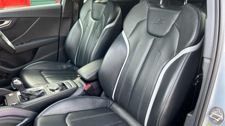 Adaptive cruise control with active lane assist/emergency assist, Audi connect navigation and infotainment includes innovative services, Audi connect remote and control connects your vehicle to your smartphone, Audi drive select - Power steering assistance + engine + gearshift, Audi drive select with efficiency, Audi phone box with wireless charging, Audi side assist including rear cross-traffic assist and audi pre sense basic, Audi smartphone interface, Audi virtual cockpit, Automatic start/stop system with recuperation, Bluetooth interface includes bluetooth audio streaming, Camera based traffic sign recognition, E-call, Instrument dials with S logo, MMI navigation plus with MMI touch, Park assist system including front parking sensors, Power operated tailgate, Progressive steering, Rear parking sensors, Rear view camera, Traffic jam assist with emergency assist, Adaptive suspension with damping control, Quattro all wheel drive, 2 x SDXC card reader, DAB Digital radio, DVD Drive, Auto dimming rear view mirror, Black Audi rings and black badging, Black exhaust tailpipes, Black window trims, Brake lights, tail lights, reversing lights, and rear number plate lights in LED technology, Contrast bumper in grey, Electrically adjustable, folding, auto dimming and heated door mirrors with integrated LED side indicators, Enhanced rear spoiler, Front windscreen with grey tinted sunband, LED daytime running lights, LED third brake light, Matrix headlights with LED rear lights, dynamic rear indicators, cornering lights, Panoramic glass sunroof, Privacy glass - dark tinted rear and rear side windows from B-pillar backwards, Quattro decals on rear side flank, Rear side wing doors, Rear wiper, S design radiator grille with horizontal struts and SQ2 logo, S specific dual branch chrome tailpipes with twin tailpipes on both the left and right, Variable front intermittent wipers, Wheel arch trims in manhattan grey, 12V socket in front, 3 seat bench in 2nd row, 3 spoke leather trimmed multi function steering wheel with paddleshift features S badging, 4-way electric lumbar support for front seats including seat height adjustment for both front seat, 40/20/40 split folding rear seat bench with centre armrest and cupholder, Black cloth headlining, Dual zone electronic climate control, Front and rear head restraints, Front centre armrest, Front/rear floor mats, Height/reach adjust steering wheel, ISOFIX child seat mounting in front passenger and rear outer seats, Single front passenger seat, Stainless steel pedals, Black styling pack - SQ2, Comfort and sound pack - SQ2, Extended interior upholstery pack - SQ2, LED interior lighting pack advanced - Q2, 3x3 point rear seatbelts, 6 airbags - Front, curtain and front side airbags, Brake calipers painted black with S logo at the front, Electromechanical parking brake, Electronic stabilisation control including ABS, ASR and EDL, Front passenger airbag deactivation, Hill hold assist, Pre-sense front with pedestrian recognition, S model enhanced braking system, Seatbelt monitoring, Tyre pressure warning light, Warning triangle and first aid kit, Advanced key, Anti theft alarm, Anti theft wheel bolts, Electronically operated child locks, Remote central door locking, Aluminium interior element, Format design illuminated inlays, 19" 5 double spoke design alloy wheels in gloss white with diamond cut finish, Tool kit,