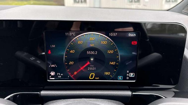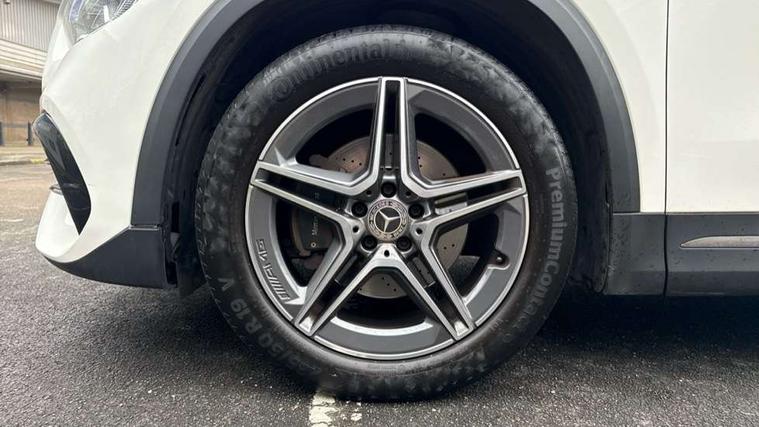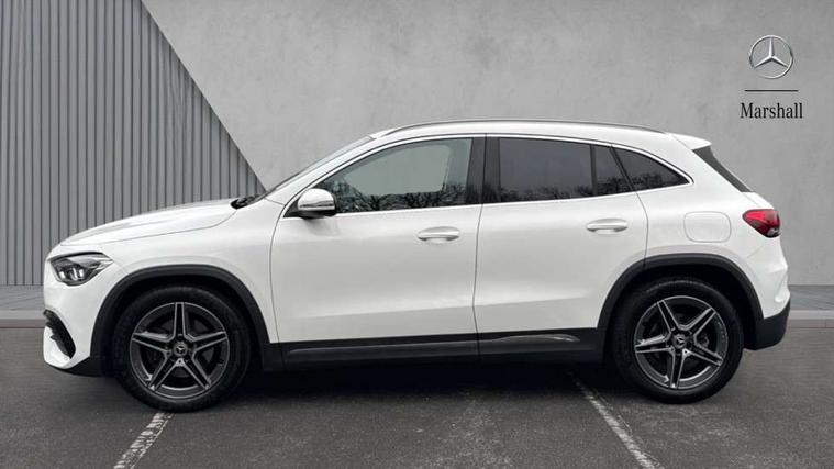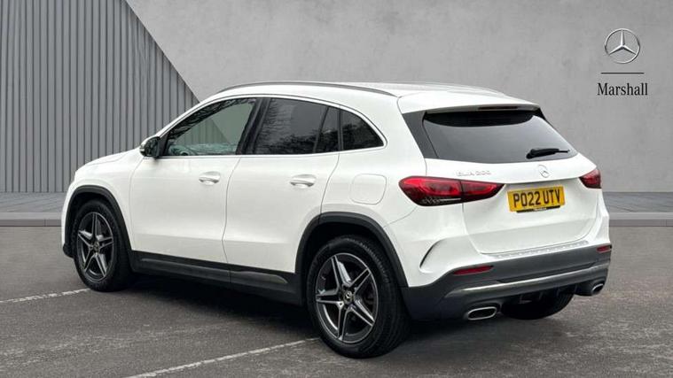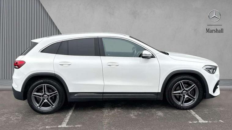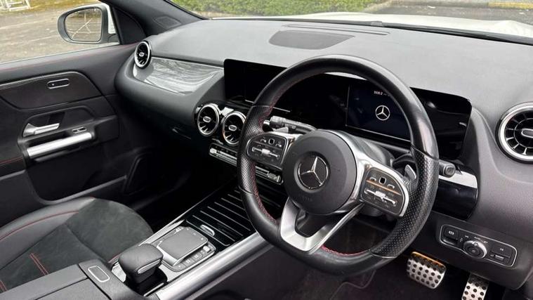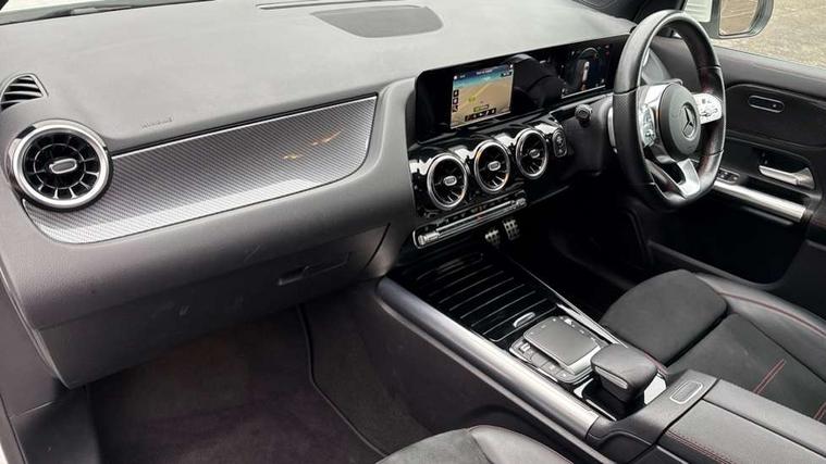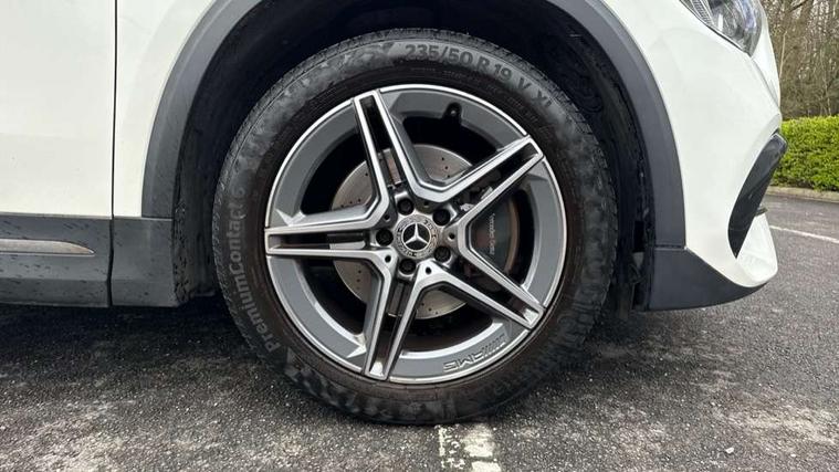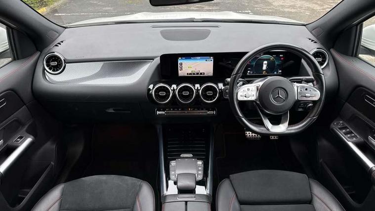 180 degree reversing camera with parking guidelines, 7 inch digital instrument cluster display, 7" touchscreen media display, Active lane keeping assist, Attention assist, Cruise control + speed limiter, Direct steering, DYNAMIC SELECT with a choice of driving modes (ECO, Comfort, Sport and Individual), ECO start/stop function, Fluid level warning indicator for fuel, oil, coolant and washer fluid, Hard-disk navigation, Hey Mercedes Voice activation, Lamp failure indicator, Mercedes me connect including emergency call system, accident recovery, breakdown and maintenance management, Mercedes me remote services, Multi function trip computer, Outside temperature gauge, Owners manual and service booklet in English, Pre-installation of private car share, Radio aerial integrated into front and rear windshields, Service indicator (ASSYST), Speed limit assist, Status display for rear seat belts in instrument cluster, Lowered comfort suspension, Rear axle multi-link, 2 USB ports (type C) in rear stowage compartment and one in front of center console, Bluetooth connectivity including audio streaming, DAB Digital radio, MBUX multimedia system, Media interface, Mercedes-Benz sound system - 100W, Adaptive brake lights, Aerial for GPS, Aluminium roof rails, AMG front and rear apron, AMG specific/dual flow exhaust pipes in chrome (non-functional), Automatic headlamp activation, Beltline strips and weather strip in chrome, Black grained claddings with chrome parts, Body colour bumpers, Body colour door handles, Body colour door mirrors, Car wash function, Dark privacy glass from B-pillar backwards, Electric front windows, Electric rear windows, Electrically adjustable and heated door mirrors with integrated LED indicators, Front door sills with Mercedes-Benz lettering, Heated glass rear windscreen + timer control, Heated windscreen wash system, Interior mirror with black reading lamps and frameless, LED high performance headlamps with integrated LED daytime running lights, LED tail lights in two piece design, LED third brake light, Matt titanium grey front and rear apron trim, Rain sensor windscreen wipers, Rear fog lights, Rear side wing doors, Rear wiper, Roof spoiler, Single lamella raditor grille with chrome dotted diamond grille and inlay, 12V power socket in centre console, 3 seat bench in 2nd row, 3 spoke multifunction sports steering wheel in nappa leather with flattened bottom and perforated grip area, 40:20:40 split folding rear seat backrests, Adjustable head restraints, Air conditioning - Two zone thermotronic luxury automatic climate control with display, Ambient lighting in front headrests, AMG floor mats with AMG lettering in front, Artico man-made leather/Microfibre Dinamica upholstery with red contrast stitching, Auto Mercedes-Benz child seat recognition sensor, Black roof lining, Brushed door pulls in silver chrome, Courtesy light in boot, Front centre armrest with stowage, Galvanished gear shift paddles on steering wheel, Heated front seats, Illuminated glovebox, Leather trimmed gearknob, Luggage net on driver/front passenger seat backrest, Manually height and reach adjustable steering column, Multi-gesture touchpad control on center console, Single front passenger seat, Sports pedals in brushed stainless steel with black rubber studs, Sports seats, Stowage compartment in centre console, Stowage compartment with retractable cover, Sunvisors with illuminated vanity mirrors, Twin front cup holders, Two outer rear seat isofix and top tether child seat fixing points, AMG body styling pack - GLA, Comfort seat pack - GLA Class, Interior lighting with light and sight pack - GLA, Load compartment pack - GLA, 3 rear 3 point seatbelts, ABS with Brake Assist, Active bonnet pedestrain safety measure which detects an impact and raises bonnet by 65mm, Active brake assist includes forward collision warning system with autonomous braking, Adaptive brake assist with hold function and hill start assist, Bonnet with power domes, Brake pad wear warning indicator, Childproof locks manually operated for rear doors and electrically operated for rear power windows, Crash responsive emergency lighting, Driver and passenger head and side airbags, Drivers knee airbag, Dual stage driver/passenger airbags, Electronic parking brake, ESP curve dynamic assist, ESP with ASR, Front and rear seatbelt reminder, Front brake callipers with Mercedes Benz logo lettering on front, Front brake discs internally ventilated and perforated, Front passenger seat occupancy sensor, Tyre pressure monitoring system, Warning triangle and first aid kit, Window airbags, Alarm system with immobiliser and interior protection -Thatcham category 1, Keyless Go starting function, Remote central locking and crash sensor with emergency opening function, Urban guard vehicle protection, Vehicle key with decorative surround in chrome, Carbon structure trim, Chrome air vent surrounds, 19" AMG 5 twin spoke light alloy wheels aerodynamically optimised painted in tantalite grey with a high sheen finish, Summer tyres, Tirefit tyre sealant kit,