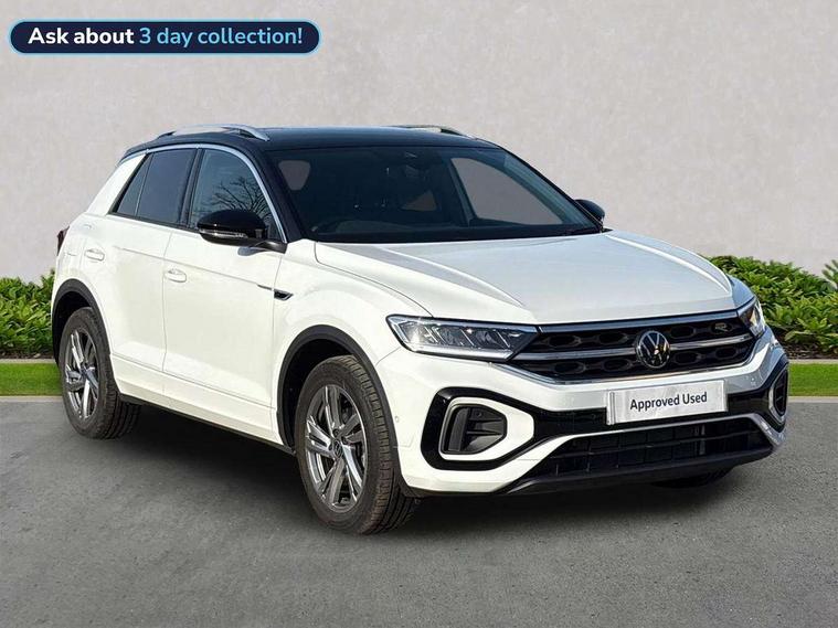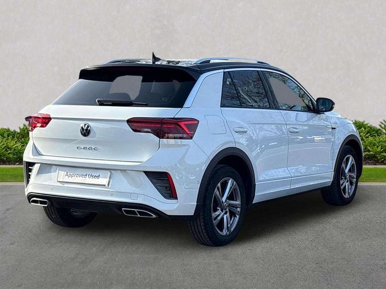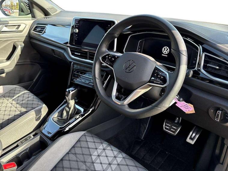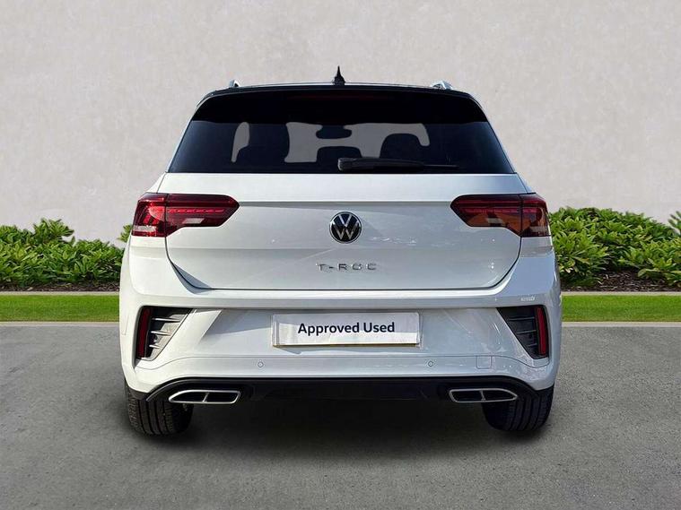 10.25" Digital cockpit pro, Bluetooth mobile phone interface, Driver alert system with fatigue detection, Driver tips and journey analysis, Emergency call service, Lane keeping system Lane Assist, Modified key software - reduce switch off time for key status change to Long no motion, Online services, Park assist including front and rear parking sensors, Service interval indicator, Tailgate/trunk lid release from outside, Think blue trainer driver tips and journey analysis, Warning sound and light for front seatbelts unfastened, Wireless app connect, Battery regeneration during braking, Start/stop function with battery regeneration, Diversity antenna for FM reception, Front and rear 6 speakers, Music playback - MP3, WMA and AAC files, Premium USB cable in choice of either Apple or Android smartphone compatibility, SD card slot, Simultaneous pairing of 2 compatible mobile devices, Title and cover art display, We Connect and We Connect Plus functionality, 3rd brake light, Auto dimming interior rear view mirror, Automatic hazard lights activation under emergency braking, Automatic headlight control with LED separate daytime running lights with coming/leaving home function, Extended roof spoiler, Exterior mirrors aspherical on driver side, convex on front passenger side, External USB type C socket and charging sockets, Front windscreen wiper with intermittent wipe and 4 position delay, Heated rear window, LED Plus headlamps, LED rear combination lamps, LED rear number plate lights, LED tail lamp rear comination lamps, Power windows with comfort operation and circuit breaker, R-Line design body coloured bumpers, Rain sensor, Rear exhaust tailpipe, Rear fog light on one side and reversing lights on both sides, Rear side wing doors, Rear wash/wipe with intermittent wipe setting, Remote electrically foldable door mirrors, puddle lights and reverse activated passenger's door mirror, 12V power socket in centre console, 3 rear head restraints, 3 seat bench in 2nd row, 4 load lashing points in luggage compartment, Air care climatronic air conditoning system with active combination filter and 2-zone temperature control, Black roof lining, Chrome plated radiator grille inserts, air vent surrounds and light switch surrounds, Door and side trim panel with leatherette insert, Drawer under drivers seat, Front + rear carpet mats, Front centre armrest, Front cupholders x 2, Front footwell illumination, Front reading light, Front scuff plates with R logo, Instrument lighting, white adjustable panel illumination, Interior ambient lighting and surround lighting, Interior light delay, Isofix child seat preparation, Leather gearshift handle, Load-through provision with cup holder when folded down ('Unsplit rear seat bench, split folding backrest, with centre armrest), Luggage compartment lighting, Single front passenger seat, Stainless steel pedals, Storage compartment in left and right luggage area, Storage compartment in rear doors, Storage compartments in driver and front passenger doors, Sunvisors with illuminated vanity mirrors, Variable boot floor, height adjustable and removable, Driver assistance pack without proactive passenger protection - T-Roc, 3 point height adj front seatbelts + pretensioners, 3 point seatbelts in outer rear with ECE label, ABS, Child locks on rear doors, Driver and front passenger airbag with front passenger airbag deactivation, Driver and front passenger safety-optimised head restraints, Drivers seatbelt reminder, Electronic parking brake, Electronic Stability Control (ESC) inc EDL (Electronic Differential Lock) and ASR (Traction Control), Front and rear passengers curtain airbag system including front side airbags, Front assist with city emergency braking and pedestrian monitoring, Front seat side impact airbags, Hill start assist, Predictive pedestrian protection, Rear disc brakes, Single tone horn, Tyre pressure loss indicator, Volkswagen roadside assistance, Alarm with interior protection, Anti-theft alarm system with interior monitoring, backup horn, and towing protection, Remote central locking with SAFELOCK, radio remote control with 2 remote control folding keys, Trims for alloy wheels,