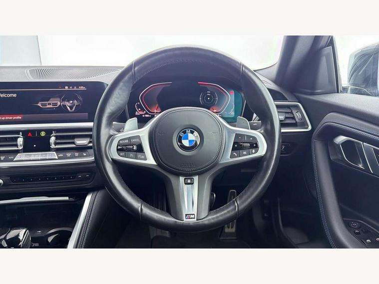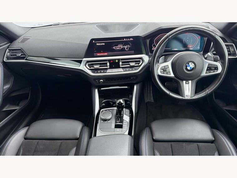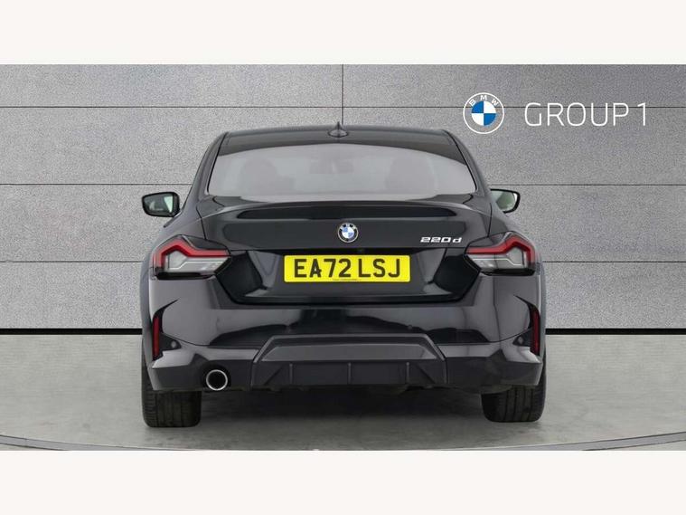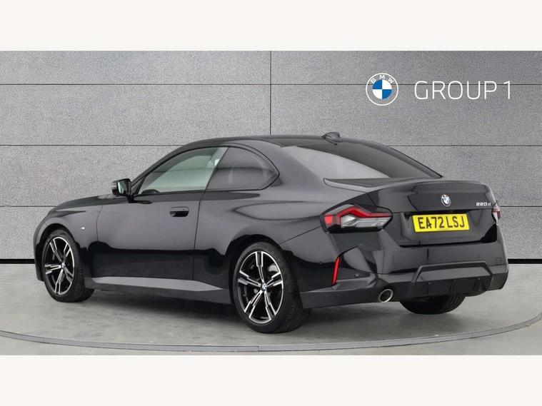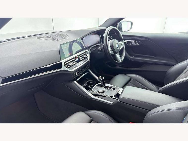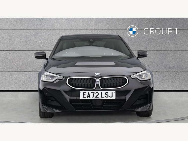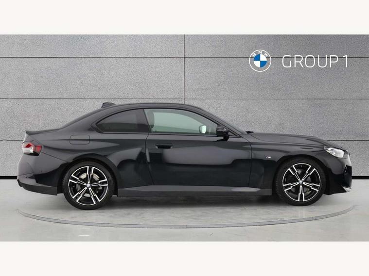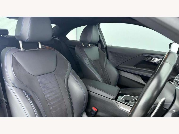 Attentiveness assist, Auto start-stop, Bluetooth, BMW ConnectedDrive online services, BMW Teleservices, Check Control warning system for monitoring of lights and door/luggage compartment open warning, Direct selection buttons, Drive off assistant, Eco pro mode, Electric power steering, Front and rear parking sensors, Front/rear Parking distance control, iDrive controller with turn and press function, Integrated owners handbook, Intelligent functions, Live cockpit plus with nav function 12.3" instrument cluster and 14.9" centre display, Oil sensor for level and grade, Optimum shift indicator, Personal Profile, Touch operation on control display, Variable sport steering, Widescreen multi-media display, 48V Mild hybrid technology, Aluminium lightweight construction, Balancer shaft, BMW TwinPower Turbo four-cylinder diesel engine, Common rail direct injection and one turbocharger, Diesel particulate filter, Drive performance control with ECO PRO comfort + sport mode, Electronic differential lock, M sport suspension, Oxidation catalytic converter, Selective catalytic reduction (SCR) with AdBlue, Sport automatic steptronic transmission with gearshift paddles, manual gearshift time display, launch control, coasting idle ECO PRO/COMFORT modes, DAB tuner, Acoustic windscreen wipers for reduced driving noise, Adaptive LED Headlights, Automatic windscreen wipers and automatic headlight, Automatically dimming rear view mirror, Body colour door handles flush with door surface, Body colour door mirrors, Body colour front and rear bumpers, Daytime running lights, Electric windows - front and rear, with open/close fingertip control and trap release, Exhaust tailpipe - 90mm in left, Fading support, Front and rear bumper system with replaceable deformation elements, Front door sill finishers in black plastic with BMW designation, Front windscreen wipers with integrated washer jets, Green tinted heat protection glazing, High beam assistant, High gloss shadowline exterior trim in mirror triangle cover, mirror cover panel, mirror bezel and window border, High level third brake light, Indicators integrated int mirror housing, LED registration plate light, LED technology rear tail lights, brake lights and turn indicators, Lightweight engineering, Model designation on right side of tailgate, One piece kidney grille with hight gloss chrome surround, Rear boot, Rear fog lights, Reversing light in rear light cluster, Shark fin antenna, Single part LED rear lights with smoked glass components, Trailer stabilisation logic, Visible VIN plate, 12V power socket in front centre console with blanking plug, 2 cupholders in front centre console, 3 zone automatic air conditioning, Ambient lighting, Compartment in front of cupholder, Conditioned based service, Driver seat backrest width adjustment, Front and rear side armrests integrated into door trim, Front armrest, Front door pockets, Front head restraints, Front sport seats, Heated front seats, Illuminated glove compartment with separate small compartment, M headliner Anthracite, M sport leather steering wheel, Manually adjustment steering wheel column, Rear seat backrest with manual 40:20:40 split folding, Rear seat centre foldable armrest with integrated cup holder, Single front passenger seat, Storage compartment between rear seats, Storage tray and compartment with cover in centre console, Sun visors with vanity mirrors and insert tab, Through loading system with 40/20/40 split folding 2 rear seat in 2nd row, Two folding rear seat headrests, Velour floor mats, Additional storage compartment pack without USB - 2 Series Coupe, Connected pack professional - 2 Series Coupe, Interior and exterior mirror pack - 2 Series Coupe, M Sport exterior styling aerodynamics pack - 2 Series Coupe, 2 tone horn, Anti lock braking system (ABS) with cornering brake control, Automatic Stability Control (ASC), BMW emergency call, Brake drying, Child seat ISOFIX attachment for the two outer rear seats, Crash sensor activating of airbags, Unlocking doors, hazard warning lights, interior light, safety battery terminal, Deactivation of fuel pump in the event of a crash, Driver and front passenger airbags, Driver and front passenger side airbags, integrated in the door side seat backrest bolsters for all seat variants, Dynamic brake control, Dynamic stability control + (DSC+), Dynamic Traction Control - DTC, Electrically operated hand brake including automatic hold function and automatic release when driving off, Front and rear disc brakes, Front passenger airbag deactivation, Head airbags for all 4 outer seats, Manual deactivation of front passenger airbag, Seat belt security check for driver and front passenger, Seatbelt warning, Side impact protection, Three point seat belts on 4 seats including front belt stopper, pyrotechnic belt tensioners and belt force limiters, Tyre pressure sensor, Warning triangle and first aid kit, Alarm system (Thatcham 1) with remote control and electronic engine immobiliser, Central locking switch for all doors, fuel filler cap and luggage compartment, Deadlocking function system to all doors, Drive away locking system on all doors and luggage compartment, Locking wheel bolts, Start/Stop button (illuminated) in centre console with keyless engine start and Auto Start-Stop deactivation button, Two remote control key with integrated key - one button for open and close doors/fuel flap/tailgate and separate button for unlock luggage compartment, BMW mobility tyre sealing system, Electrically powered 12V compressor, Reduced rolling resistance tyres,