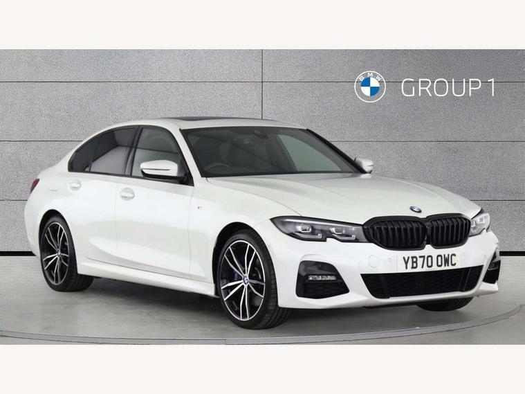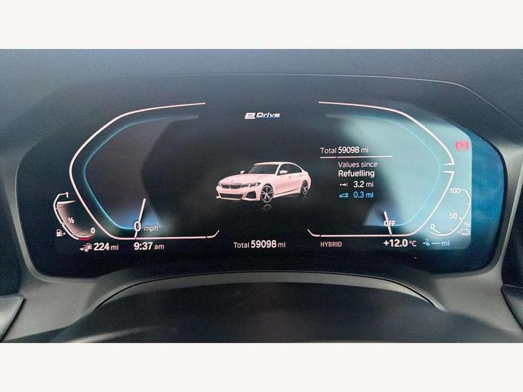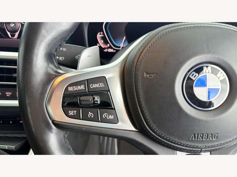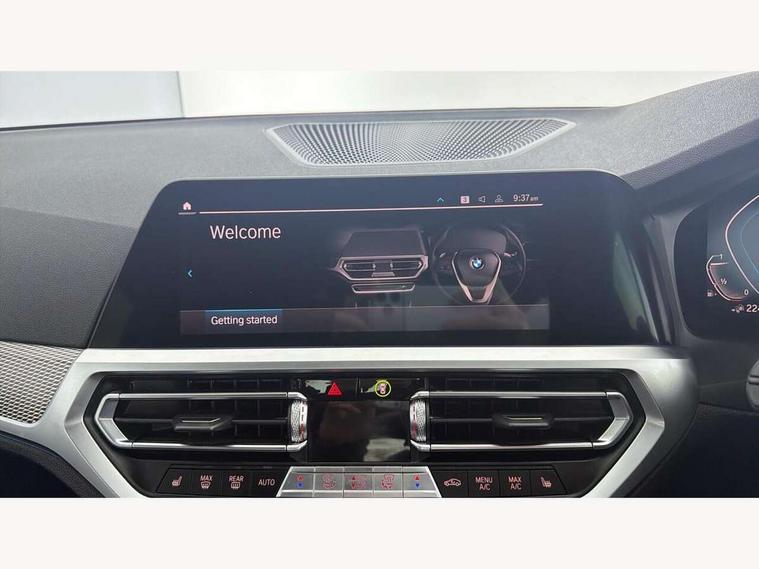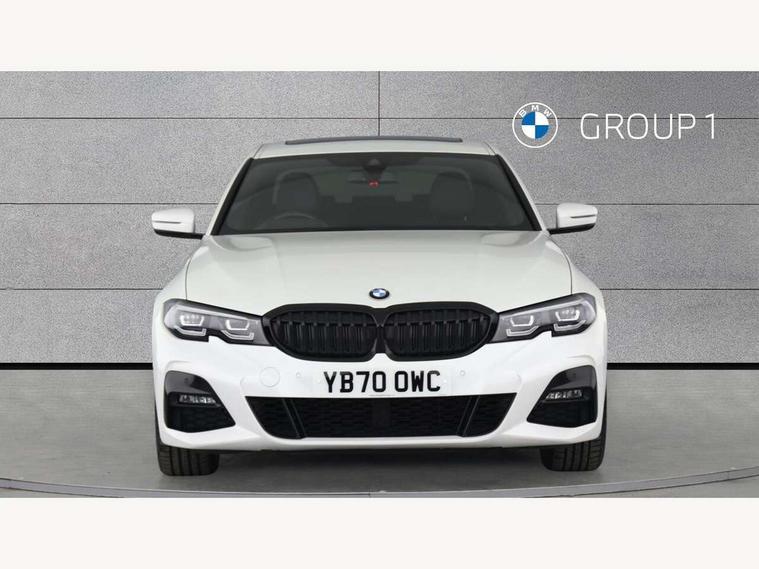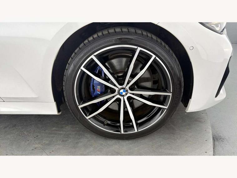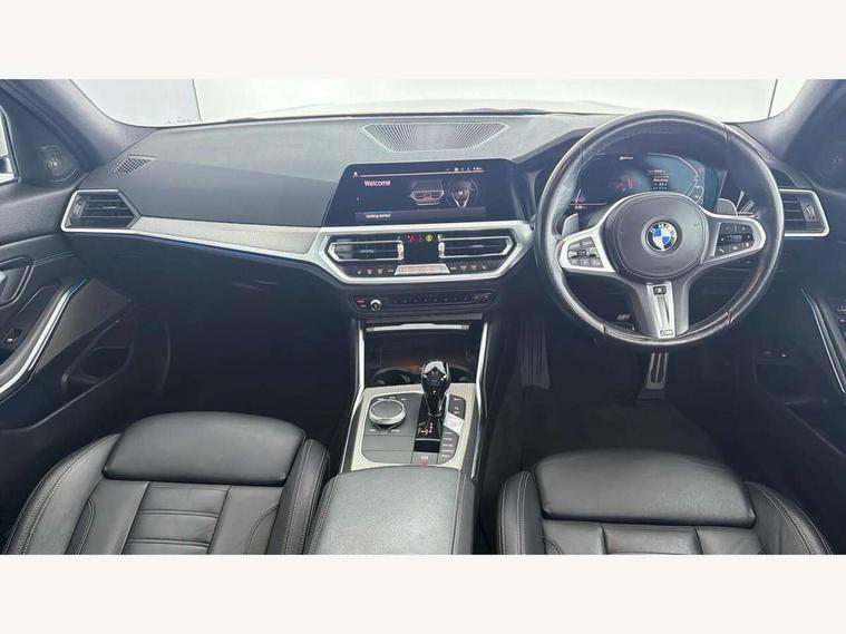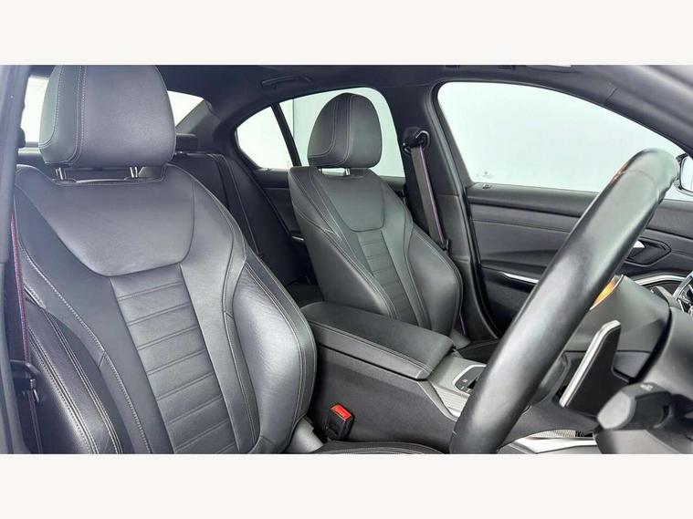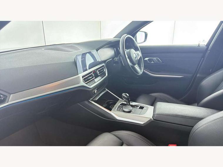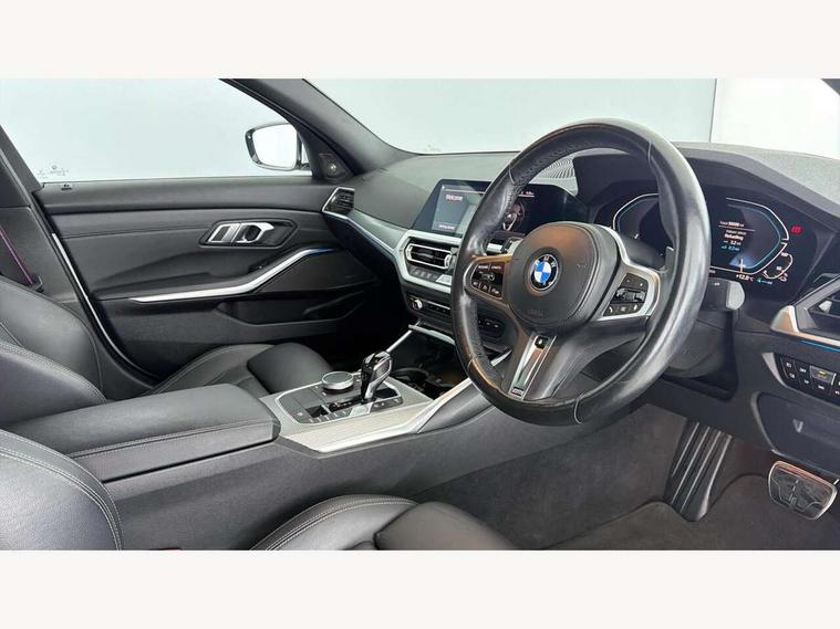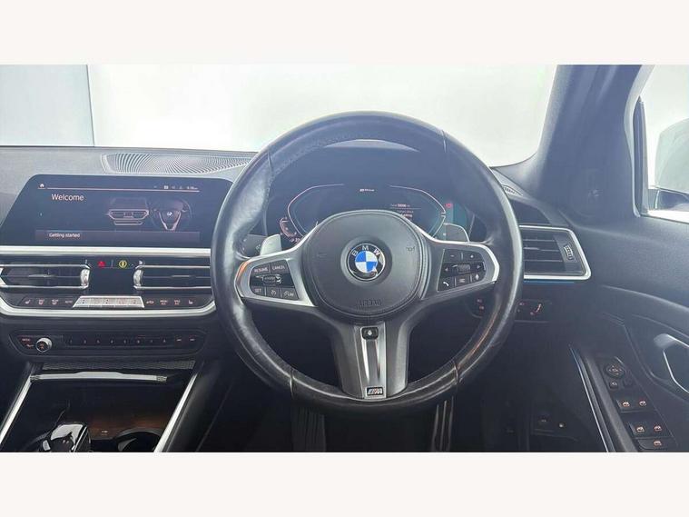 Active guard plus, Attentiveness assist, Auto start-stop, BMW iDrive controller on centre console, BMW Live Cockpit Professional Nav with 12.3" instrument display + 10.25" display, Intelligent Voice Assist, BMW OS 7, HDD, 2USB, 4G LTE connect, BMW service history, BMW Teleservices, Brake pad wear indicator in front and rear, Check Control warning system for monitoring of lights and door/luggage compartment open warning, Condition based service, Electric power steering, Electric power steering with Servotronic steering optimised at all speed ranges, Instrument cluster with speedometer with mph readout, tachometer, fuel gauge and oil temperature gauge, Integrated owners handbook, Oil sensor for level and grade, warning by check control system, On board computer - average speed+fuel consumption, service interval, clock/date, odometer/trip meter, outside temperature display and ice warning, Optimum shift indicator, Personal Profile - automatic lock when driving away selectable, Balanced 50/50 weight distribution, Battery cut-out switch, Drive performance control - ECO PRO, comfort and sport modes, Electronic differential lock control (EDLC), Petrol Particulate Filter, Sport automatic transmission with steering-wheel mounted gearshift paddles and launch control, Stroke dependent dampers, DAB tuner, Electronic service booklet, Acoustic glazing, Active airstream chrome frame kidney grille with 8 high gloss black vertical slats, Automatic headlight beam throw control with load dependent regulating reaction, dynamic compensation of braking dive and acceleration squat, Black roof mouldings, Body colour door handles, Body colour front and rear bumpers, Body colour fuel filler flap, Body colour mirror caps with bottom segment in matt black, Dynamic brake lights, Electric windows - front and rear, with open/close fingertip control, anti-trap facility and comfort closing, Exhaust tailpipe - split left and right, Exterior mirrors - electrically folding with anti-dazzle, Fading support, Front and rear bumper system with replaceable deformation elements, Front black door sill finishers with BMW designation, Green tinted heat protection glazing, High gloss shadow line exterior trim, Interior rear view electrochromatic mirror with automatic anti dazzle function, LED daytime running lights, LED front fog lights, Lightweight engineering, M designation on front side panels, left and right, Matt black exterior B pillar, Model designation on right side of tailgate, Rain sensor with automatic headlight activation, Shark fin antenna, Two part LED tailights in L-shape with components in smoked glass, brake light, LED turn indicator and rear fog light, Visible VIN plate, Welcome lights in interior and door handle area, Windscreen wipers with integrated washing jets, 12V power socket in front storage compartment, 2 front cupholder in centre console with clamping elements and matt black inlay, 3 rear seats with non folding headrests with 3 point seat belts, 3 zone automatic air conditioning, 4 pieces lashing eyelets in luggage compartment, 40:20:40 split folding rear seat with loading system, Ambient lighting with welcome carpet light, Anthracite headlining, Armrest integrated in front and rear door trim + front centre console armrest, Centred top Luggage compartment lights, Four grab handles integrated in roof lining, Front and rear door exit lighting (left / right), Front and rear door pockets, Front and rear reading lights, Front and rear velour floor mats, Front head restraints, Front sport seats, Heated driver and front passenger seats, Height adjustable mechanically and infinitely variable steering column, Illuminated armrest storage compartment, Illuminated glove compartment with separate small compartment, Interior lighting - front centre over interior mirror with soft light, rear centre and front and rear footwell lighting, M sport leather steering wheel, Make-up mirror lights, Rear centre armrest with 2 cupholders, Rear centre console with storage compartment and ventilation grille, Sunvisors with vanity mirrors and ticket pocket, Toolkit located in luggage compartment, Connected pack professional - 3 Series Saloon/Touring, M sport exterior styling pack - 3 Series Saloon/Touring, 2 tone horn, BMW emergency call, Brake energy regeneration, Braking pre-tensioning, Child proof locking system in rear door, Child seat ISOFIX attachment rear outer seats, Coasting in idle in ECO PRO mode, Crash sensor activating of airbags, Unlocking doors, hazard warning lights, interior light, safety battery terminal, Driver and front passenger side airbags, integrated in the door side seat backrest bolsters for all seat variants, Driver/Front Passenger airbags, Dry braking, Dynamic brake control, Dynamic stability control + (DSC+) - Anti-lock Braking System (ABS) with brake assist and cornering brake control + Automatic Stability Control (ASC), Dynamic Traction Control - DTC, Electric parking brake including automatic hold function and automatic release of the parking brake when driving off, Front passenger manual airbag deactivation, Head airbags for all 4 outer seats, Hill start assist, Seat belt security check for driver and front passenger, Side impact protection, Three 3 point seat belts on all seats including front belt stopper, pyrotechnic belt tensioners and belt force limiters, Tyre pressure monitoring with three level warning strategy, Ventilated front and rear disc brakes, Warning triangle and first aid kit, Alarm system (Thatcham 1) with remote control and electronic engine immobiliser, Central locking switch for all doors, fuel filler cap and luggage compartment, Remote control with integrated key one button open/close vehicle and windows, sole opening of the luggage compartment lid and panic mode, Start/stop button with Comfort Go keyless engine start and auto Start/stop deactivation button, Vehicle key with M specific designation, Reduced rolling resistance tyres,