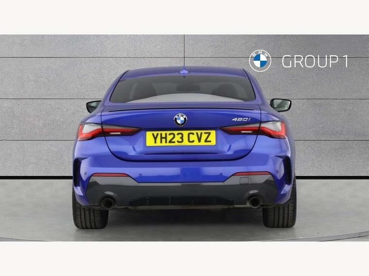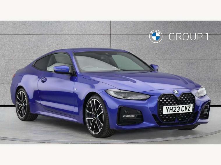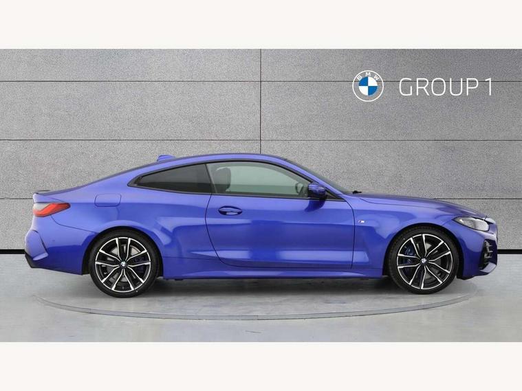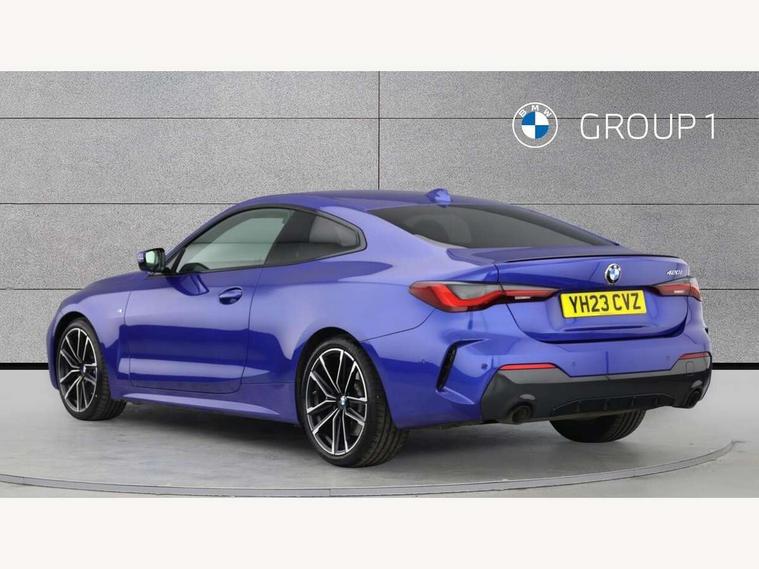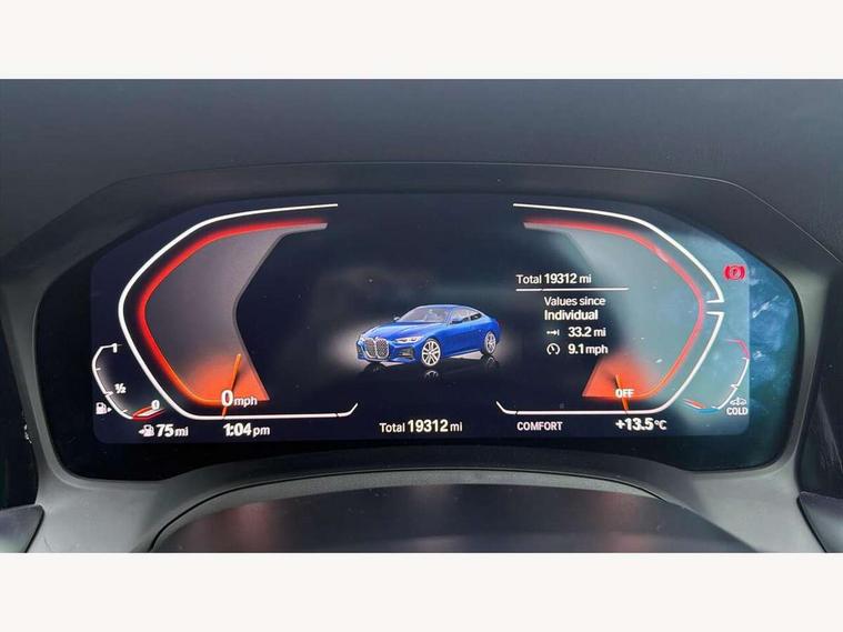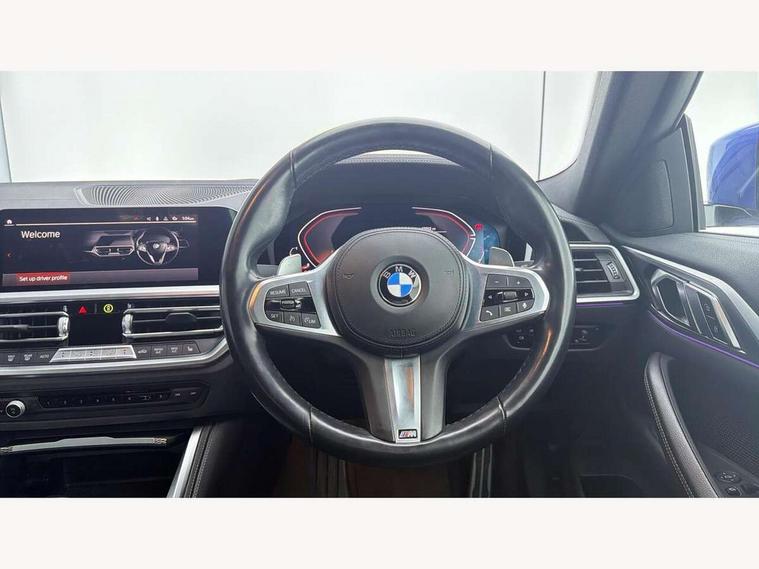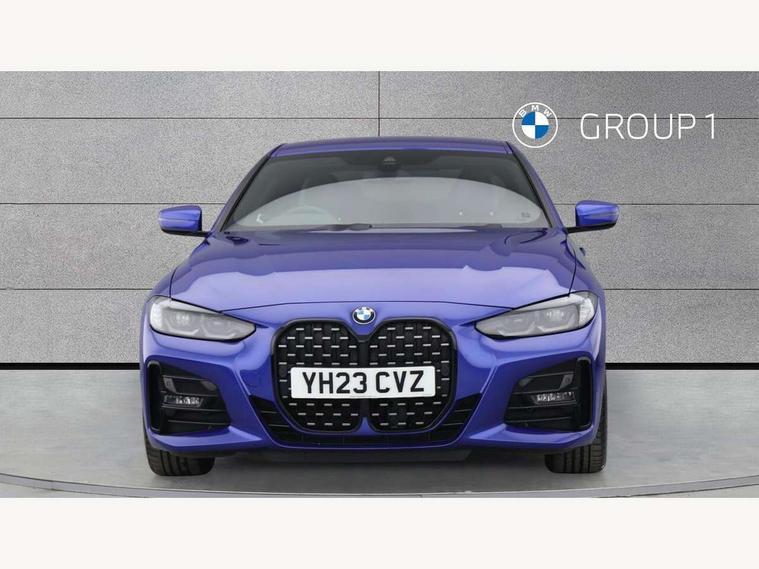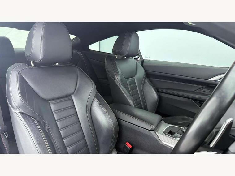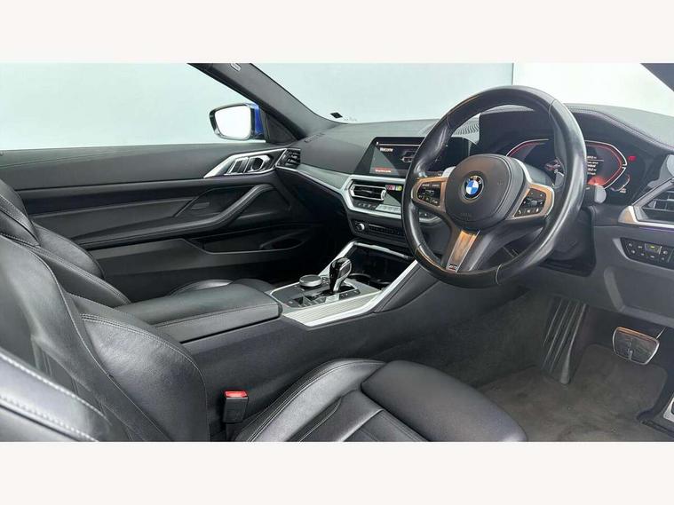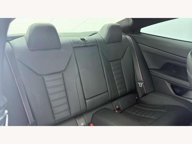 Active guard plus, Attentiveness assist, Auto start-stop, Bluetooth hands free facility with USB audio interface with audio streaming, BMW ConnectedDrive online services, BMW iDrive controller on centre console, BMW Live Cockpit Plus Nav-12.3" instrument&14.9" control Widescreen curved display/Intelligent Voice Assist/iDrive touch/Access 3rd party app/4G LTE, BMW service history, BMW Teleservices, Brake pad wear indicator in front and rear, Check Control warning system for monitoring of lights and door/luggage compartment open warning, Condition based service, Cruise control with speed limit function, Electric power steering with Servotronic steering optimised at all speed ranges, Gearshift time display in manual mode, Instrument cluster with speedometer with mph readout, tachometer, fuel gauge and oil temperature gauge, Integrated owners handbook, Oil sensor for level and grade, warning by check control system, On board computer - average speed, fuel consumption, outside temp display with acoustic warning, clock/date, service interval, odometer/trip meter, Optimum shift indicator, Run flat indicator, Shifting point display, Variable sport steering, 8 speed automatic steptronic transmission with gearshift paddles, Balanced 50/50 weight distribution, Double joint spring strut front axle, Double VANOS, Drive performance control - ECO PRO, comfort and sport modes, Electronic differential lock control (EDLC), High precision injection, Low centre of gravity, M sport suspension, Petrol Particulate Filter, Stroke dependent dampers, VALVETRONIC engine management, 2x USB Type C ports in front centre console for charging and data transfer, 2x USB Type C ports in rear centre console for charging, DAB tuner, Electronic service booklet, Acoustic glazing, Automatic headlight beam throw control with load dependent regulating reaction, dynamic compensation of braking dive and acceleration squat, Automatic windscreen wipers and automatic headlight, Automatically dimming electrochromatic rear view mirror, BMW emblem on engine compartment lid and tailgate, BMW kidney grille with mesh grille front side of the nuggets in matt aluminium and frame in chrome high gloss, Body colour fuel filler flap, Body colour roof fin, Brushed aluminium inserts in the front door sill finishers with BMW designation, Door sill strips, Dynamic brake lights, Electric windows - front and rear, with open/close fingertip control, anti trap facility and comfort closing function all round, Exterior mirrors - electrically folding with anti-dazzle, Fading support, Follow me home headlights, Front and rear bumper system, Front apron plastic in body colour, Green tinted heat protection glazing, High gloss shadow line exterior trim, Illuminated bow type door handles in body colour drivers side with door lock, Interior rear view electrochromatic mirror with automatic anti dazzle function, LED daytime running lights, LED front fog lights, LED front indicators, Licence plate panel integrated into front bumper and tailgate, Lightweight engineering, M designation on front side panels, left and right, M rear boot spoiler, Model designation on right side of tailgate, One piece front bumper cover including towing eye cover in body colour, Preparation for high beam assistant, Rear boot, Reversing light, Side frame decorative moulding black matt, Two part LED tailights in L-shape with components in smoked glass, brake light, LED turn indicator and rear fog light, Visible exhaust tailpipe finisher, Visible VIN plate, Welcome lights in interior and door handle area, Widened track and increased camber values for max transverse dynamics, agility and steering precision, Window recess cover black high gloss, Windscreen wipers with integrated heated washing jets, 12V power socket in front centre console, 2 front cupholder in centre console with clamping elements and matt black inlay, 2 Rear seat headrests, 2 seat bench in second row, 3 spoke M sport leather multifunction steering wheel, 3 zone automatic air conditioning, 4 pieces lashing eyelets in luggage compartment, 40:20:40 split folding rear seat and rear centre armrest with two cupholders, Anthracite headlining, Armrest integrated in front and rear door trim + front centre console armrest, BMW ID, Driver seat backrest width adjustment, Extended storage - Luggage compartment partition net on left side trim panel, Bag hook on both sides of the luggage compartment, Four grab handles integrated in roof lining, Front and rear door pockets, Front and rear reading lights, Front sport seats, Heated driver and front passenger seats, Height adjustable front headrests, Height adjustable mechanically and infinitely variable steering column, Illuminated armrest storage compartment, Illuminated glove compartment with separate small compartment, Make-up mirror lights, Single front passenger seat, Storage compartment in rear centre console, Sunvisors with illuminated vanity mirrors and ticket pocket, Toolkit located in luggage compartment, Velour front floor mats, Vernasca leather upholstery, Ambient lighting pack - 4 Series, Connected professional package - 4 Series, M sport exterior styling pack - 4 Series, 2 x 3-point rear seatbelts, Battery safety cut-off, BMW emergency call, Brake energy regeneration, Braking pre-tensioning, Child seat ISOFIX attachment for the two outer rear seats, Coasting in idle in ECO PRO mode, Cornering brake control (CBC), Crash sensor activating of airbags, Unlocking doors, hazard warning lights, interior light, safety battery terminal, Driver and front passenger side airbags, integrated in the door side seat backrest bolsters for all seat variants, Driver/Front Passenger airbags, Dry braking, Dynamic brake control, Dynamic stability control + (DSC+) - Anti-lock Braking System (ABS) with brake assist and cornering brake control + Automatic Stability Control (ASC), Dynamic Traction Control - DTC, Electric parking brake including automatic hold function and automatic release of the parkin