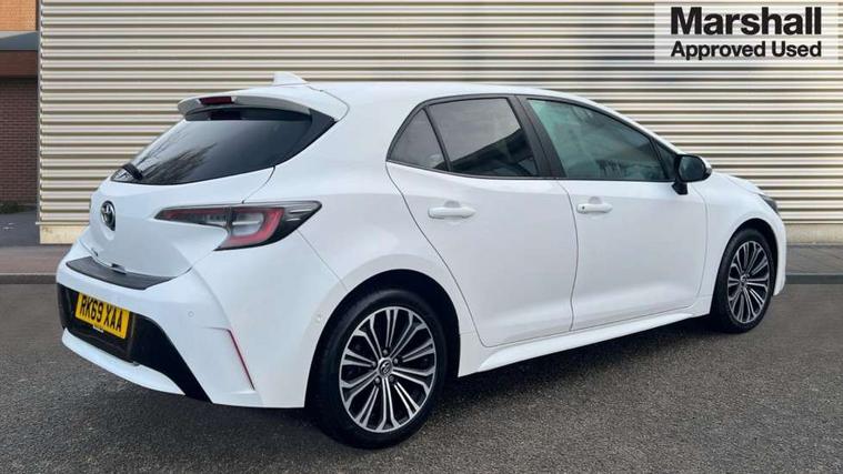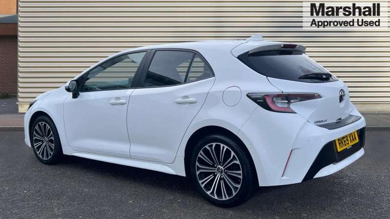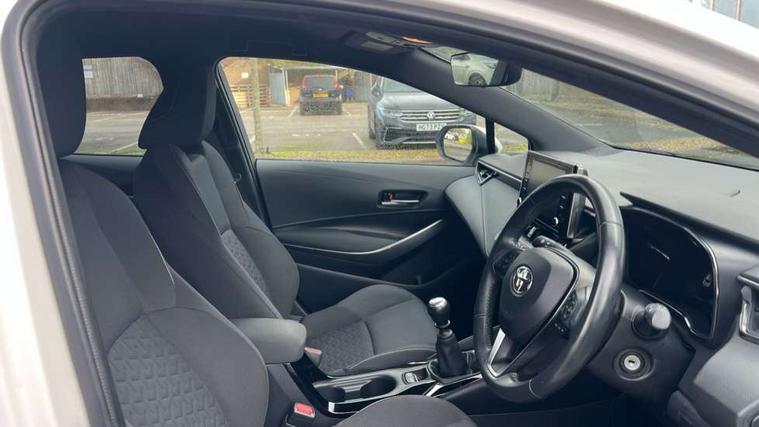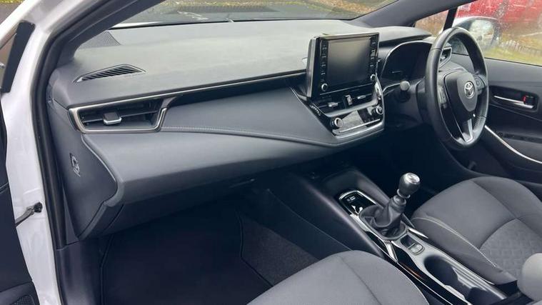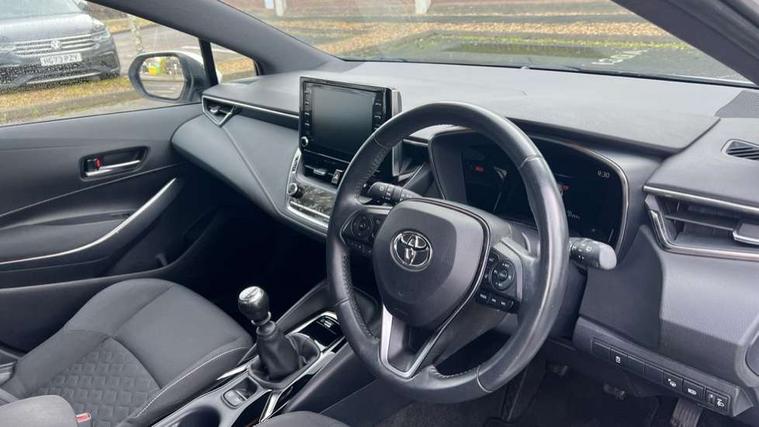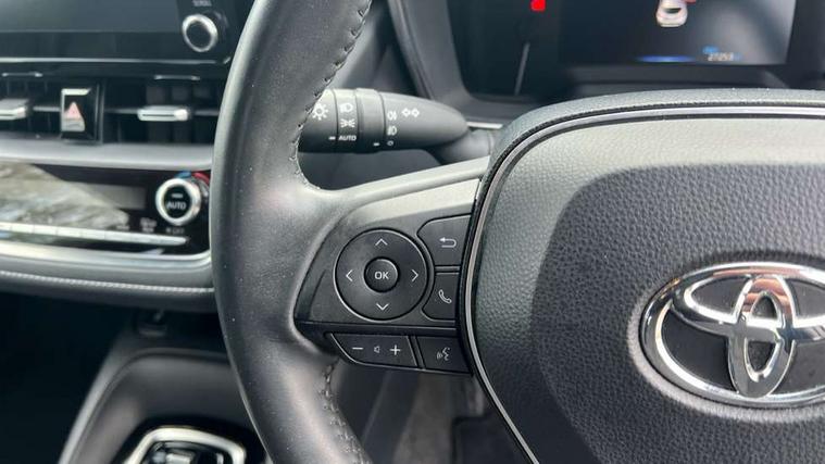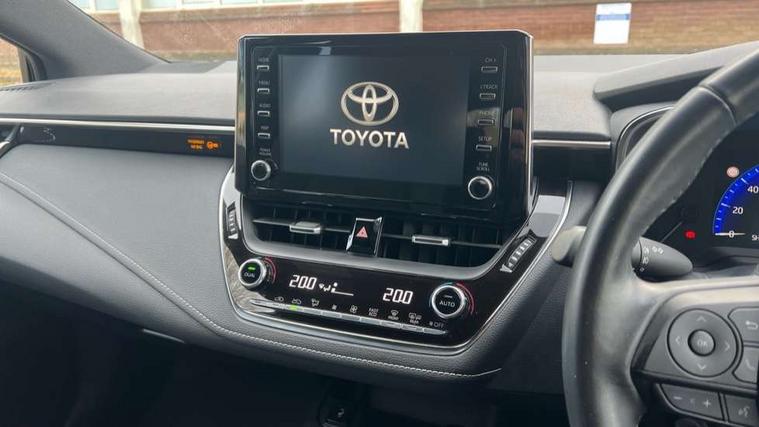 Adaptive cruise control, Bluetooth telephone connectivity, E-call, Electrically assisted power steering, Front parking sensor, Intelligent park assist, Rear parking sensor, Reversing camera, Voice activation, Vehicle Stability Control (VSC), 2 ring combimeters with 7" colour TFT screen, 6 speakers, 8" multimedia and back monitor, AM/FM radio, DAB Digital radio, Toyota touch 2 with go navigation system, USB/AUX connectivity, Anti-jam protection on power windows, Auto dimming inside rear view mirror, Auto high beam, Auto up and down function on all power windows, Automatic folding mirrors, Automatic headlights, Automatic rear view mirror, Automatic wipers, Body coloured bumpers, LED daytime running lights, LED fog lights, LED Headlights, LED rear combi lights with LED lightguide, Power front windows, Power rear windows, Privacy glass, Rain sensor, Rear window wiper, Shark fin antenna, 3 rear headrests, Clean air filter, Dual zone automatic air conditioning, Fabric upholstery, Front head restraints, Heated seats, ISOFIX seat fixing (2 fixings on rear outer seats), Leather steering wheel and gear knob, Pollen filter, Power lumbar support, Tilt/telescopic steering column, Whiplash Injury Lessening (WIL) feature (active headrest) for seats, Parking pack - Corolla, Toyota safety sense 2 - Corolla, 3x3 point rear seatbelts, Anti lock braking system + Electronic brake force distribution, Brake assist function, Electronic parking brake, Front passenger airbag on/off switch, Front seatbelt reminder, HAC - Hill start assist control, Rear seat belt reminder, Seatbelt pretensioners and force limiters, Supplemental restraint system (SRS) airbags - 7 airbags including driver, front passenger, curtain, side and knee airbags, Traction control, Tyre pressure warning system, Alarm/immobiliser,