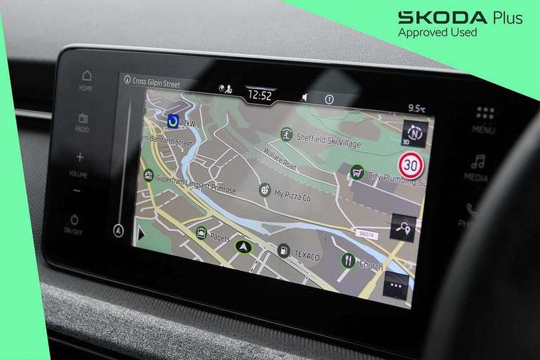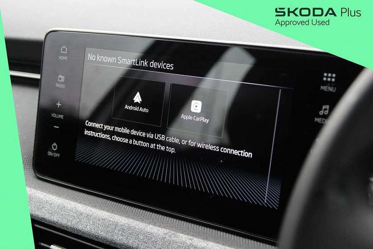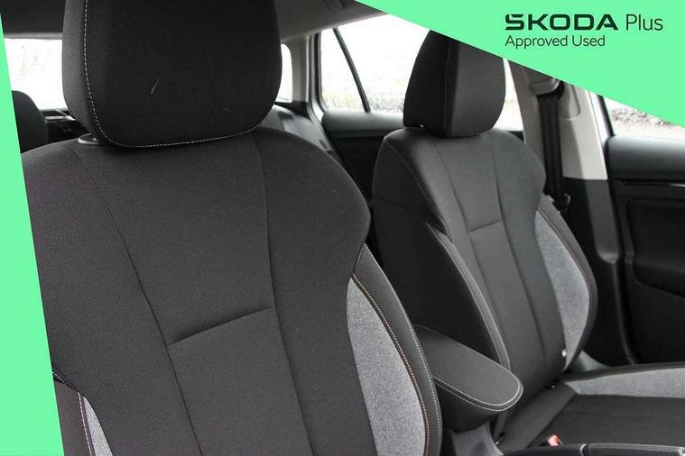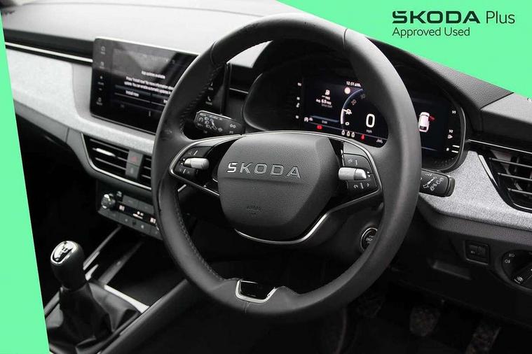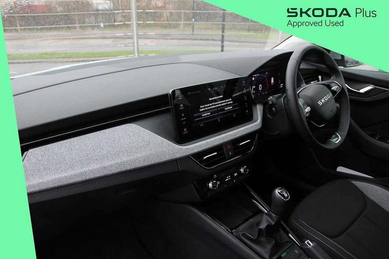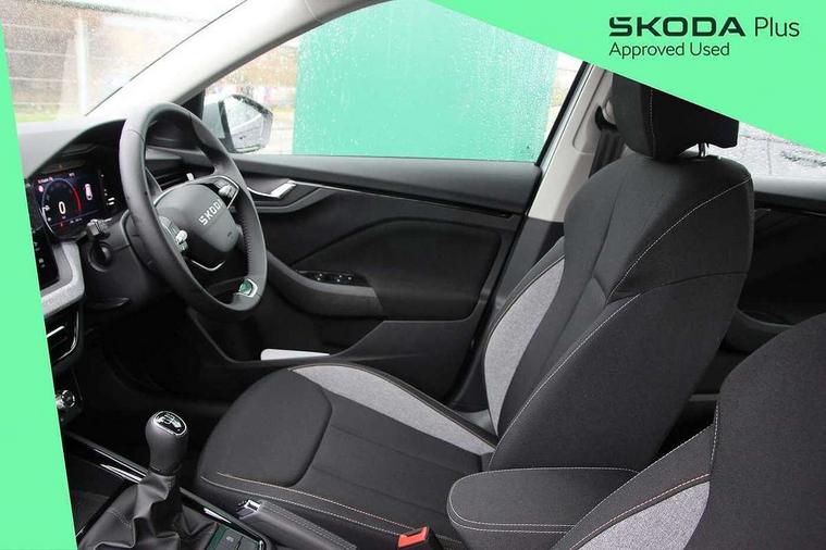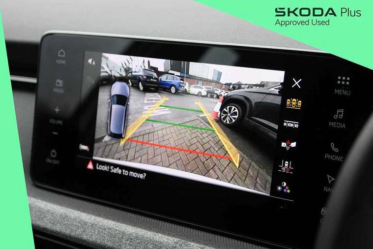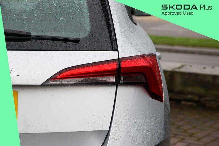 Advanced driver attention and drowsiness monitor, Bluetooth, e-Call (emergency call), Front assist system, PAS, Rear parking sensors, Rear view camera, Speed limiter, Tailgate, Traffic sign recognition, Virtual Cockpit - 10.25" digital display, Voice control system, Wireless smartlink, 4 USB C ports, 8 Speakers, 9.2" Skoda navigation display, DAB radio, Auto dimming rear view mirror, Automatic headlamp activation with Coming home and Leaving home feature, Automatic high/low beam, Body colour bumpers, Body colour door mirrors and handles, Chrome moulding around grille, Front and rear electric windows, Full LED headlights, Heated rear window, LED 3rd brake light, LED brake lights, LED daytime running lights, LED front turning lights, LED high beam, LED low beam, LED taillights, Rear LED fog light, Rear side wing doors, Rear wiper, Tinted windows, Unique dark chrome design logo on alloy wheels, 12V socket in luggage compartment, 3 seat bench in 2nd row, Black / Grey armrest stitching, Black hotstamping, Cargo elements, Chrome inner door handles, Door inserts in satin black, Driver and passenger sun visors with vanity mirror, Dual zone climate control, Front and rear roof lights, Front centre armrest, Front head restraints, Glasses storage in roof liner, Height adjustable driver seat, Height adjustable passenger seat, Ice scraper, Illuminated glove compartment, Inner circulation control with pollen filter, ISOFIX for front passenger seat, Isofix preparation for back seats, Leather gearknob and handbrake lever, Loft cloth upholstery, Luggage net under rear parcel shelf, Manual lumbar support for front seats, Net package and top tether hooks in boot space, Pearl grey ceiling, Pocket on the back of both front seats, incl. mobile phone pockets, Single front passenger seat, Skoda lettering on steering wheel, Textile floor mats, Third rear headrest, Ticket holder, Top tether for front passenger seat, Umbrella in driver's door, 3x3 point rear seatbelts, ABS, Child locks, Curtain airbags and front side airbags, Disc brakes, Driver and front passenger airbags, ESP, Hill hold control, Manual leather parking brake, One tone horn, Passenger airbag switch off function, Seatbelt reminder for driver and front passenger, Tyre pressure monitoring system, Anti theft alarm system with interior monitoring, backup horn and towing protection, Anti-theft wheel bolts, Remote central locking with 2 remote folding keys, SAFE function for remote central locking, Decord pad, door inserts Kota uni,