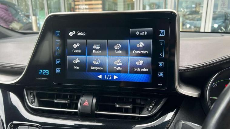 4.2" Colour TFT driver information display, Adaptive cruise control, Bluetooth system, Collision prevention assist, Intelligent parking assist with front, rear and side parking sensors, Lane change assist and blind spot monitor, Lane departure warning system, Lights on warning, PAS, Rear cross traffic alert, Reversing camera, Touch 2 Go navigation system, Traffic sign recognition, Trip computer, Vehicle Stability Control (VSC), Auxiliary input socket, Steering wheel mounted controls, USB connection, Auto dimming rear view mirror, Auto high beam, Body colour door handles, Body colour heated door mirrors, Body coloured bumpers, Electric door mirrors, Electric folding door mirrors, Follow me home headlights, Front and rear electric windows, Front fog lights, Heated rear windscreen, LED daytime running lights, Privacy glass, Rain sensitive windscreen wipers, Rear spoiler, Rear wiper, Shark fin roof aerial, 12V Accessory socket, Child seat anchorage points, Chrome interior door handles, Cloth/leather upholstery, Driver/passenger sunvisors and illuminated vanity mirrors, Dual zone automatic air conditioning, Folding rear seats, Front and rear door pockets, Front centre armrest, Front cupholders x 2, Front head restraints, Heated front seats, Height adjustable drivers seat, Illuminated door sills, Illuminated entry system, Leather gear knob, Lumbar support, Nappa leather steering wheel, Rear headrests, Tilt/telescopic steering column, 3x3 point rear seatbelts, ABS+EBD+Brake assist, Airbag deactivation switch, Driver/Front Passenger airbags, Driver/front passenger side airbags, Drivers knee airbag, ESP + traction control, Front and rear curtain airbags, Hill start assist control (HAC), Rear child proof door locks, Road sign information display, Tyre pressure monitoring system, Alarm, Immobiliser, Remote central locking, Smart entry, Tyre repair kit,