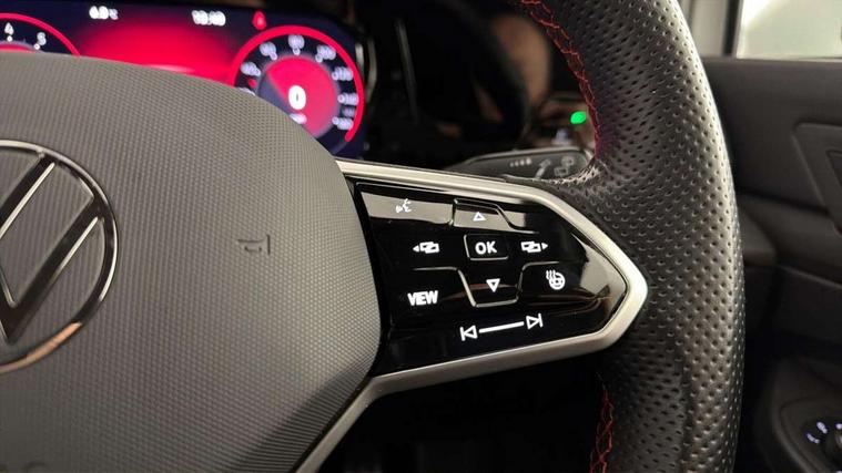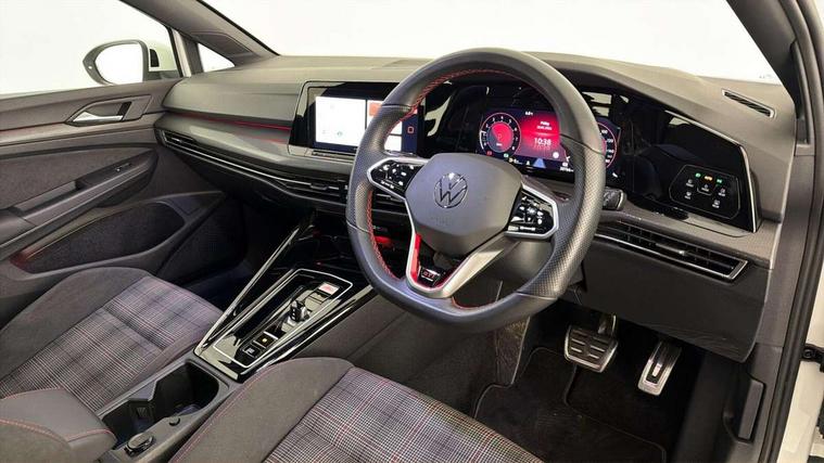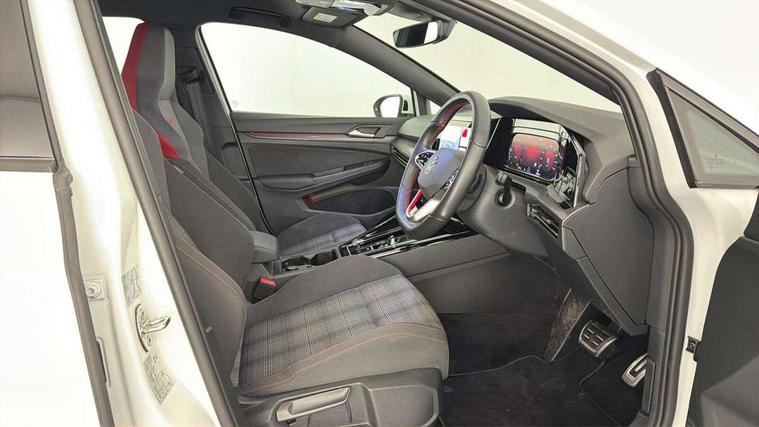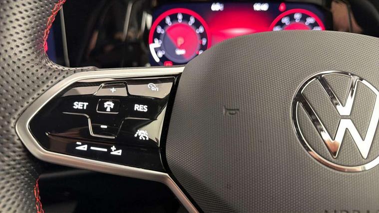 Adaptive cruise control (ACC) with speed limiter and front assist (reacting to vehicles pedestrians and cyclists), Car2X communication, Digital cockpit pro - 10.25" high resolution TFT dash display screen with customizable menus and information, Driver alert system, Dynamic road sign display, eCall - Emergency call service for SOS calls to emergency response, Lane assist, Lane change assistant, Mobile phone interface with wireless inductive charging function, Multifunction camera for distance control, PAS, Speedo, rev counter, electronic odometer, trip, service interval display, exterior temperature and fuel gauge, Start/Stop function, Travel assist with emergency side assist with electrically foldable door mirrors, USB-C ports in the front and rear centre console with increased charging performance, Warning buzzer and light for front seatbelts unfastened, Wireless app connect, Front differential lock, Petrol Particulate Filter, XDS electronic differential lock for improved traction and handling, Premium USB cable in choice of either Apple or Android smartphone compatibility, Ambient lighting, exterior illuminated styling elements at the sides, Auto dimming rear view mirror, Automatic headlamp activation with Coming home and Leaving home feature, Automatic headlights, Body colour bumpers, Body colour door handles, Body colour door mirrors with integrated indicators, Body colour rear roof spoiler, Chrome plated tailpipes (1 either side), Front and rear electric windows, GTI style bumpers, Heat insulating glass windscreen, Heated rear windscreen, High level 3rd brake light, Highway light, Illuminated front grille, IQ.Light - LED Matrix headlights, dynamic headlight control with advanced high beam control matrix dipped main beam + LED DRL + 22 LED lights, LED front fog lights with 5 honeycomb design, LED License plate illumination, LED rear combination lamp inlcuding dynamic turn signal, Rain sensor, Rear fog light on one side and reversing lights on both sides, Rear side wing doors, Rear tinted glass 65% light absorbing from B pillar backwards, Rear windscreen washer and wiper with interval delay, Remote electrically heated, adjustable and foldable door mirrors, including door mirror puddle lights and reverse activated kerb-view adjustment on pa, Welcome light, 12V socket in front centre console, 12V socket in luggage compartment, 3 rear head restraints, 3 seat bench in 2nd row, 3 zone climate with controls in the rear, Aluminium gear knob, Ambient lighting - Customisable 30 colour ambient lighting, Brushed stainless steel pedals, Chrome plated surround to electric mirror button, window switch and air vent surrounds, Drivers and front passengers sun visors with vanity mirrors, Front + rear carpet mats in recycled material, Front centre armrest with storage compartment, Front cupholders x 2, Front passenger seat, Front reading lights x 2 incorporating LED technology, Front seat lumbar support adjuster, Front sports seats, Glovebox, GTI logo on backrest, Height adjustable front seats, Height and reach adjustable steering wheel, Isofix child seat preparation for 2 rear child seats and front passenger seat, Leather wrapped multifunction sports heated steering wheel with red stitiching + paddle shift, Leatherette door armrests and centre armrest, Luggage compartment lighting, Removable luggage compartment cover, Soul black instrument panel, Soul black roof lining, Split folding backrest with centre armrest and unsplit rear seat bench, Woven fabric storage compartments in front and rear doors, 3 point height adj front seatbelts + pretensioners, 3 rear three point seatbelts, ABS, Child locks on rear doors, Driver and front passenger airbag with front passenger airbag deactivation, Drivers and front passengers safety optimised head restraints, Electronic parking brake with auto hold, ESC (Electronic Stability Control), Extended pedestrian protection measures, Front and rear passengers curtain airbag system including front side airbags, Front centre airbag, Front disc brakes, Front side airbags with curtain airbags, Rear disc brakes, Two tone horn, Tyre pressure monitoring system, Alarm with interior protection and deactivation via infotainment system, Electronic engine immobiliser, Keyless entry with start/stop button on centre console, Black metal chrome decorative inserts in dash and front door trim panels, High gloss black centre console,