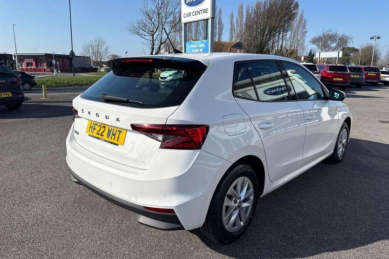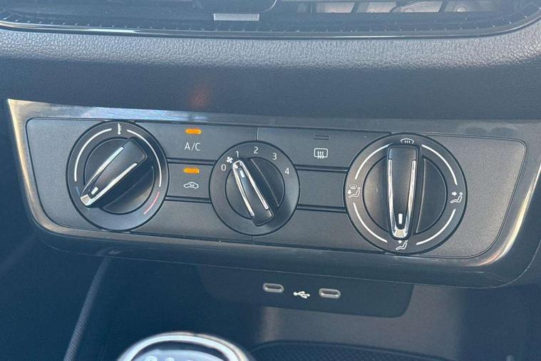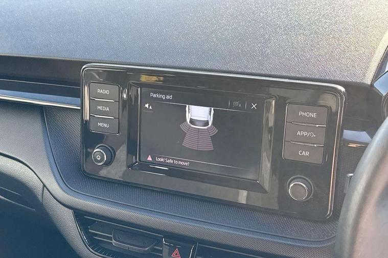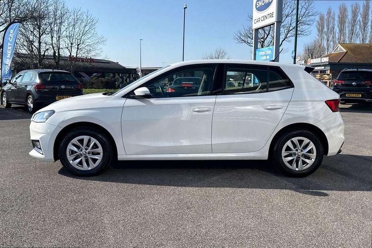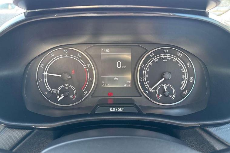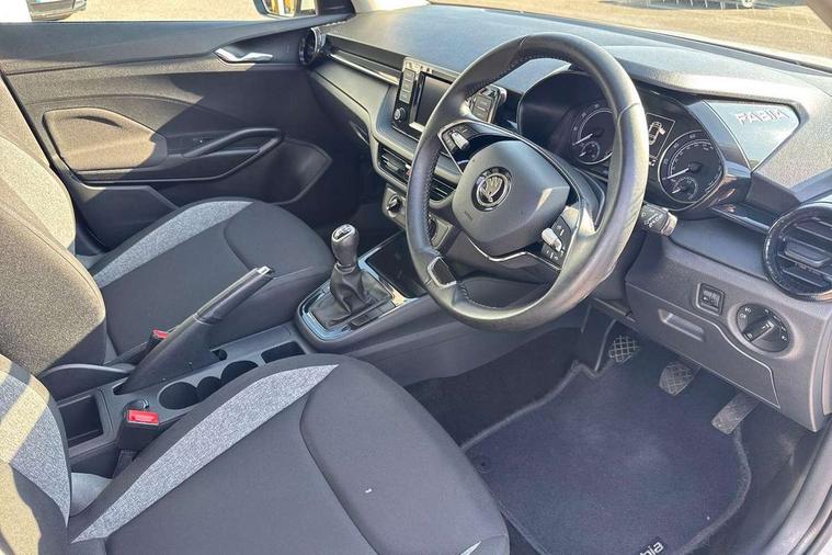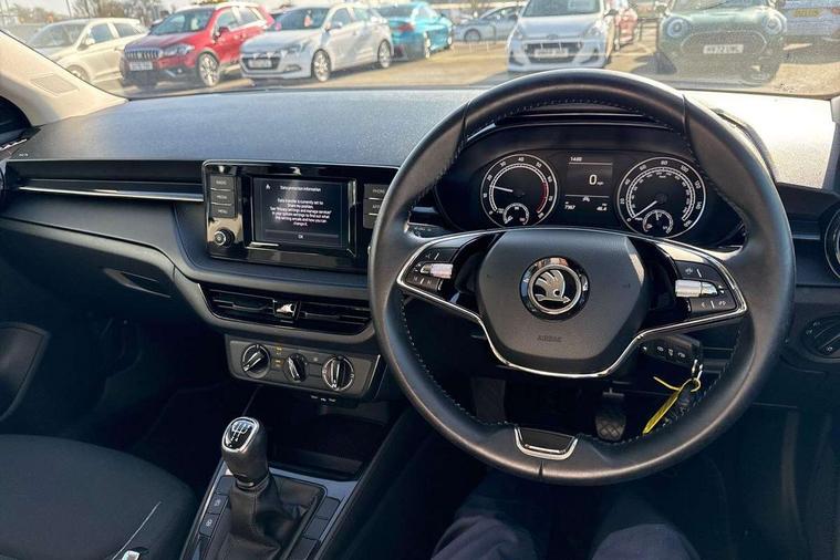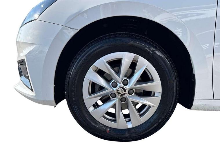 Bluetooth connection, Driver alert system - DAS, Electromechanical power steering, Exterior temperature gauge, Lane assist including road edge detection, Multifunction trip computer in black and white, Service interval indicator, Speed limiter, 2x USB-C in the front (for data transmission and charging), 4 speakers in front, Auxiliary socket for external MP3 player, DAB digital radio reception, Radio Swing with 6.5" colour display, Basic LED Headlights, Basic rear lights, Body colour door mirrors, Body coloured bumpers, Dimming rear view mirror with black frame, Door mirror integrated indicators, Electrically adjustable and heated door mirrors, Electrically adjustable front windows with function auto up/down, Front fog lights, Front window wiper intermittent control, Headlight range control - Automatic, Ice scraper in fuel cap, LED daytime running lights with coming and leaving home feature, Mechanical adjustable rear windows, Rain sensor, Rear LED fog light, Rear side wing doors, Rear window wiper with washing nozzles, Roof mounted spoiler, SKODA tailgate lettering in chrome, Third brake light, 2 reading lights in front and 2 reading lights in rear, 2 spoke leather multifunction steering wheel, 3 rear headrests, Backrest split and folding, Central console with fixed cup holder and storage box, Chrome handbrake release button, Fabric upholstery, Gearshift knob/handle in leather, Grain satin black interior door handles, Hand brake lever handle in leather, Height adjustable front headrests, Height adjustable front seats, Height adjustable steering wheel, ISOFIX and TopTether anchorage points to the outer rear seats, ISOFIX and TopTether on the front passenger seat, Luggage compartment lighting, Manual air conditioning, Manually adjustable lumbar support in front seats, Pollen filter, Rear seat bench unsplit, Single front passenger seat, Storm grey headlining, Sun visors with mirror and airbag label on passenger side, Ticket holder, 3-point height adjustable front seats belts with pretensioner and force limiter, Automatic warning lights in case of crash, Driver and passengers airbag with switch off function, e-Call+, ESC including ABS, MSR, ASR, EDS, HBA and XDS, Front and rear seat belt warning, FRONT ASSIST (AEB City and AEB Inter Urban), Front side airbags, Head airbags, One tone horn, Pedestrian protection, Three rear 3-points safety seat belts with pretensioner and force limiter including stop function for outer rear seat belts, Tyre pressure monitoring system, Anti-theft alarm system including immobiliser, interior monitoring, backup horn, and towing protection, Central locking with radio remote control, interior controls, SAFE function and 2 foldable keys, Black painted air vents, Glossy black decorative trim, Grain satin black central console cover, Grain satin black lower decorative trim, Satin black door and side trim panel in front, Anti-theft wheel bolts protection, Super-low rolling resistance tyres,