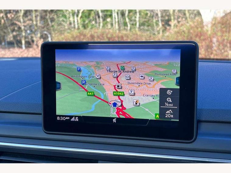 7" Colour driver information system, Audi connect safety and service (e-call), Audi drive select, Audi parking system plus with front and rear sensors, Audi Pre sense collision avoidance, Bluetooth interface, Driver information centre, Electric boot release, Electromechanical power steering, MMI SD card Navigation, Power boot opening and closing, Service interval indicator, Stop/start button, Voice control system, 54 litre fuel tank, 2 USB interfaces and Aux-In jack, DAB digital radio module, Acoustic windscreen, Air inlets in titan black with two horizontal inlays in chrome, Aluminium window trim, Auto dimming rear view mirror, Automatic headlights + automatic windscreen wipers, Body colour bumpers, Body colour door handles, Body colour door mirrors, Chrome diffuser clip, Chrome rolled exhaust, Chrome tailpipe finisher, Electric front windows, Electric rear windows, Headlight range control, High gloss black triangular aperture at rear door, LED indicators in door mirrors, Rain and light sensors, Rear diffuser in Twilight grey matt, Rear wiper, Twilight grey matt radiator grille with chrome inlay, 3 spoke high multi-function leather sports steering wheel, 3 zone climate control, 4 way electric lumbar support for driver and front passenger, 40/20/40 split folding rear seats with rear centre armrest, Aluminium door sill trims, Front centre armrest, Front headrests, Front/rear floor mats, Height and reach adjustable steering wheel with full size airbag, Isofix child seat preparation for front passenger/outer rear seats inc passenger airbag deactivation, Jack and tool kit, Luggage compartment carpet, Rear headrests, Sunvisors with vanity mirrors, Top tether anchor plate for isofix child seat, Non Smokers pack, 3 point seatbelts on all rear seats, Adaptive driver and front passenger airbags, Electromechanical parking brake, Electronic stabilisation control including ABS, ASR and EDL, Front head airbags, Front seatbelt pretensioners + load limiters, Front side airbags, Multi-Collision braking, Pop-up bonnet for pedestrian protection, Seatbelt warning, Traction control, Tyre pressure warning, Variable restraint system, Warning triangle and first aid kit, Anti theft alarm, Keyless Start, Locking wheel bolts, Remote central locking, Thatcham category 1 alarm + immobiliser, MMI radio plus with smartphone interface, Tyre repair kit,