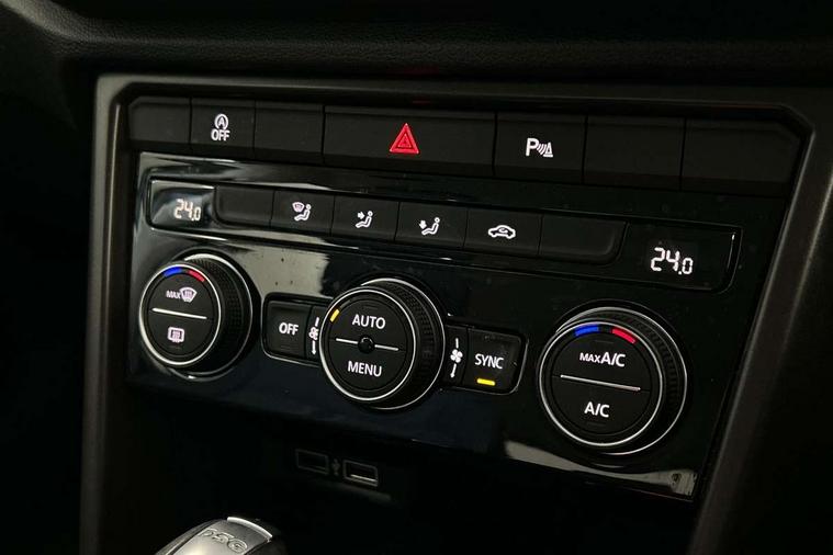 2 USB connection charging sockets, Adaptive cruise control, App-Connect, Automatic start/stop system, Bluetooth telephone and audio connection for compatible devices, Car information display, Front assist, radar sensor controlled distance monitor, city emergency braking + predictive pedestrian protection, Lane assist, Multifunction computer with visual gear change recommendation for fuel consumption, Power assisted speed sensitive steering, Service interval indicator, Think blue trainer driver tips and journey analysis, Warning sound and light for doors and tailgate open, Warning sound and light for front seatbelts unfastened, Battery regeneration during braking, Bluetooth - Simultaneous pairing of 2 compatible mobile devices, DAB Digital radio, Multi device interface (MDI) with USB connection, Music playback - MP3, WMA and AAC files, Premium USB cable in choice of either Apple or Android smartphone compatibility, SD card slot, SMS functionality - read, compose and send SMS messages using touch-screen display, Title and cover art display, Auto dimming interior rear view mirror, Automatic hazard lights activation under emergency braking, Black grained lower door protectors, Black grained wheel arches, Body colour bumpers with silver metallic underbody fascia, Body colour door handles, Chrome trim on upper and lower radiator grille, Door mirror integrated indicators, Dusk sensor, Electrically foldable, adjustable and heated door mirrors with puddle lights and reverse activated kerb-view adjustment on passenger's door mirror, Front and rear electric windows, Front windscreen wiper with intermittent wipe and 4 position delay, Fully galvanised body, Heated rear window, High level 3rd brake light, LED rear number plate lights, Manual coming/automatic leaving home lighting function, Rain sensor, Rear windscreen washer and wiper with interval delay, 12V socket in centre console storage area, 2 front reading lights, 3 rear head restraints, 4 load lashing points in luggage compartment, Climate control - 2 zone electronic air conditioning with automatic air recirculation and allergy filter, Drawer under drivers seat, Front centre armrest with storage compartment, longitudinal and height adjustable and two rear air vents, Front cupholders x 2, Front seat back storage pockets, Glovebox, Height adjustable front seats, Height/reach adjust steering wheel, Illuminated vanity mirrors, Instrument lighting, white adjustable panel illumination, Interior light delay, Isofix easy fit child seat preparation for 2 outer rear seats, Load through provision with single cup holder when folded down, Luggage compartment cover, removable, Luggage compartment lighting, Split folding rear seat backrests with centre armrest, Storage compartment in left and right luggage area, Storage compartment in rear doors, Storage compartments in driver and front passenger doors, 3 rear three point seatbelts, ABS, Driver and front passenger safety-optimised head restraints, Electronic parking brake with auto hold, ESC with EDL, ASR, EDTC and trailer stabilisation function, Front and rear curtain airbags, driver and front passenger airbags with passenger deactivation switch and front side impact airbags, Rigid safety cell with front and rear crumple zones, Three point height adjust front seatbelts + pretensioners, Tyre pressure loss indicator, Ventilated front and rear disc brakes, Volkswagen roadside assistance, Alarm with remote central locking and interior protection, Electronic engine immobiliser, Remote central locking with 2 remote folding keys, Dark oak brown decorative inserts in dash and door panel,