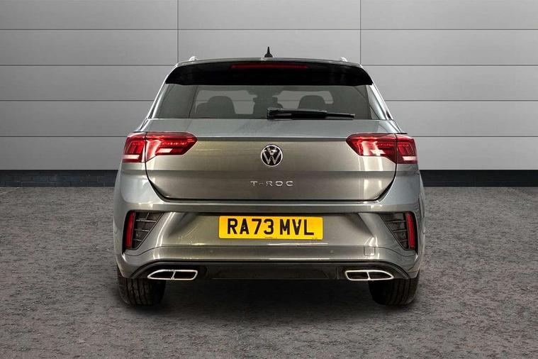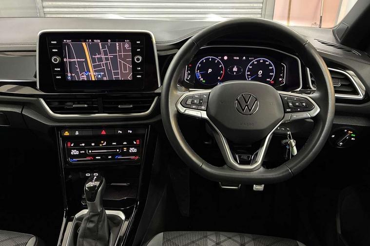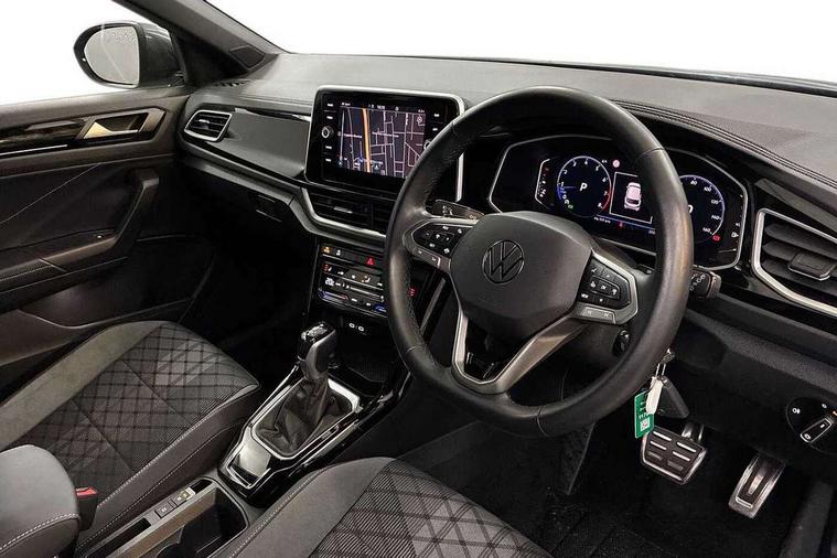 10.25" Digital cockpit pro, Advanced driver attention and drowsiness monitor, Bluetooth mobile phone interface, Emergency call service, Lane keeping system Lane Assist, Modified key software - reduce switch off time for key status change to Long no motion, Online services, Park assist including front and rear parking sensors, Service interval indicator, Tailgate/trunk lid release from outside, Think blue trainer driver tips and journey analysis, Warning sound and light for front seatbelts unfastened, Wireless app connect, Battery regeneration during braking, Start/stop function with battery regeneration, Diversity antenna for FM reception, Music playback - MP3, WMA and AAC files, Premium USB cable in choice of either Apple or Android smartphone compatibility, SD card slot, Simultaneous pairing of 2 compatible mobile devices, Title and cover art display, We Connect and We Connect Plus functionality, 3rd brake light, Auto dimming interior rear view mirror, Automatic hazard lights activation under emergency braking, Automatic headlight control with LED separate daytime running lights with coming/leaving home function, Electrically adjustable and heated door mirrors, Extended roof spoiler, Exterior mirrors aspherical on driver side, convex on front passenger side, External USB type C socket and charging sockets, Front windscreen wiper with intermittent wipe and 4 position delay, Heated rear window, LED rear combination lamps, LED rear number plate lights, Power windows with comfort operation and circuit breaker, R-Line design body coloured bumpers, Rain sensor, Rear exhaust tailpipe, Rear fog light on one side and reversing lights on both sides, Rear side wing doors, Rear wash/wipe with intermittent wipe setting, Remote electrically foldable door mirrors, puddle lights and reverse activated passenger's door mirror, 12V power socket in centre console, 3 rear head restraints, 3 seat bench in 2nd row, 4 load lashing points in luggage compartment, Air care climatronic air conditoning system with active combination filter and 2-zone temperature control, Black roof lining, Chrome plated radiator grille inserts, air vent surrounds and light switch surrounds, Door and side trim panel with leatherette insert, Front + rear carpet mats, Front centre armrest, Front cupholders x 2, Front footwell illumination, Front reading light, Front scuff plates with R Line logo, Front seat back storage pockets, Glove compartment door with light, Instrument lighting, white adjustable panel illumination, Interior ambient lighting and surround lighting, Interior light delay, Isofix child seat preparation, Leather gearshift handle, Load-through provision with cup holder when folded down ('Unsplit rear seat bench, split folding backrest, with centre armrest), Luggage compartment lighting, Single front passenger seat, Stainless steel pedals, Storage compartment in left and right luggage area, Storage compartment in rear doors, Storage compartments in driver and front passenger doors, Sunvisors with illuminated vanity mirrors, Variable boot floor, height adjustable and removable, Driver assistance pack without proactive passenger protection - T-Roc, 3 point height adj front seatbelts + pretensioners, 3 point seatbelts in outer rear with ECE label, ABS, Child locks on rear doors, City emergency braking and pedestrian monitoring, Driver and front passenger airbag with front passenger airbag deactivation, Driver and front passenger safety-optimised head restraints, Drivers seatbelt reminder, Electronic parking brake, Electronic Stability Control (ESC) inc EDL (Electronic Differential Lock) and ASR (Traction Control), Front and rear passengers curtain airbag system including front side airbags, Hill start assist, Predictive pedestrian protection, Rear disc brakes, Two tone horn, Tyre pressure loss indicator, Volkswagen roadside assistance, Anti-theft alarm system with interior monitoring, backup horn, and towing protection, Remote central locking with SAFELOCK, radio remote control with 2 remote control folding keys, Trims for alloy wheels,