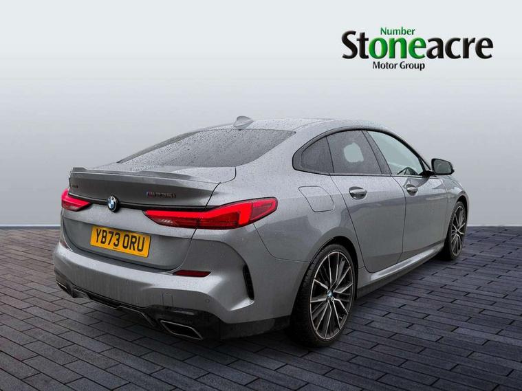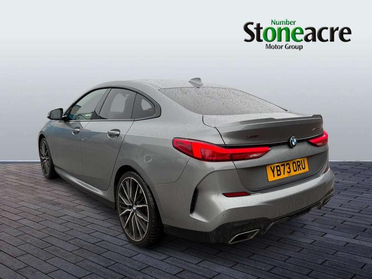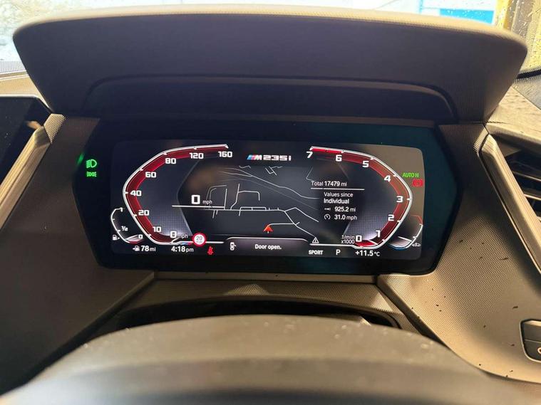 Active guard plus, Attentiveness assist, Auto start-stop, BMW ConnectedDrive online services, BMW Intelligent Personal Assistant, BMW Live Cockpit Professional with 10.25" high resolution instrument and control display, BMW Online services, BMW operating system with 7.0 mid interface, BMW Teleservices, Check Control warning system for monitoring of lights and door/luggage compartment open warning, Cruise control with braking function, Electro hydraulically controlled multi plate clutch in rear axle, Energy efficient operating strategy, iDrive controller with 7 short cut favourite buttons on centre console, Integrated navigation data with map data via USB +features such as 3D landmarks and micro city models, Integrated owners handbook, Intelligent voice assistant, Lane departure warning system, M Sport steering with M235i xDrive M performance specific settings, On board computer - average speed+fuel consumption, service interval, clock/date, odometer/trip meter, outside temperature display and ice warning, Optimum shift indicator, Personal Profile, Pull away assistant, Speed limiting function, 2 balance shafts, 8 speed sport automatic transmission with electronic selector lever, auto P function, coasting idle, race track, sport, gearchange display manual mode, Aluminium lightweight construction, BMW TwinPower twin-scroll Turbo four-cylinder petrol engine, Double VANOS, Drive performance control with ECO PRO comfort + sport mode, Electronic differential lock, Engine cover with M performance designation, High precision injection, Larger fuel tank capacity (50 litres), Launch control, M235i specific heavily de-throttled engine intake air guide, M235i specific high-performance cooling package, M235i specific larger turbocharger with integrated divert-air valve, Performance Control, Petrol Particulate Filter, Power transmission of front wheel drive on the rear axle via angle transmission on the front axle differential and two part cardan shaft, VALVETRONIC engine management, Variable, stepless and infinitely adjustable distribution of drive torque between the front and rear axles, xDrive intelligent all wheel drive with M235i specific reinforced components, 2x USB Type C ports (for charging and data transfer), 4G LTE Connectivity with hard wied 4G network sim card, DAB digital radio, MP3 players and RDS double tuner, Auto wipers, Automatically dimming rear view mirror, Body colour door handles, Direction indicator side lights integrated exterior mirrors, Electric windows - front and rear, with open/close fingertip control and trap release, Exterior mirrors - electrically folding with anti-dazzle, Fading support, Follow me home headlights, Front and rear bumper system with replaceable deformation elements, Front door sill finishers in black plastic with M235i designation, Heated, electrically adjustable exterior mirror aspheric on driver side, convex on passenger side, High gloss black B pillar finish, High gloss shadow line exterior trim, High level third brake light, LED daytime running lights, Lightweight engineering, M Performance exhaust system with valve control and minimised exhaust back pressure, M rear spoiler, Model designation on right side of tailgate includes xDrive designation onleft handside for M235i xDrive, Preparation for high beam assistant, Rain sensor with automatic headlight activation, Rear boot, Rear fog lights, Rear side wing doors, Reinforced crank drive, new pistons and adapted con rods, Reversing light in rear light cluster, Welcome lighting, 12V power socket in centre console, 2 cupholders in front centre console, 3 rear seat head restraints, 3 rear seats, 3 spoke M sports design leather steering wheel finished in nappa leather with specific M badge, Additional under floor storage in luggage compartment, Anthracite finished floor mats with contrasting surround, Anthracite headlining, Automatic two zone climate control air conditioning, Child seat ISOFIX attachment for two outer rear seats and front passenger seat with anchorage points, Conditioned based service, Driver and front passenger seat heating, Front and rear door pockets including bottle trays, Front and rear side armrests integrated into door trim, Front armrest foldable with integrated storage compartment, Front centre interior light over interior mirror and rear centre automatic interior light when door is opened/ignition switched off or via remote key, Front head restraints, Front M Sport seats, Front passenger seat, Glove compartment, Luggage compartment lighting, Manually adjustment steering wheel column, Multi-function controls for steering wheel, Shift-by-wire selector shift, Steering wheel paddles, Sun visors with vanity mirrors and insert tab, Through loading system with 40/20/40 split folding rear seat, Two lashing eyes, Additional interior lighting pack - 2 Series Gran Coupe, Connected pack professional - 2 Series Gran Coupe, Extended storage pack - 2 Series Gran Coupe, M Sport exterior styling aerodynamics pack - 2 Series Gran Coupe 235i, 2 tone horn, Airbag - Front driver and passenger, front and rear head, front side, curtain head protection, manual deactivation of front passenger airbag possible, Anti lock braking system (ABS) with cornering brake control, BMW emergency call, Brake drying, Braking readiness, City braking function, Crash sensor activating of airbags, Unlocking doors, hazard warning lights, interior light, safety battery terminal, Dynamic stability control + (DSC+), Dynamic Traction Control - DTC, Electrically operated hand brake, Integrated torsen mechanical limited slip differential on front axle, M Sport braking system in blue high gloss + blue painted brake calipers with M designation, M sport seatbelt, Rear brake discs, Rear child proof door locks, Seat belt security check for driver and front passenger, Seatbelt warning, Side impact protection, Three point seat belts on all seats including front belt stopper, pyrotechnic belt tensioners and belt force limiters, Trailer s