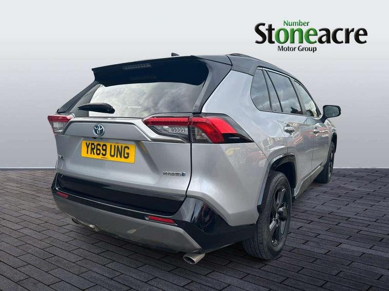 7" colour TFT display, Adaptive cruise control with lane trace assist, Adjustable speed limiter, Blind spot monitoring with rear cross traffic alert, Bluetooth system, Cyclist Detection, Drive mode selector, eCall emergency call system, ECO-driving indicator, Electric power steering, EV audible alert, Hybrid system indicator, Lane departure warning system, Lights on warning, Night Time Pedestrian Detection, Pedestrial detection, Power boot opening and closing, Rear parking camera, Rear parking sensors, Remote boot door release in cabin, Tachometer, Touch 2 Go navigation system including 3D maps and voice control, Traffic sign recognition, Trip computer, Voice control system, Vehicle Stability Control (VSC), 6 speakers, 8" Multimedia display touch screen, Auxiliary socket for external MP3 player, DAB audio, Steering wheel mounted audio controls, Toyota touch media system, USB connection, Auto dimming interior mirror, Auto high beam, Automatic headlamp levelling, Automatic headlights, Automatically retractable door mirrors, Bi-tone black roof, Black door mirrors, Black rear spoiler, Black roof rails, Black Shark-fin antenna, Body colour door handles, Body coloured bumpers, Door mirror puddle lights, Electric adjustable door mirrors, Emergency brake-light signal (EBS), Follow me home headlights, Front fog lights, Gloss black front bumper insert, Gloss black rear bumper insert, Headlight cleaners, Heated door mirrors, LED daytime running lights, LED High mounted stop lamp, LED rear lights, Meshed upper front grille, Power front windows, Power rear windows, Privacy glass, Projector LED headlights, Rear screen wiper - intermittent, Rear windscreen defogger, Silver front under-run, Silver rear under-run, Trailer Sway Control, Turning signal integrated indicators in door mirrors, 3 rear headrests, 60/40 split fold rear seat back, Black roof lining, Boot light, Clean air filter, Driver and front passenger personal light, Driver and front passenger Whiplash Injury Lessening seats, Driver and passenger sunvisors with illuminated vanity mirrors, Dual sided deck board in boot, Dual zone automatic air conditioning, Floor mats, Folding rear centre armrest, Front and rear bottle holders, Front centre armrest, Front footwell lights, Front headrests, Front seat and rear pockets, Front sport seats, Front/rear roof mounted assist grips, Heated driver and front passenger seats, Isofix child seat preparation, Leather gear shift with chrome surround, Light blue ambient lighting on front cupholders and open tray, Manual telescopic and tilt 3-spoke leather steering wheel with Chrome insert, Manually reclining and sliding front passenger seat, Pollen filter, Power height-adjustable sliding reclining and lumbar support for driver seat, Rear coat hooks, Rear door armrests, Rear passenger air vents, Reclining rear seats, Satin chrome interior door handles, Sunglasses holder, Synthetic leather upholstery, 3x3 point rear seatbelts, ABS/EBD, Adjustable front driver and passenger seat belt extender, Brake assist function, Child proof door locks, Collision mitigation braking system, Driver/Front Passenger airbags, Driver/front passenger side airbags, Drivers knee airbag, Electronic parking brake, Electronic Stability Programme (ESP), Emergency brake light system (EBS), Front and rear curtain airbags, Front and rear seatbelt reminder, Hill start assist, Passenger airbag cut-off device, Seatbelt pretensioners with load limiters, Traction control, Tyre pressure warning, Alarm/immobiliser, Glass-breaking alarm sensors, Light - on and Key in reminder, Remote central locking, Smart entry + Smart start, Speed sensitive auto door locking, Tilt detection sensors, Piano black centre console with silver insert, Soft-touch black lower dashboard, Soft-touch black upper dashboard with silver insert, Full size spare wheel,
