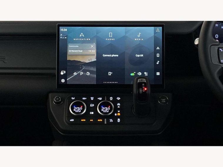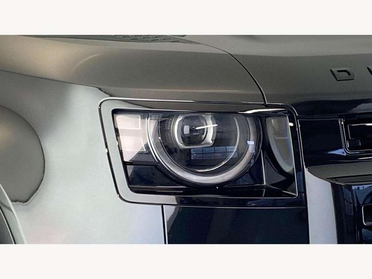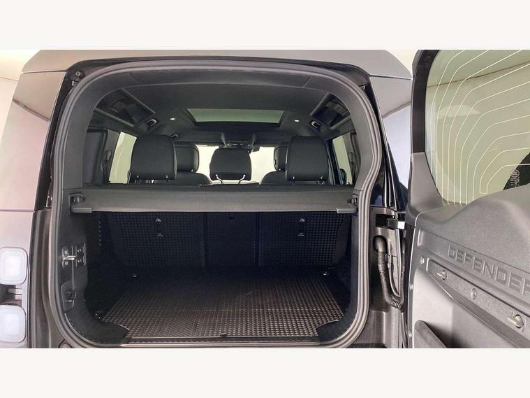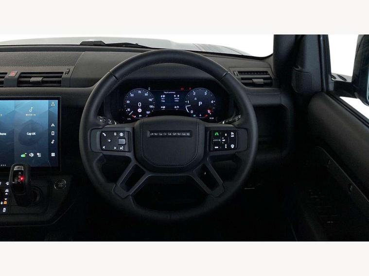 1 x USB-C (power only) & 1 x USB-C (power & data) in Row 1, 2 x USB-C in Row 2, 11.4" touchscreen, 360 degree parking aid, 3D Surround Camera with 360 View, 180 Rear View, Front Traffic Detection, Forward Vehicle Guidance, Tow Hitch Assist and clear sight Ground View, Adaptive cruise control, Android Auto, Apple CarPlay, Blind spot assist, Bluetooth system, Brake pad wear indicator, Clear exit monitor, Connected navigation pro, Driver attention monitoring system, Electric power assisted steering (EPAS), Interactive driver display, Lane keep assist, Push button start, Rear collision monitor, Rear traffic monitor, Traffic sign recognition with adaptive speed limiter, Trip computer, Wireless device charging, 8 speed automatic transmission, All wheel drive system, Twin speed transfer box, DAB Radio (Digital Audio Broadcasting), Meridian 700w surround sound audio system with 15 speakers, Pivi pro connected, Automatic headlight levelling, Automatic headlights, Black exposed rear recovery eyes, Body coloured bonnet, Darkened LED tail lights, Electric heated/power fold door mirrors with approach lights and auto dimming driver side, Electric windows with one touch open/close and anti-trap, Follow me home lighting, Front fog lights, Heated rear window with timer, Heated windscreen, LED 3rd brake light, LED tail lights, Matrix LED headlights with signature DRL, Privacy glass, Puddle lights, Rain sensing windscreen wipers, Rear fog lights, Rear side wing doors, Rear wiper, Side hinged tailgate, Sliding panoramic roof, Standard tail door, Trailer stability assist, X-Dynamic badge, 12V power socket in loadspace, 3 seat bench in 2nd row, Alpine lights, Configurable cabin lighting, Durable rubber cabin flooring, Durable rubber loadspace flooring, Electric reach + rake adjustable steering column, Electrically adjustable steering column, Extended leather upgrade, Footwell lights, Front head restraints, Front passenger isofix child seat attachment, Heated steering wheel, Loadspace cover, Loadspace Hook, Multifunction steering wheel, No flat load floor storage, Overhead stowage for sunglasses, Rear headrests, Rear ISOFIX, Rear reading lights, Single front passenger seat, Soft close tail door, Standard seat configuration, Storage glovebox, Sunvisors with illuminated vanity mirrors, Twin front cupholders, Non-smoker package, Online pack with data plan - Defender, 5 x 3 point seatbelts, ABS, Brake hold function, Cornering brake control (CBC), Customer configurable autolock, Driver and passenger airbags, DSC - Dynamic Stability Control, EBD - Electronic brakeforce distribution, Electric parking brake (EPB), Emergency brake assist, Emergency braking, ESP + traction control, Front airbags with passenger seat occupant detector, HDC - Hill descent control, Hill launch assist, Low traction launch, Power operated child locks, Remote for (e-Call, Optimised assistance call, InControl app, Climate, beep and flash and door), RSC - Roll stability control, Seat belt reminder, TPMS (Tyre pressure monitoring system), Alarm, Immobiliser, Intrusion sensor, Keyless entry, Locking wheel nuts, Secure tracker pro,