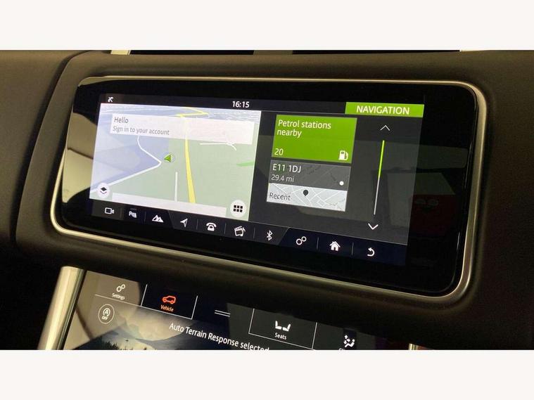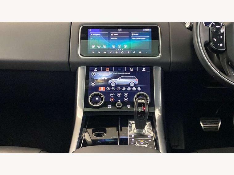 All Terrain Info Centre, Android Auto, Apple car play, Bluetooth connectivity, Electric power assisted steering (EPAS), Incontrol apps in vehicle touchscreen, Interactive Driver display instrument cluster, Mist sensor, Navigation pro system with 10" touch screen, app interface and media storage, Pro services and wifi hotspot, Push button start, Remote premium - Upgraded Incontrol remote app including remote climate control (engine dependent), remote lock + Unlock and remote beep + flash, TFT Virtual Instrument Panel, Touch pro duo system, Trip computer, 7 kW onboard charger, Adaptive dynamics, Electronic active differential with brake torque vectoring, Electronic air suspension, Gradient release control (GRC), Public charging cable, Terrain Response 2 with dynamic program, Twin speed transfer box, Bluetooth audio streaming, DAB Radio (Digital Audio Broadcasting), Incontrol protect - SOS emergency call with automatic collision detection, optimised assistance call and Incontrol remote app essential, USB/aux input socket, Acoustic front and toughened rear side glass, Acoustic laminated front windows, Adaptive brake lights, Auto dimming interior rear view mirror, Automatic headlights, Body coloured side sills and bumpers corners, Centre high mounted stop light, Electric windows with one touch open/close and anti trap, Electrical towing preparation, Engine cover, Follow me home lighting, Front and rear recovery eyes, Front fog lights, Headlight power wash, Heated rear window, Heated windscreen includes heated washer jets, Illuminated metal treadplates with brand name script, LED rear lamps, Privacy glass (Tinted glass rear of B pillar), Rain sensing windscreen wipers, Rear fog lights, Rear side wing doors, Rear wash/wipe, Remote window closing, Side repeater indicators in mirror, Sport Badge in black, Standard bonnet, Trailer stability assist, Twin bright tailpipes, 2 way active front head restraints, 2 way rear head restraints, 3 seat bench in 2nd row, Auto air recirculation, Bright metal foot pedals, Centre console with armrest, Climate control memory, Customer configurable single point entry, Driver's footrest, Extended leather upgrade includes door top rolls and leather instrument panel mid section, Front and rear cupholders, Front door storage space, Front map lights, Front seat back map pockets, Front stowage pocket, Front/rear passenger grab handles, Heated steering wheel, Isofix child seat preparation, Leather steering wheel with Atlas inserts, Loadspace light, Loadspace mounting provisions, Lockable glovebox, Multifunction steering wheel, Perforated Windsor leather upholstery, Pollen filter, Power socket, Reach/rake electric adjustable steering column + entry/exit tilt away, Rear centre armrest, Rear ISOFIX, Roller blind loadspace cover, Satin chrome gearshift paddles, Single front passenger seat, Sports pedals, Three 12V accessory power outlets, Black Exterior pack - Range Rover Sport Dynamic, Smartphone pack - Range Rover Sport, 3 point seatbelts on all seats, Anti-lock braking system (ABS), Brake pre-fill technology, Cornering brake control (CBC), Curtain airbags, Customer configurable autolock, DSC - Dynamic Stability Control, Dual stage driver/passenger airbags, EBD - Electronic brakeforce distribution, Electric parking brake, Electronic traction control, Emergency braking includes city, urban AEB and pedestrian, Front seatbelt pretensioners, Gradient acceleration control, Height adjustable front seatbelts, Hill descent control, Hill launch assist, Low traction launch, Passenger seat occupant detector with front airbags, Power operated child locks, Roll stability control, Seatbelt warning, TPMS (Tyre pressure monitoring system), Immobiliser, Intrusion sensor, Keyless entry, Locking wheel nuts, Perimetric and volumetric anti theft alarm, Remote locking, Grand black veneer, 21" 9 spoke gloss black alloy wheels - style 9001, Tyre repair system,