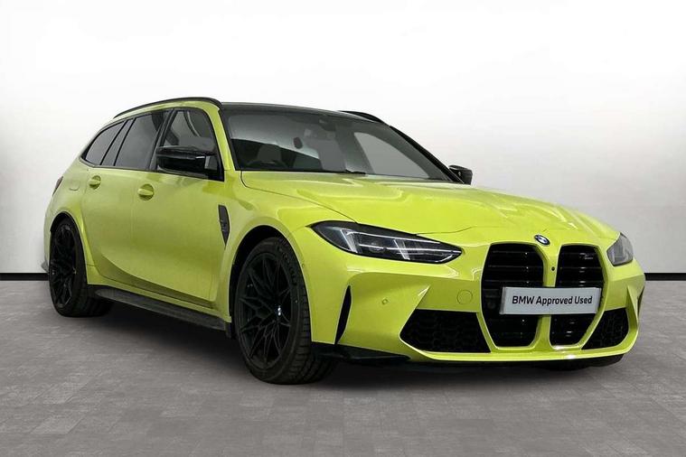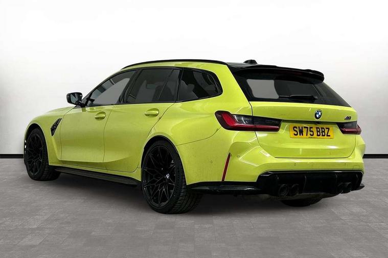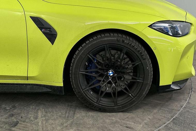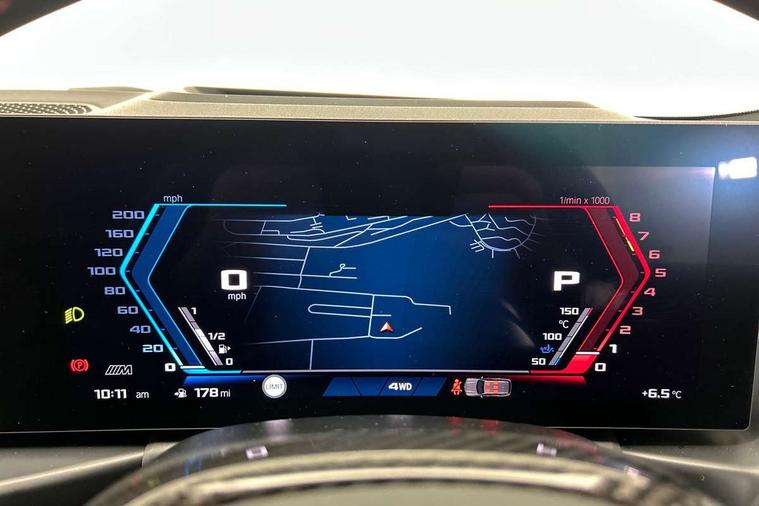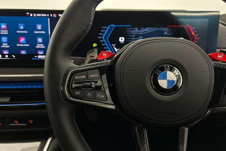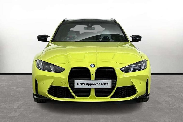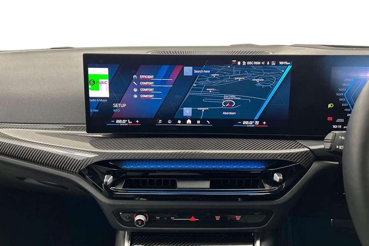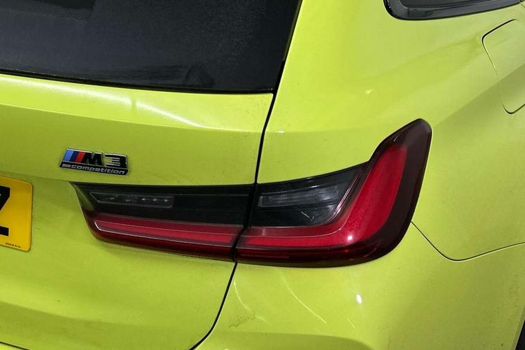 Active Guard, Automatic start/stop system, BMW ConnectedDrive online services, BMW legal emergency call, BMW Live Cockpit Pro with Head up display including 12.3" instrument display and 14.9" high resolution control display with navigation function, BMW Teleservices, Brake pad wear indicator warning light, Condition based service, Cruise control with braking function, Door/boot open warning light, Electric boot lid, Electric Power Steering (EPS) with Servotronic, Language version English, Lights on warning, M drive buttons, Oil sensor for level and grade, warning by check control system, Oil temperature gauge, On board computer, On board diagnostics, Optimum shift indicator, Outside temperature display, Park distance control, Pull away assistant, Run flat indicator, Service interval indicator, Shifting point display, Smartphone integration, Speed limiter, Start/stop button in red, Variable sport steering, Double joint spring strut front axle, Electronic differential lock control (EDLC), M Adaptive suspension, M Drive Professional including track mode, laptimer, traction control & Drift analyser, M Sport differential, Safety battery terminal clamp, Sport automatic transmission with gearshift paddles, Auxiliary point for auxiliary devices, DAB radio with bluetooth music capability, Harman kardon surround sound audio system, Personal eSim, Auto dimming driver's door mirror, Automatic headlights + automatic windscreen wipers, Automatic parking function on front passenger's exterior mirror, Black model designation badges, BMW high gloss shadow line with extended contents, BMW radiator grille, frameless, with horizontal double blind slats, black high-gloss, with model badge, Body colour bumpers, Bonnet and tailgate badge, Carbon fibre reinforced plastic (CFRP) roof, Day time running light, Door mirror integrated indicators, Door sill finishers with aluminium inserts, Dynamic brake lights, Electric adjustable heated door mirrors, Electric folding door mirrors, Electrochromic exterior driver side mirror, Electrochromic interior rear view mirror with automatic anti-dazzle function, Entry sills with aluminium inserts and model badge, Follow me home headlights, Front and rear bumper system, Front and rear plastic apron in vehicle colour, Front door sill strips in aluminium inlays with M3 inscription, Front electric windows with open and close fingertip control, anti trap facility and comfort closing, Headlight beam throw control, Heat protection, sun protection glazing, Heated washer jets, High gloss black lower bumper edges, side sills and diffuser edge binding, High gloss black M roof rails, LED 3rd brake light, LED tail lights with 3D L-shaped LED light design, M designation, Mirror glass aspheric on driver's side, convex on passenger side, Rain sensor, Rear fog lights, Rear reflectors, Rear side wing doors, Rear wiper, Reversing light, Roof fin and roof trim strips in Black high-gloss, Shark fin roof aerial, Strakes in front side panel, black matt/high-gloss black, with model badge, Visible VIN plate, Welcome lighting, 2 cupholders in front centre console, 2 cupholders in rear armrest, 2 rear head restraints, 2 x 12 V Power sockets (luggage compartment and front centre console), 2 x USB Type C ports for charging and data transmission in front centre console, 3 seat bench in 2nd row, 40:20:40 split folding rear seat with loading system, Ambient inside door handle light, Ambient lighting for storage compartment, Ambient lighting front and rear, Anthracite headlining, Battery in luggage compartment, Centre console armrest with storage compartment, Contour lighting for door trim, Driver/passenger sunvisors with ticket holders + illuminated vanity mirrors, Driving experience mode switch, Dual zone automatic air conditioning, Dynamic ambient interior lighting, Electric front seats + driver memory, English handbook, Floor mats in velour, Front and rear door exit lights, Front door storage bins with bottle holder, Front footwell ambient lighting, Front interior light, Front isofix attachment + airbag deactivation, Front reading light, Front seat backrest width adjustment, Front/rear door armrests, Heated front seats, Height adjustable front headrests, Illuminated bow-type door handles in vehicle colour, driver's side with door lock, Interior mirror lighting, Isofix on 2nd row outer seats, Lockable/illuminated glovebox, Luggage compartment lighting, M Sport seats with with illuminated model designation, Multifunction steering wheel, Rake/reach adjustable steering wheel, Single front passenger seat, Storage compartment in rear doors, Storage tray and compartment with cover in centre console, Through loading system, Toolkit located in luggage compartment, Waterfall lighting for central air vent, Wireless charging tray, Connected package professional - M3, Extended storage pack - M3/M4, High gloss shadowline exterior trim pack - M3, 3 point seatbelts on all seats, ABS/EBD, Automatic Stability Control (ASC), Brake energy regeneration, Brake fade compensation, Compound structure brake discs, Cornering brake control (CBC), Crash sensor, Curtain airbags, Driver/Front Passenger airbags, Dry braking, Dynamic brake control, Dynamic stability control + (DSC+), Dynamic Traction Control - DTC, Electromechanical parking brake, Front and rear head airbags, Front seat side impact airbags, Front seatbelt pretensioners + load limiters, Hill start assist, M Sport seat belts, Rear child proof door locks, Seat occupancy detection for driver and passenger side, Seatbelt warning, Side impact protection, Two tone horn, Tyre pressure sensor, Warning triangle and first aid kit, Centre lock switch, Closing system with central locking, Electronic immobiliser, Locking wheel bolts, Remote central locking, Thatcham cat 1 remote alarm, Vehicle Key with 4 buttons including the integrated key, Galvanic embellisher for controls, Tyre repair kit,