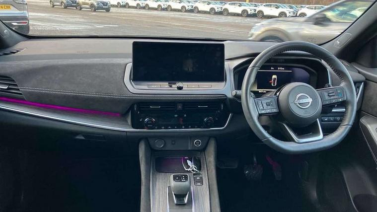 2 front USB-C ports, 2 rear USB-C ports, 360 degree Intelligent around view monitor with moving object detection, Advanced windscreen head up display, Blind spot intervention, Blind spot warning, Drive assist custom mode, Drive modes (sport, normal, eco), Driver drowsiness and attention warning, Electric speed sensitive power steering, Emergency and breakdown call, Emergency lane keep assist, Emergency Stop Signal (ESS), Engine start/stop button, Event data recorder, Front and rear parking sensors, Full Digital 12.3" TFT Digital Combimeter, Google virtual personal assistance, Hands free power tailgate, Idle stop/start system, In-car WIFI hotspot, Intelligent Cruise control (ICC), Intelligent forward collision warning, Intelligent speed assist, Lane departure warning system, Nissan connect 12.3 inch touchscreen infotainment system, Nissan connect navigation with google maps, Nissan connect services 2.0 (Google Automotive System), Outside temperature sensor, Rear cross traffic alert, Reversing detection, Traffic jam pilot, Wireless Apple CarPlay/Android Auto, Wireless charging pad, Limited slip differential, Multi link suspension, 10 Bose speakers - 2 tweeters, 6 high and medium frequency door speakers and 2 in subwoofer, AM/FM audio system with DAB, Bluetooth audio streaming, Bose acoustimass bass box, Auto dimming frameless rear view mirror, Auto rear wiper when reversing, Body colour mirror caps, Body coloured bumpers, Body coloured door handles, Bodyside mouldings, Chrome side window finisher, Electric auto folding door mirrors, Electrically adjustable and heated door mirrors with LED turn indicator, Follow me home headlights, Glossy black bumper inserts and fenders, High beam assist, Intelligent auto headlights, LED 3rd brake light, LED daytime running lights, LED headlights with adaptive driving beam, LED rear lights, LED sequential turn lights, One touch front and rear electric windows with remote opening and closing, One touch passenger window, Rear privacy glass, Rear roof spoiler, Rear side wing doors, Rear styling plate, Reverse tilting door mirrors, Shark fin antenna, Silver roof rails, Splash free rain sensing wipers, Super RED rear LED lights, Super UV and infrared cut glass, Thermaclear heated windscreen, 3 bench rear seats in 2nd row, 3 rear headrests, 60/40 split folding rear seat bench, Chrome interior door handles, Dark headlining, Driver seat back pocket, Dual zone automatic climate control with pollen filter, Fixed Glass roof with electric sunshade, Front door with bottle holders, Heated front seats, Heated steering wheel, Height adjustable front headrests, Luggage board system, Luggage space lighting, Multifunction steering wheel, Passenger seat back pocket, Quilted premium leather upholstery, Rear door bottle holders, RGB ambient light (Full area coverage), Single front passenger seat, Smooth leather steering wheel, Steering wheel gearshift paddles, Tilt/telescopic adjustable steering wheel, Two rear isofix child seat anchorage points with top tether, 3x3 point rear seatbelt pretensioners + load limiters, Autonomous emergency braking, Child locks on rear doors, Curtain and front side, far side airbags, Driver and passenger airbags, Driver, passenger and 2nd row rear seat belt reminder, Electric handbrake with auto hold function, Front seatbelt pretensioners + load limiters, Height adjustable front seatbelts, Hill start assist, intelligent front emergency braking, Rear automatic braking, Tyre pressure monitoring system, Vehicle dynamic control, Engine immobiliser, Intelligent key with walk away lock and approach unlock functions, Remote central door locking with deadlocking, Thatcham alarm, 20" Diamond cut alloy wheels, Tyre puncture repair kit,