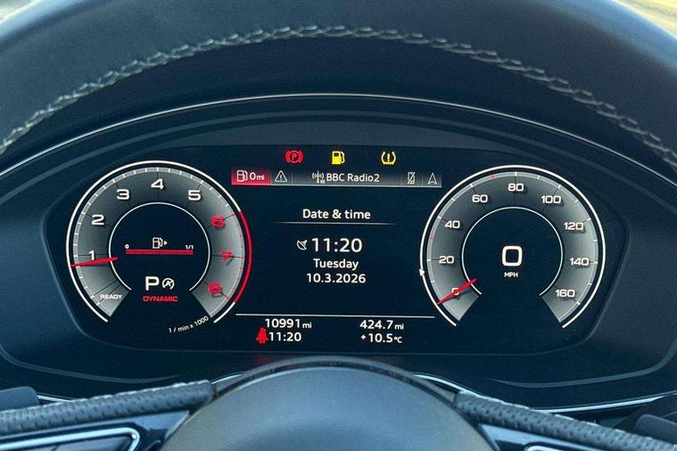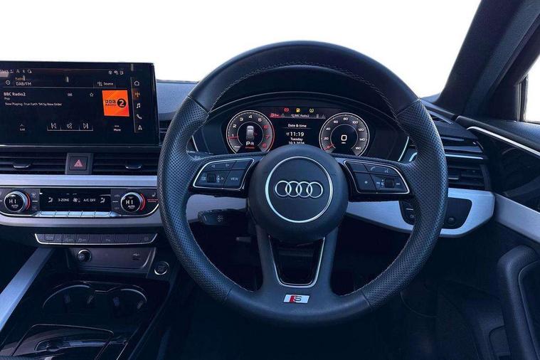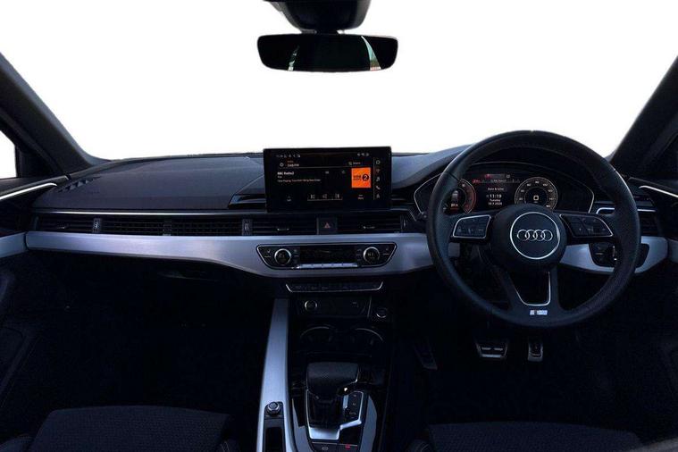 Audi connect safety and service (e-call), Audi drive select, Audi smartphone interface, Audi virtual cockpit, Automatic start-stop system with coasting functionality and efficiency programme, Bluetooth interface, Camera based traffic sign recognition, Electromechanical power steering, Email, calendar and text messages displayed via MMI, Front and rear parking sensors, Lane departure warning, MMI Navigation plus with MMI touch includes 10.1" high resolution colour MMI display, 3D map, Power operated tailgate, Rear view camera, Voice control system, 54 litre fuel tank, Sports suspension lowered by 23mm, 2 USB charging ports, 8 passive loudspeakers, DAB digital radio reception, Aluminium roof rails, Auto dimming rear view mirror, Body colour door handles, Body colour front spoiler lip, Body colour side sill trim, Body coloured door mirrors, Electric adjustable/heated/folding door mirrors with auto dimming, Grained matt black side air inlets with matt aluminium silver inlay, High beam assistant, Honeycomb structure radiator grille in grained matt black, LED headlights with LED rear lights + dynamic rear indicators + headlight adjustment and high beam, turning light + LED daytime running lights, LED third brake light, Matt aluminium silver tailpipe trim, Privacy glass, Rain and light sensors, Rear side wing doors, Rear wiper, S Line badges on the front wings, S line front and rear bumpers with side skirts, S Line rear diffuser in matt anthracite black with trim strip in matt aluminium silver, S Line roof edge spoiler, Variable intermittent front wash/wipe, Windscreen with acoustic glazing, 3 spoke high multi-function sports leather steering wheel grips in perforated leather with S badging including paddle shift, 4 way electric lumbar support for driver and front passenger, 40/20/40 split folding 3 rear seat bench in 3 parts with rear centre armrest, Black carpets, Black cloth headlining, Black perforated leather gearknob, Contrast stitching on seats, steering wheel and gear lever gaiter, Deluxe 3 zone electronic climate control, Electric load area cover, Front and rear head restraints, Front centre armrest, Heated front seats, Illuminated door sill trims with S logo, ISOFIX child seat mounting and top tether, Manual seat adjustment, Single front passenger seat, Stainless steel pedals and foot rest, High gloss package - A4, LED Interior light pack - A4/S4, 3 rear seatbelts, 6 airbags - Driver, front passenger, curtain and side windows, Attention and drowsiness assist, Electronic Stabilisation Control (ESC) including ABS, ASR and EDL, Hill hold assist, Multi collision brake assist, Pop-up bonnet for pedestrian protection, Pre sense city, Rear door child safety locks, Seatbelt monitoring, Warning triangle and first aid kit, Anti theft alarm, Anti theft wheel bolts, Central locking, Keyless Go, Matt brushed aluminium inlays, Tool kit, Tyre repair kit,