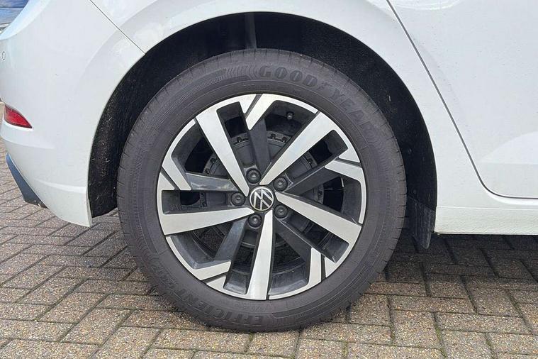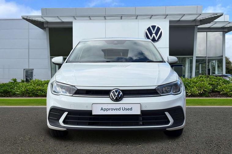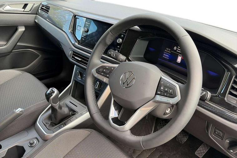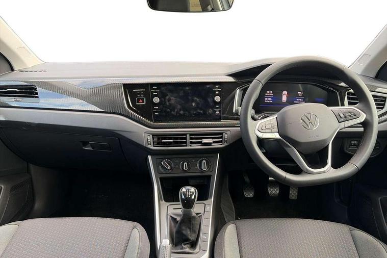 Adaptive cruise control without follow-to-stop and speed limiter, Advanced driver attention and drowsiness monitor, Bluetooth mobile phone interface, Dynamic road sign display, Emergency call service, Multifunction front facing camera for distance control, Power assisted speed sensitive steering, Preparation for navigation system with media and internet package, Preparation for We connect and We connect plus, Rear view camera, Speedo and rev counter, electronic odometer, trip, service interval display and exterior temperature gauge, Standard rear axle, Travel Assist - Lane keeping system and traffic jam assist, Travel assist including emergency assist, Trip computer, Warning signal and warning light for front and rear seatbelts not fastened, Washer fluid level indicator, Wireless app connect, Front wheel drive, Rear shock absorpion, Start-stop system with battery regeneration (recuperation - energy recovery during braking), DAB Digital radio, Diversity antenna for FM reception, Automatic dimming interior rear view mirror, Automatic headlight control with LED separate daytime running lights with coming/leaving home function, Body colour bumpers with chrome inserts, Body colour door handles, Body colour door mirrors, Electric front windows, Engine badge deletion, Headlight range adjustment, Heat insulating and laminated safety glass windshield, LED Headlights, LED rear combination lamps, Power folding adjustable/heated exterior mirrors and front passenger exterior mirror lowering function, Rain sensor, Rear electric windows, Rear fog light, Rear side wing doors, Rear tinted glass from B-pillar backwards approx 65% tinted, Rear windscreen washer and wiper with interval delay, Third brake light, 12V power socket in centre console, 2 front and 2 rear reading lights with switch off delay and dimmer, 2 USB-C ports in the front, 2 USB-C charging sockets on the center console in the rear, 3 rear head restraints, 60/40 split folding rear seat and rear seat bench not split, Ceramique roof lining, Chrome plated radiator grille inserts, air vent surrounds and light switch surrounds, Door and side trim panel, Driver and front passenger seat height adjustment, Driver/passenger sunvisors with illuminated vanity mirrors, Front centre armrest, Front seat backrest storage pockets, Front standard seats, Handbrake lever handle in leather, Hartley/Thomas cloth upholstery, Headliner in recycled material, Isofix child seat preparation easy-fit (for two outer rear seats, and front passenger seat) compatible with I-size, Leather trimmed gear knob, Luggage compartment cover, Luggage compartment lighting, Removable luggage compartment floor, Single front passenger seat, Standard climatic zones, Standard pedal cluster, Three spoke leather wrapped multifunction steering wheel, Light and vision pack - Polo, 3 point height adj front seatbelts + pretensioners, 3 point seat belt for centre rear seat, 3 point seatbelts, outer rear with ECE lable, ABS, Driver and front passenger airbag with front passenger airbag deactivation, Drivers and front passengers safety optimised head restraints, ESC (Electronic stability control) + EDL (Electronic Differntial lock) and ASR (Traction control), Extended and predictive pedestrian/ cyclist protection, Front assist with autonomous emergency braking (for Adaptive Cruise Control ACC up to 130 mph), Front curtain and side airbags with center airbag, Front disc brakes, Hill hold control, Manual child lock in rear doors, Rear drum brakes, Single tone horn, Tyre pressure loss indicator, Alarm with interior protection, Anti-theft alarm system with interior monitoring, backup horn, and towing protection, Anti-theft wheel bolts, Electronic engine immobiliser, Lava stone black gloss/matt decorative inserts in dash and front door panels, 16" Torsby alloy wheels, Low rolling resistance tyres,