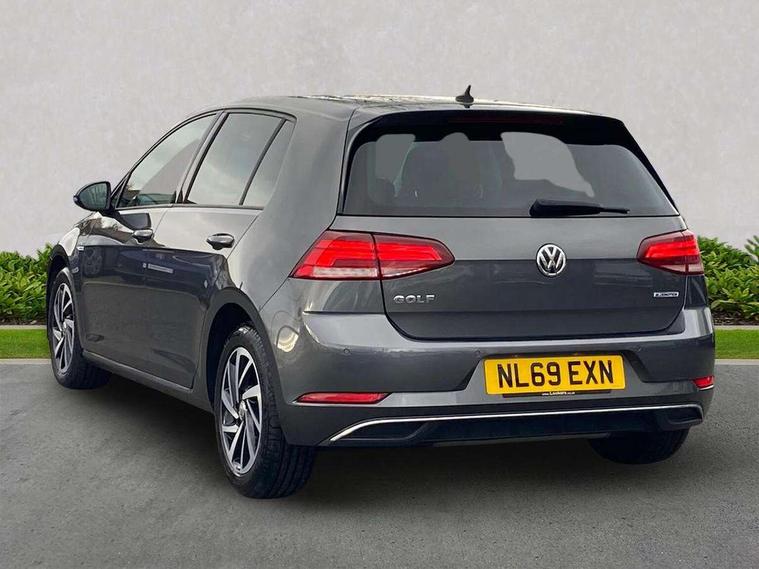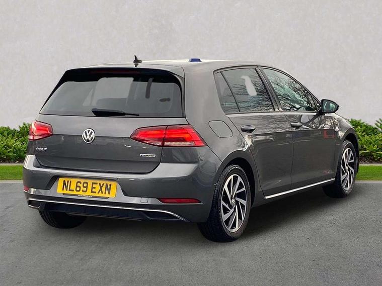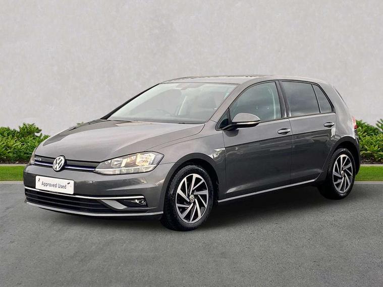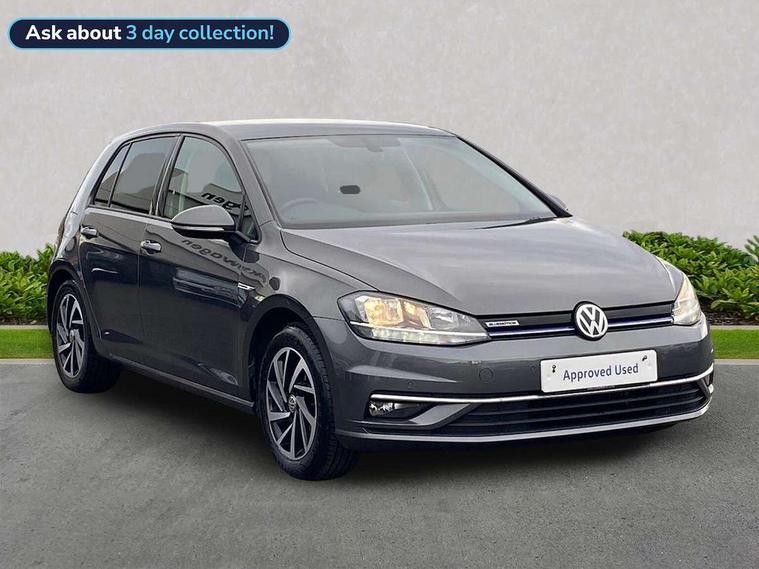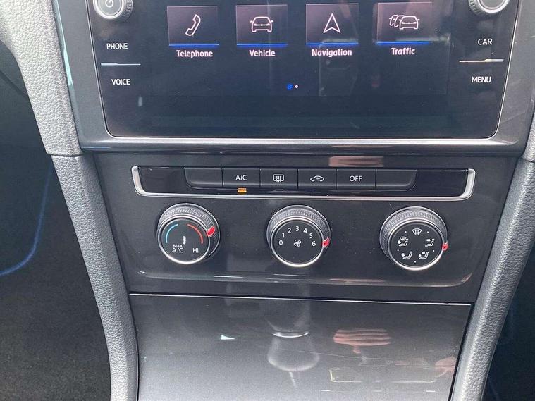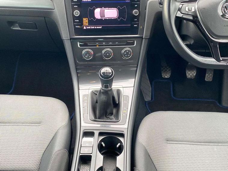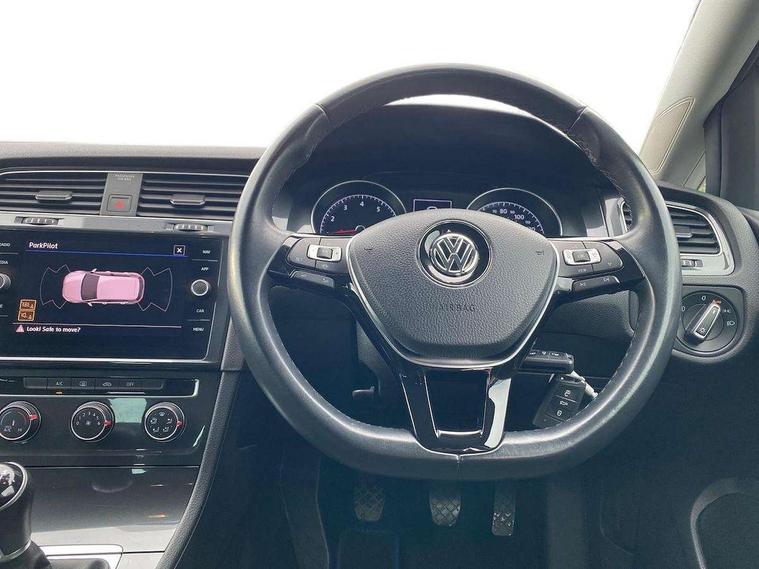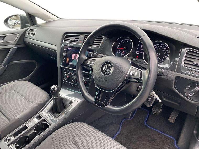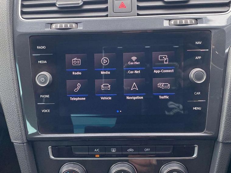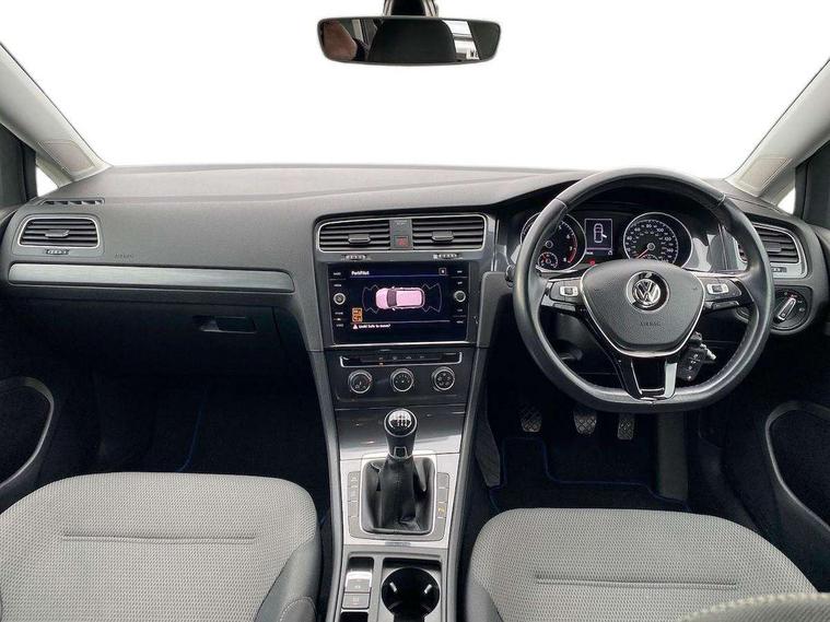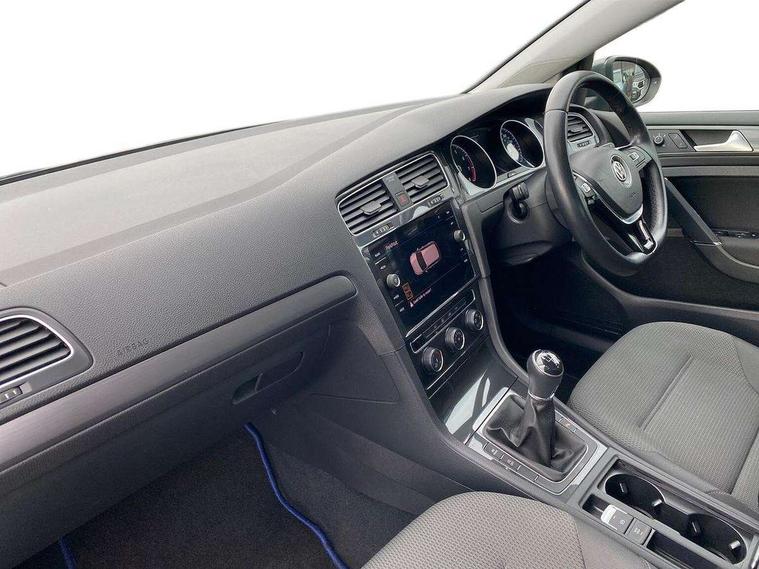 'Lights On' Reminder warning buzzer, ACC - Adaptive cruise control with front assist, forward collision warning, distance monitoring, city emergency brake and speed limiter, Bluetooth telephone and audio connection for compatible devices, Brake pad wear indicator warning light, Driver alert system, Driving Mode Selection with four preset modes - Eco, normal, sport or individual modes, Instrument cluster in white, Multifunction computer with visual gear change recommendation for fuel consumption, Power assisted speed sensitive electro-mechanical steering, Push tank flap, Speed limit display, Speedo, rev counter, electronic odometer, trip, service interval display, exterior temperature and fuel gauge, Stop/start system, Think blue trainer driver tips and journey analysis, Warning buzzer and light for front seatbelts unfastened, We Connect Go Dongle, Battery regeneration during braking, Standard suspension, XDS electronic differential lock, Composition media system, DAB Digital radio receiver, Driver Personalisation profile selection, MP3/WMA compatability, Multi device interface (MDI) with USB connection, Personalisation 1.1 profile for media, Premium USB cable in choice of either Apple or Android smartphone compatibility, SMS Functionality, Title and cover art display, 4 X 20W output, USB connection and socket, USB and SD card connectivity, Aerodynamic black radiator grille with chrome trimmed insert, Auto dimming rear view mirror, Black rear diffuser, Body colour bumpers, Body colour door handles, Body colour door mirrors with integrated indicators, Dusk sensor + automatic driving lights, Electric front windows, Electric rear windows, Electrically adjustable and heated door mirrors, Fully galvanised body, Heated rear windscreen, Hidden exhaust pipe, High level 3rd brake light incorporating LED Technology, LED front fog lights with static cornering light function, Range adjustable headlights via infotainment system with LED daytime running lights, Rear fog lamp, Rear number plate lights incorporating LED technology, Rear tinted glass 65% light absorbing from B pillar backwards, Rear window aerial, Rear window wash/wipe with intermittent wipe, Reflectors in all doors, Remote electrically foldable door mirrors, door mirror puddle lights and reverse activated kerb-view adjustment on passengers door mirror, Tailgate with integrated rear roof spoiler, Windscreen wipers/ intermittent wipe + 4 position delay, 12V socket in luggage compartment, 3 rear headrests, 4 load lashing points in luggage compartment, 60/40 split folding rear seat backrest, Auto fold down lever in rear seat backrest, Bag hook in luggage compartment x 2, Cooled glovebox, Cover for storage compartment in centre, Cupholder cover, Dust/pollen filter, Front and rear reading lights X 2, Front centre armrest with storage compartment and two rear air vents, Front seat back storage pockets, Grab handles front x 2, rear x 2 with integrated coat hooks, Height and reach adjustable steering wheel, Illuminated vanity mirrors, Instrument lighting white adjustable panel illumination, Interior light delay, Isofix preparation for 2 rear child seats, Load through provision with rear centre armrest and cupholders x2, Luggage compartment lighting, Overhead storage box, Passenger underseat drawer, Pearl grey headlining, Storage box in luggage compartment, Storage compartment in roof console with cover, Storage compartments in centre console, Storage compartments in front doors, Storage compartments in rear doors, Stowable luggage compartment cover, Sun visors, Variable boot floor, height adjustable and removable, Convenience Pack - Golf, Light and Sight pack - Golf, Mirror pack - Golf, 3 rear three point seatbelts, Airbags - Driver's and front passenger's, curtain airbag, Driver's knee, front side impact and passenger's airbag deactivation switch, Anti-lock Braking System (ABS) with Hydraulic Brake Assist (HBA), Automatic post collision braking system, Child locks on rear doors, Driver/Passenger optimised head restraints, Electronic parking brake with auto hold, Electronic stability control (ESC) including Electronic differential lock (EDL) and ASR (Traction control) with deactivation via infotainment system, Front ventilated disc brakes and rear disc brakes, Pre crash preventive occupant protection, Three point height adjustable front seatbelts with tensioners, Tyre pressure loss indicator, Alarm with interior protection and deactivation via infotainment system, Electronic engine immobiliser, Brushed dark silver decorative inserts in dash and door panels, Chrome plated air vent surround, Chrome-plated light switch surround, Polar night black decorative inserts in centre console, Steel space saver spare wheel,