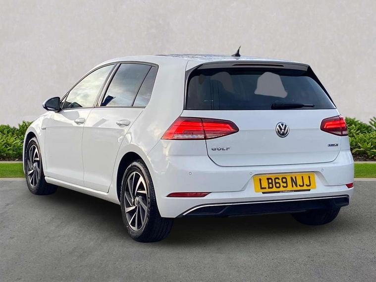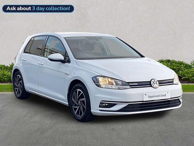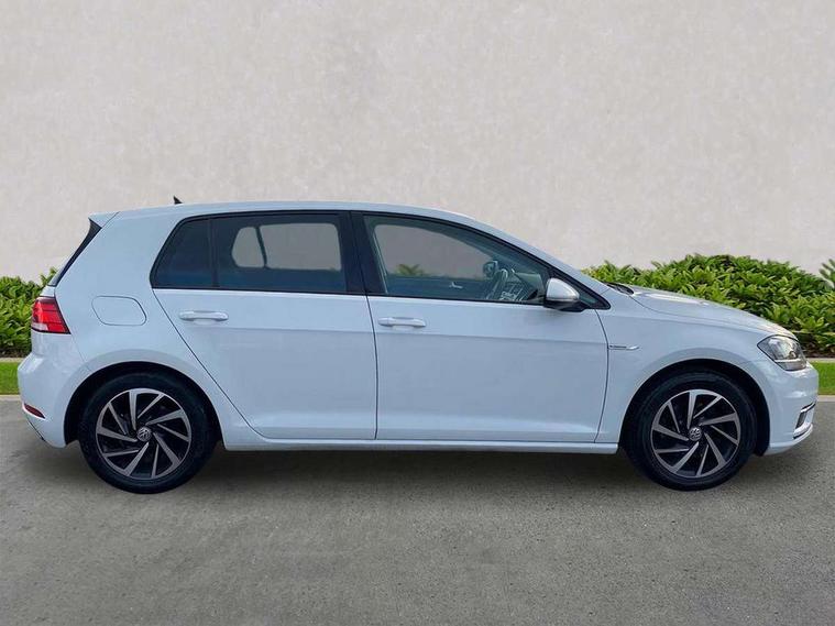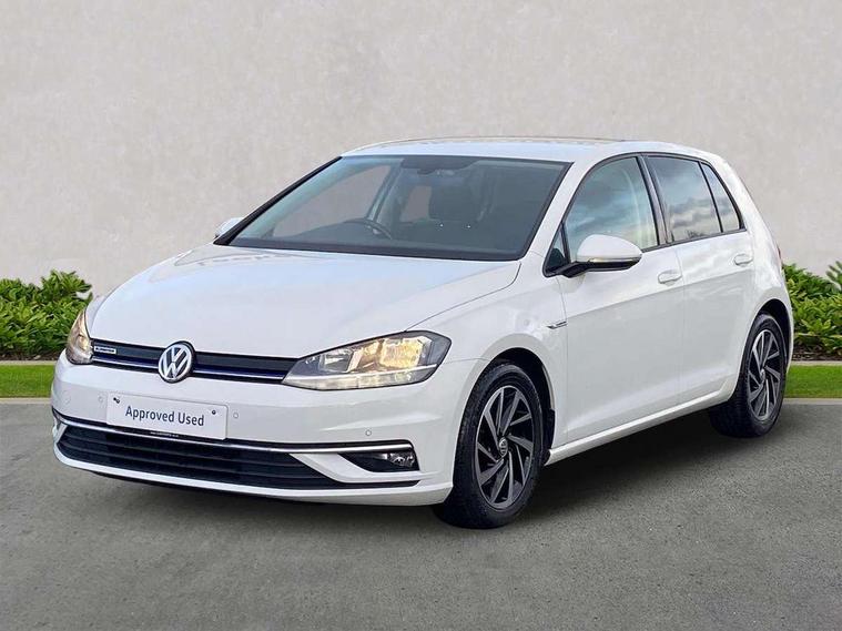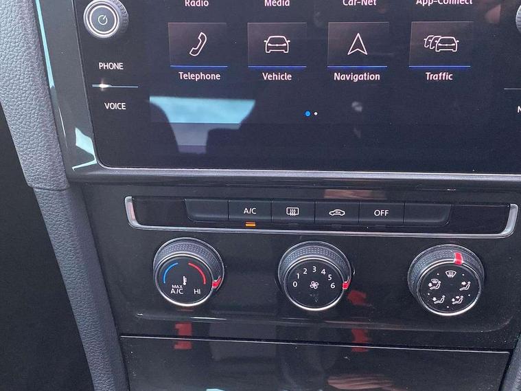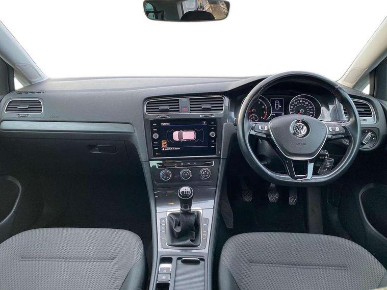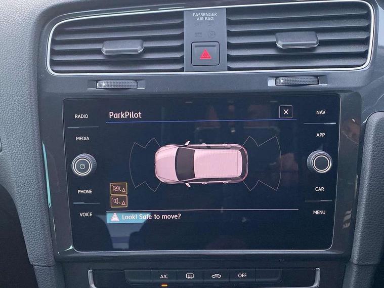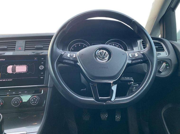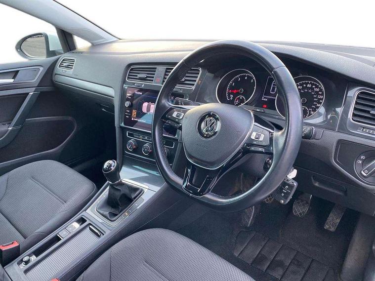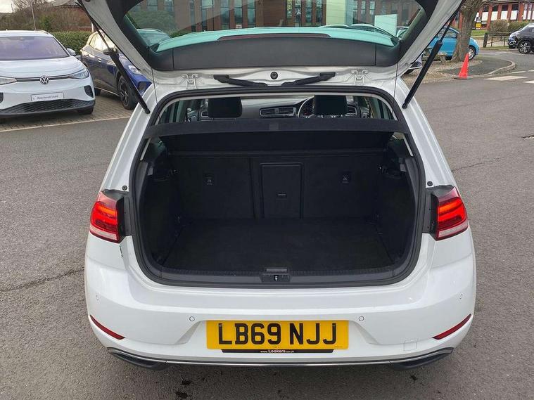 'Lights On' Reminder warning buzzer, ACC - Adaptive cruise control with front assist, forward collision warning, distance monitoring, city emergency brake and speed limiter, Bluetooth telephone and audio connection for compatible devices, Brake pad wear indicator warning light, Driver alert system, Driving Mode Selection with four preset modes - Eco, normal, sport or individual modes, Instrument cluster in white, Multifunction computer with visual gear change recommendation for fuel consumption, Power assisted speed sensitive electro-mechanical steering, Push tank flap, Speed limit display, Speedo, rev counter, electronic odometer, trip, service interval display, exterior temperature and fuel gauge, Stop/start system, Think blue trainer driver tips and journey analysis, Warning buzzer and light for front seatbelts unfastened, We Connect Go Dongle, Battery regeneration during braking, Standard suspension, XDS electronic differential lock, Composition media system, DAB Digital radio receiver, Driver Personalisation profile selection, MP3/WMA compatability, Multi device interface (MDI) with USB connection, Personalisation 1.1 profile for media, Premium USB cable in choice of either Apple or Android smartphone compatibility, SMS Functionality, Title and cover art display, 4 X 20W output, USB connection and socket, USB and SD card connectivity, Aerodynamic black radiator grille with chrome trimmed insert, Auto dimming rear view mirror, Black rear diffuser, Body colour bumpers, Body colour door handles, Body colour door mirrors with integrated indicators, Dusk sensor + automatic driving lights, Electric front windows, Electric rear windows, Electrically adjustable and heated door mirrors, Fully galvanised body, Heated rear windscreen, Hidden exhaust pipe, High level 3rd brake light incorporating LED Technology, LED front fog lights with static cornering light function, Range adjustable headlights via infotainment system with LED daytime running lights, Rear fog lamp, Rear number plate lights incorporating LED technology, Rear tinted glass 65% light absorbing from B pillar backwards, Rear window aerial, Rear window wash/wipe with intermittent wipe, Reflectors in all doors, Remote electrically foldable door mirrors, door mirror puddle lights and reverse activated kerb-view adjustment on passengers door mirror, Tailgate with integrated rear roof spoiler, Windscreen wipers/ intermittent wipe + 4 position delay, 12V socket in luggage compartment, 3 rear headrests, 4 load lashing points in luggage compartment, 60/40 split folding rear seat backrest, Auto fold down lever in rear seat backrest, Bag hook in luggage compartment x 2, Cooled glovebox, Cover for storage compartment in centre, Cupholder cover, Dust/pollen filter, Front and rear reading lights X 2, Front centre armrest with storage compartment and two rear air vents, Front seat back storage pockets, Grab handles front x 2, rear x 2 with integrated coat hooks, Height and reach adjustable steering wheel, Illuminated vanity mirrors, Instrument lighting white adjustable panel illumination, Interior light delay, Isofix preparation for 2 rear child seats, Load through provision with rear centre armrest and cupholders x2, Luggage compartment lighting, Overhead storage box, Passenger underseat drawer, Pearl grey headlining, Storage box in luggage compartment, Storage compartment in roof console with cover, Storage compartments in centre console, Storage compartments in front doors, Storage compartments in rear doors, Stowable luggage compartment cover, Sun visors, Variable boot floor, height adjustable and removable, Convenience Pack - Golf, Light and Sight pack - Golf, Mirror pack - Golf, 3 rear three point seatbelts, Airbags - Driver's and front passenger's, curtain airbag, Driver's knee, front side impact and passenger's airbag deactivation switch, Anti-lock Braking System (ABS) with Hydraulic Brake Assist (HBA), Automatic post collision braking system, Child locks on rear doors, Driver/Passenger optimised head restraints, Electronic parking brake with auto hold, Electronic stability control (ESC) including Electronic differential lock (EDL) and ASR (Traction control) with deactivation via infotainment system, Front ventilated disc brakes and rear disc brakes, Pre crash preventive occupant protection, Three point height adjustable front seatbelts with tensioners, Tyre pressure loss indicator, Alarm with interior protection and deactivation via infotainment system, Electronic engine immobiliser, Brushed dark silver decorative inserts in dash and door panels, Chrome plated air vent surround, Chrome-plated light switch surround, Polar night black decorative inserts in centre console, Steel space saver spare wheel,