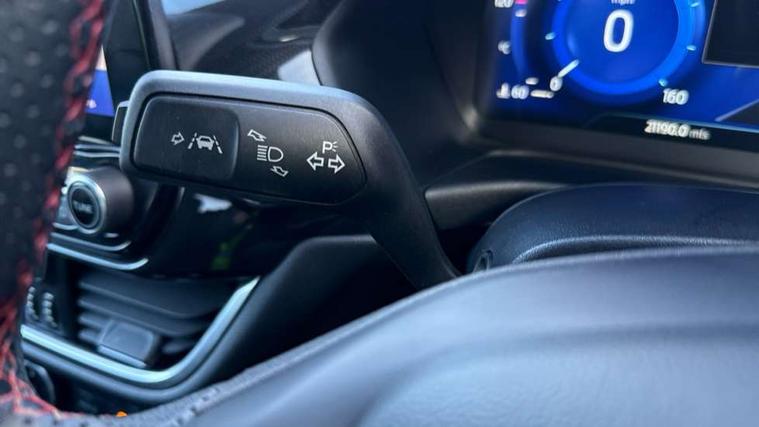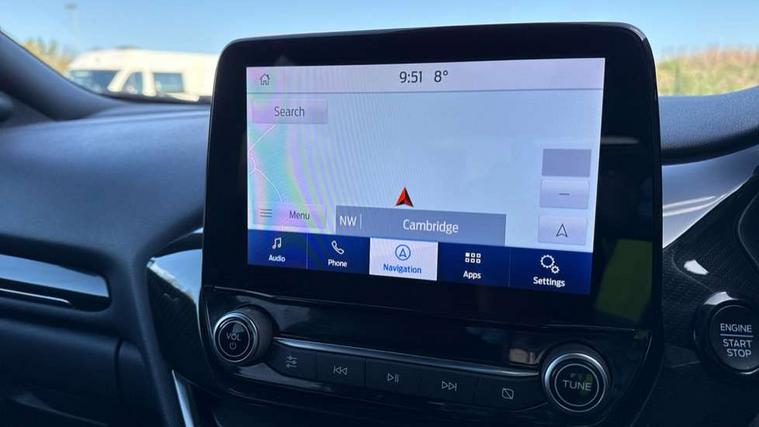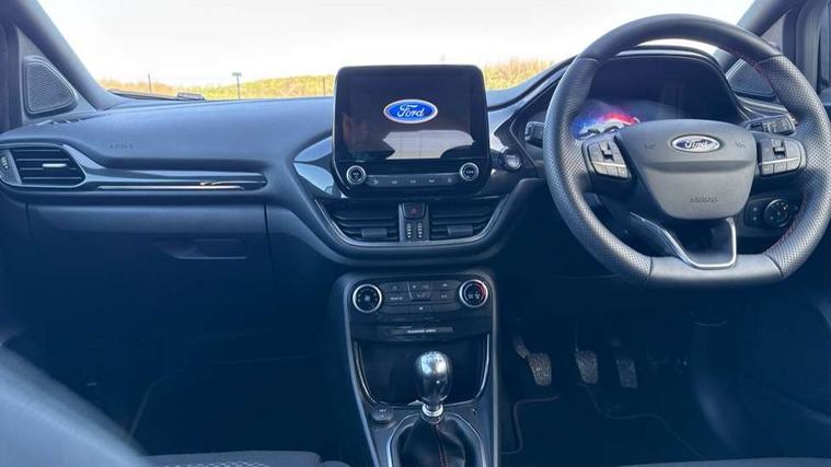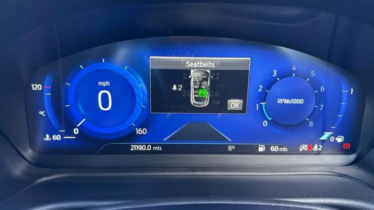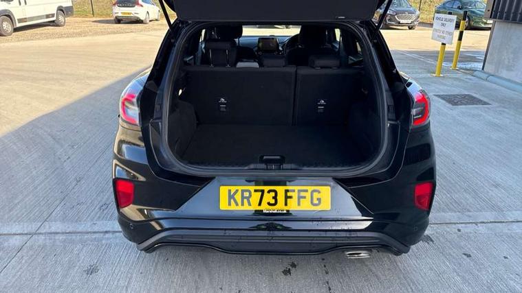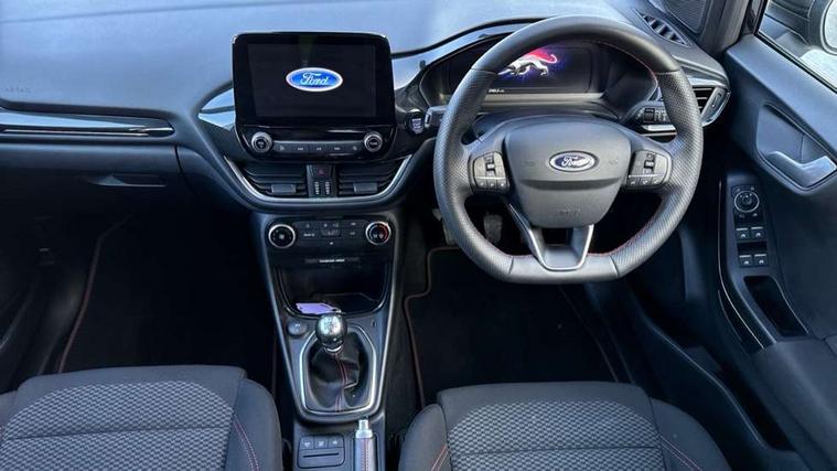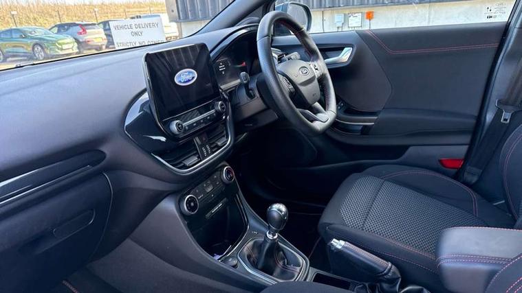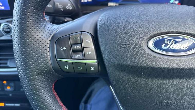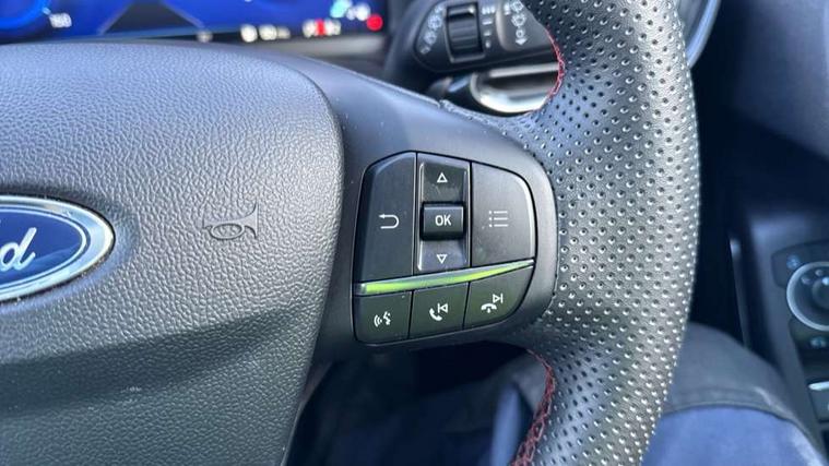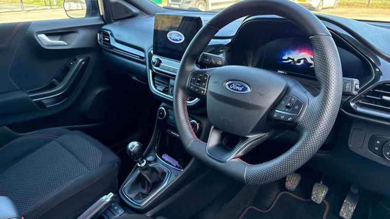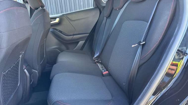 Driver impairment monitor, Emergency call service, Ford easy fuel, Full digital 12.3" instrument cluster, Lane keeping aid with lane departure warning, Power assist steering, Power start button, Rear parking sensor, Selectable drive modes(Normal, Eco, Sport, Slippery and Trail), Speed sign recognition, Sport suspension, Automatic headlights with auto high beam, Automatic rain sensing wipers, LED rear lamps, Power foldable heated door mirrors with puddle lamps, Projector headlamps with LED day time running lights and front fog lamps, Quickclear heated windscreen, Rear side wing doors, Rear wiper, ST-Line body styling kit with unique grille and large body colour rear spoiler, Third brake light, 3 seat bench in 2nd row, Centre console with armrest and stowage, Ford megabox extended bootspace, Front and rear head restraints, Front floor mats, Manual 2 way passenger seat adjustment, Manual 4 way driver seat adjust with lumbar adjustment, Single front passenger seat, ST- Line cloth trim with red stitching, ST-Line flat bottomed sensico leather steering wheel with leather handbrake and aluminium gear knob, Ford SYNC 3 navigation pack - Puma, 3 rear seatbelts, Child safety lock, Electronic stability control (ESC) and hill start assist, Pedestrian/cyclist detection & post-collision braking, Pre collision assist system, Tyre pressure monitoring system (TPMS), Thatcham alarm,