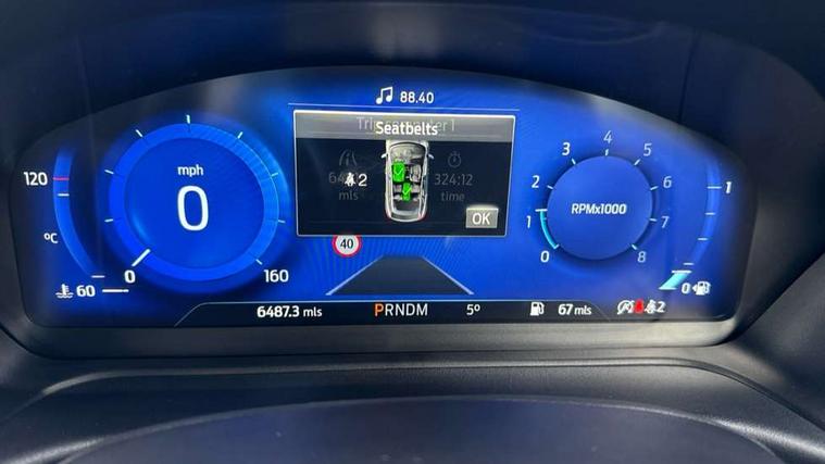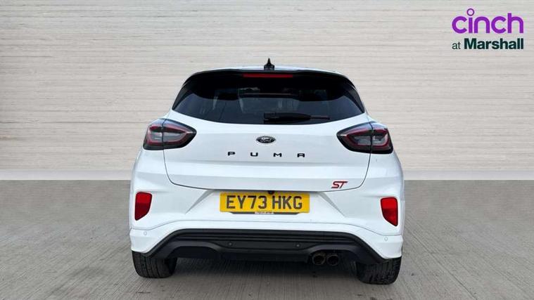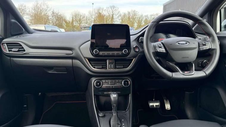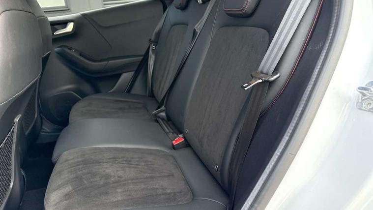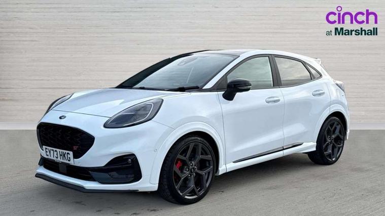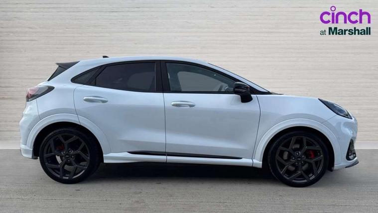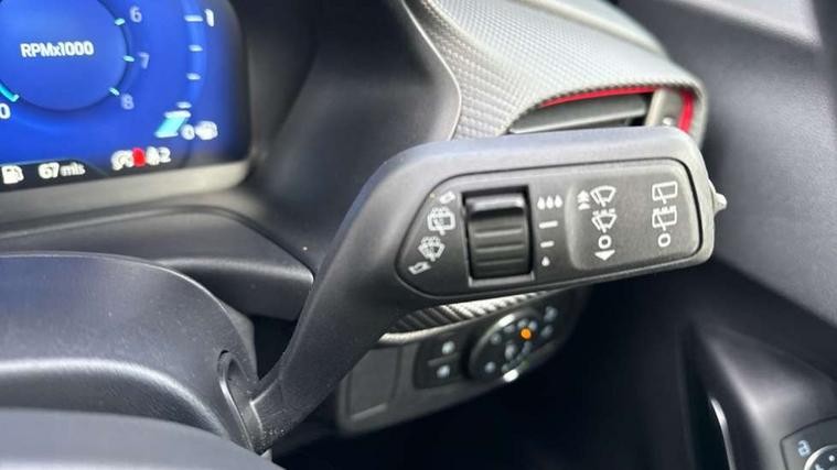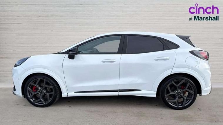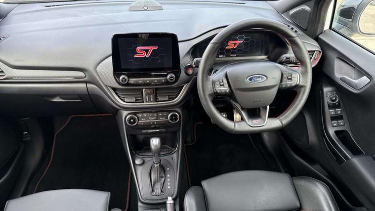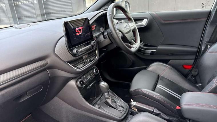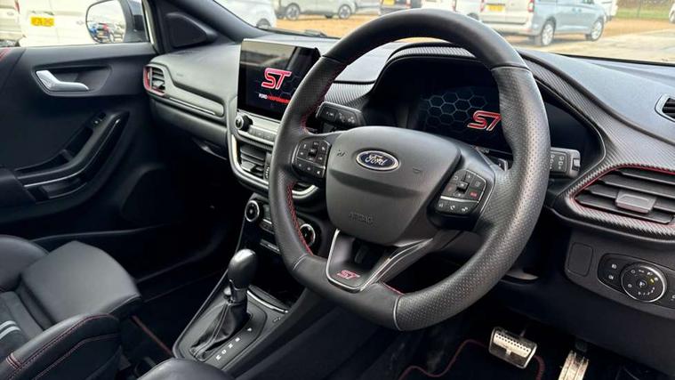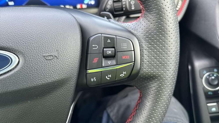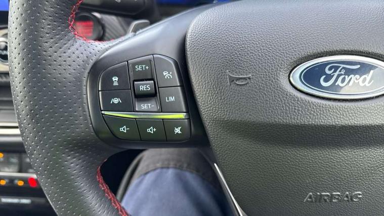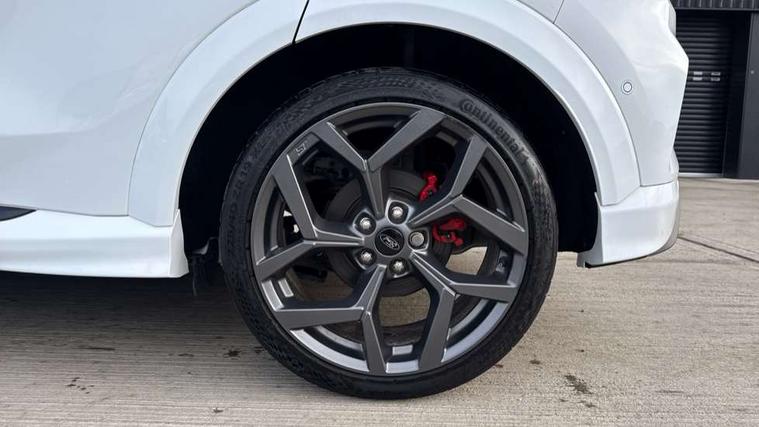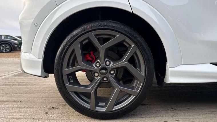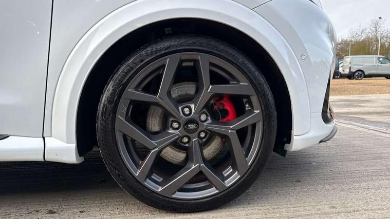 Cruise control with Intelligent speed assist, Driver impairment monitor, Emergency call service, Ford easy fuel, Front and rear parking sensors, Full digital 12.3" instrument cluster, Lane keeping aid with lane departure warning, Power assist steering, Selectable drive modes (normal, sport, eco, track), Speed sign recognition, Engine sound enhancer, ST suspension, Automatic headlights with auto high beam, Automatic rain sensing wipers, Dual chrome exhaust, Fixed LED signature headlamps, Front fog lamps, LED daytime running lights, LED rear lamps, Power foldable heated door mirrors with puddle lamps and puma logo protection, Privacy glass to side rear windows and tailgate glass, Quickclear heated windscreen, Rear side wing doors, Rear wiper, ST scuff plates, Third brake light, Unique ST body styling kit including contrast black roof, large rear spoiler and wing mirrors, plus Ford Performance embossed splitter, 3 seat bench in 2nd row, Alloy sports pedals, Centre console with armrest and stowage, Ford megabox extended bootspace, Ford Performance sensico partial premium leather upholstery with metal grey stitching, Front and rear floor mats, Front and rear head restraints, Manual 6 way driver seat adjust with lumbar adjustment, Manual 6 way passenger seat with lumbar seat adjustment, Single front passenger seat, ST flat bottomed steering wheel with metal grey stitching, ST logo projection, Unique ST gear shift knob, Wireless charging pad with electronic air temperature control (EATC), B&O Premium Audio system + Ford SYNC 3 navigation pack - Puma, Winter pack - Puma, 3 rear seatbelts, Child safety lock, Electronic stability control (ESC) and hill start assist, Pedestrian/cyclist detection & post-collision braking, Pre collision assist system, Red brake calipers, Tyre pressure monitoring system (TPMS), Keyless entry and power start button, Thatcham alarm, Carbon look interior deco spears, 19" 5 Spoke magnetite dark finished alloy wheel, Tyre inflation kit,