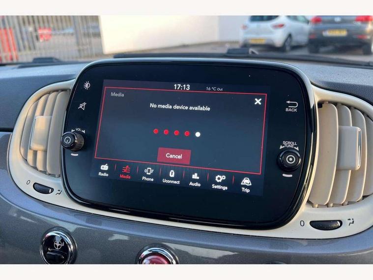 Apple car play/Android Auto, Cruise control, E-call, External temperature gauge, Power assist steering, Rear parking sensor, Speed limiter, Stop/start system, Trip computer, 4 speakers, 7" HD Touchscreen Radio, Bluetooth, USB and DAB, Rear speakers, 3rd brake light, Auto headlights, Body colour bumpers, Body coloured electrically adjustable door mirrors, Chrome plated exterior door handles, Dolcevita badge on fender, Dusk and rain sensors, Electric front windows, Fixed glass sunroof with sunblind, Front fog lights, Halogen headlamps, Heat insulated glass, Heated rear windows with wash wipe, LED daytime running lights, Rear side wing doors, Rear wiper, 1 passenger grab handle, 2 seat bench in second row, 50/50 split folding rear seats with height adjustable rear headrests, Air conditioning, Auxilliary 12V power socket, Chrome kit, Front headrests, Height adjustable drivers seat, Height adjustable steering wheel, Isofix child seat preparation, Single front passenger seat, Techno leather steering wheel with audio controls, 7 airbags - Driver, passenger, side, window and drivers knee airbags, ABS/EBD, ESC + ASR/MSR + HBA + Hill holder, Manual passenger airbag deactivation function, Traction control, Tyre pressure monitoring system, Automatic door locking, Immobiliser, Locking fuel filler cap, Remote central locking, 15" Alloy wheels,
