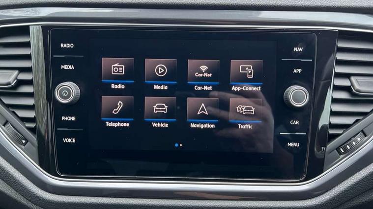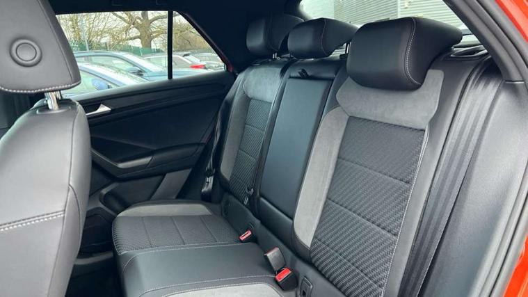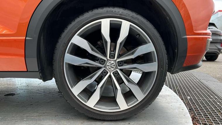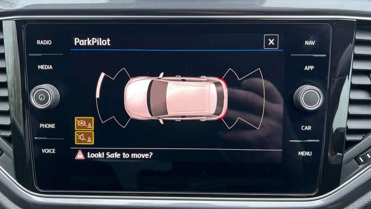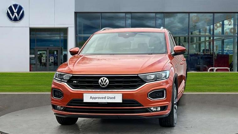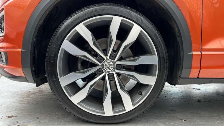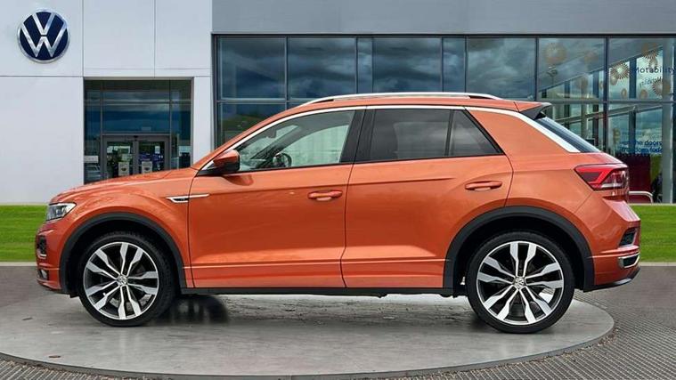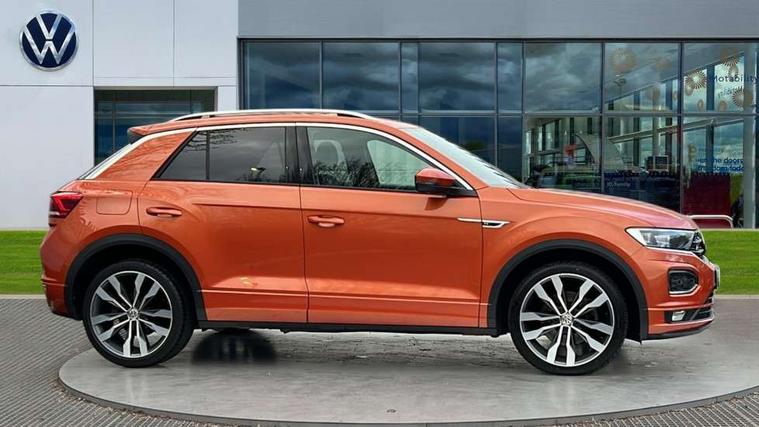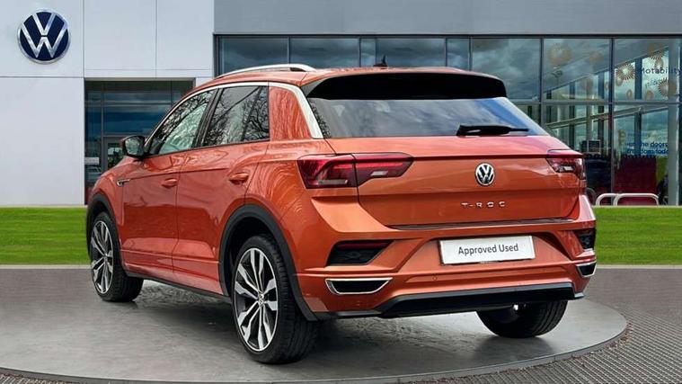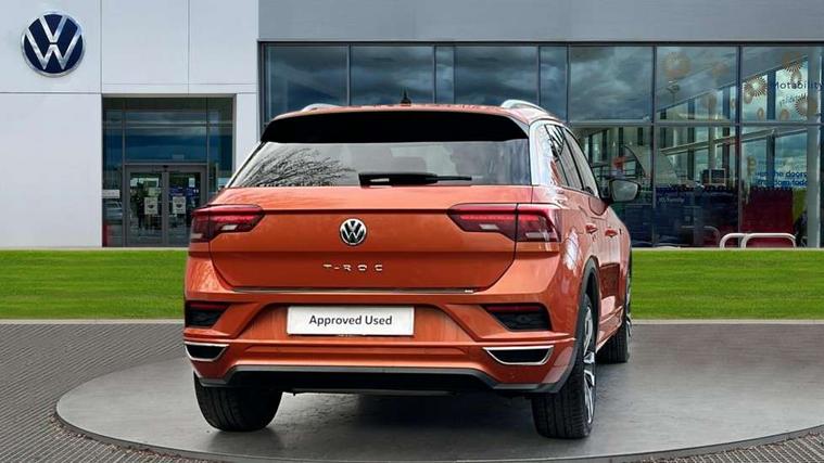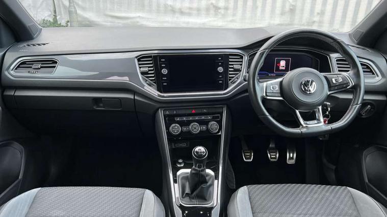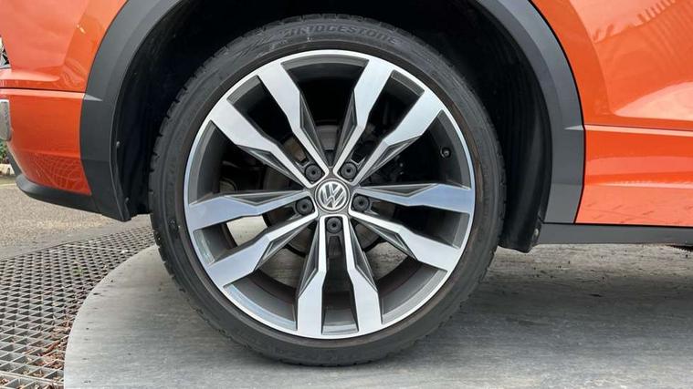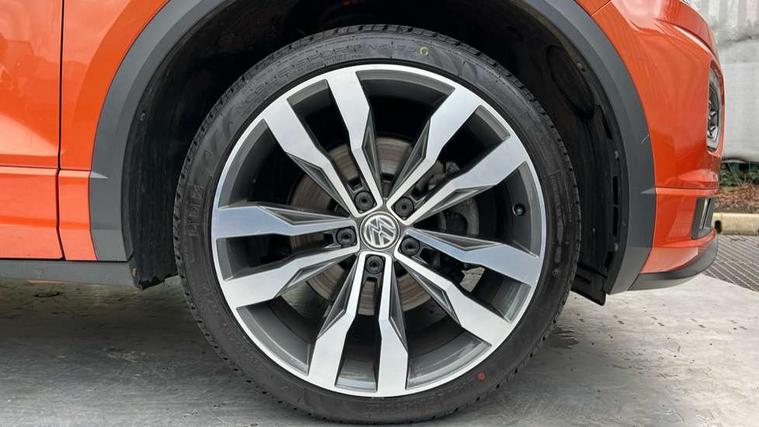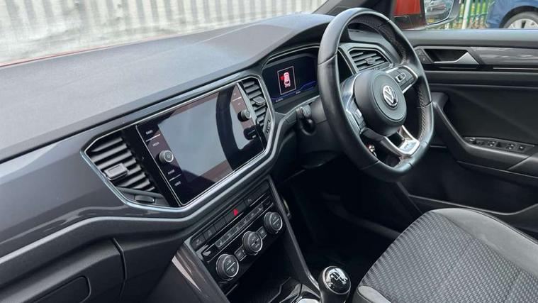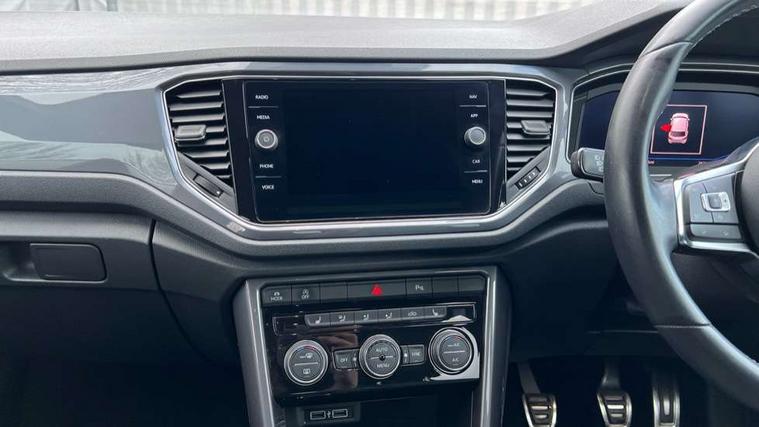 App-Connect, 'Lights On' Reminder warning buzzer, 2 USB connection charging sockets, Active Info Display, 10.3" high resolution TFT dash display screen with customised information, Adaptive cruise control with front assist, radar sensor controlled distance monitoring, city emergency braking, Automatic start/stop system, Bluetooth telephone and audio connection for compatible devices, Car information display, Car-Net Security and Service, Discover navigation, 8" touch screen navigation/infotainment system with Car-Net, European map, CD/radio, 2D/3D map and speed limiter, Driver alert system with audible and visual fatigue detection system, Driver tips and journey analysis, Driving profile selection - Eco, normal, sport or individual modes with Individual mode allows for steering, drive and air conditioning settings, Dusk sensor, Lane assist, Multifunction computer with visual gear change recommendation for fuel consumption, Service interval indicator, Think blue trainer driver tips and journey analysis, Voice activation, Warning sound and light for doors and tailgate open, Warning sound and light for front seatbelts unfastened, Battery regeneration during braking, DAB Digital radio, Dynamic navigation based on TMC+, Multi device interface (MDI) with USB connection, Music playback - MP3, WMA and AAC files, Premium USB cable in choice of either Apple or Android smartphone compatibility, SD card slot, Simultaneous pairing of 2 compatible mobile devices, SMS functionality - read, compose and send SMS messages using touch-screen display, Three route options - Fast, Short, Eco, Title and cover art display, Auto dimming interior rear view mirror, Automatic hazard lights activation under emergency braking, Black grained lower door protectors, Body colour door handles, Body colour rear roof spoiler, Chrome effect left and right trapezoid exhaust tailpipe fascia surround, Chrome trim on upper and lower radiator grille, Electrically foldable, adjustable and heated door mirrors with puddle lights and reverse activated kerb-view adjustment on passenger's door mirror, Front and rear electric windows, Front fog lights with static cornering function, Front windscreen wiper with intermittent wipe and 4 position delay, Fully galvanised body, Heated rear window, High level 3rd brake light, LED darkened rear light clusters, LED dipped and main beam headlights with automatic range adjustment including signature LED daytime running lights, LED rear number plate lights, Manual coming/automatic leaving home lighting function, Rain sensor, Rear tinted glass from B-pillar backwards approx 65% tinted, Rear wash/wipe with intermittent wipe setting, 12V socket in centre console storage area, 2 Front and rear reading lights incorporating LED technology, 3 rear head restraints, 4 load lashing points in luggage compartment, Aluminium pedals, Ambient lighting in front footwell and light strips below trim in front doors, Black roof lining and sun visors, Branded points of interest, Carbon flag cloth upholstery, Climate control - 2 zone electronic air conditioning with automatic air recirculation and allergy filter, Drawer under drivers seat, Front and rear carpet mats with contrast stitching, Front centre armrest with storage compartment, longitudinal and height adjustable and two rear air vents, Front cupholders x 2, Front footwell illumination, Front seat back storage pockets, Front sports seats with R-Line logo on seat backrest, Glovebox, Height adjustable front seats, Height/reach adjust steering wheel, Illuminated vanity mirrors, Instrument lighting, white adjustable panel illumination, Interior light delay, Isofix easy fit child seat preparation for 2 outer rear seats, Load through provision with single cup holder when folded down, Luggage compartment cover, removable, Luggage compartment lighting, R Line badge, Split folding rear seat backrests with centre armrest, Storage compartment in left and right luggage area, Storage compartment in rear doors, Storage compartments in driver and front passenger doors, Three spoke multi function leather trimmed steering wheel including gear knob with contrast stitching and aluminium inserts and R Line logo, Unique R Line door sill protectors, R line styling pack - T-Roc, Winter pack - T-Roc, 3 rear three point seatbelts, ABS, Curtain airbags, Driver and front passenger safety-optimised head restraints, Drivers and front passengers airbags with passengers deactivation switch, Electronic parking brake with auto hold, Electronic stability control (ESC) includes ASR, EDL, EDTC and trailer stabilisation function, Front seat side impact airbags, Predictive pedestrian protection, Rigid safety cell with front and rear crumple zones, Three point height adjust front seatbelts + pretensioners, Tyre pressure loss indicator, Ventilated front and rear disc brakes, Volkswagen roadside assistance, Alarm with interior protection and deactivation via infotainment system, Electronic engine immobiliser, Remote central locking with 2 remote folding keys, Shadow steel decorative inserts in dash and door panel, 19" Suzuka alloy wheels with low rolling resistance tyres and anti wheel bolts, Space and weight saver spare wheel,