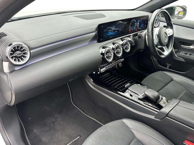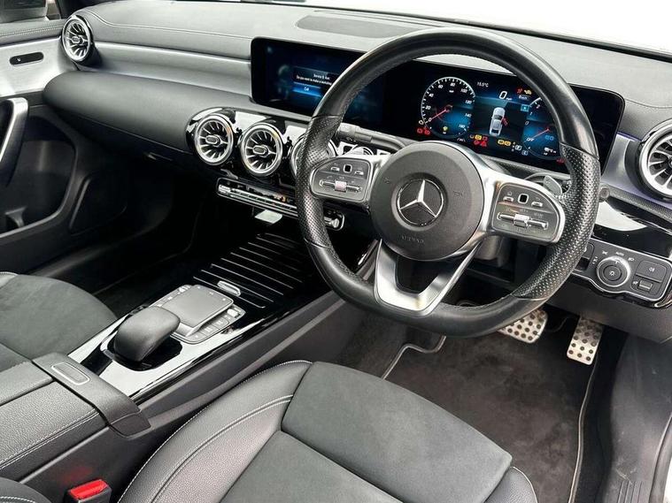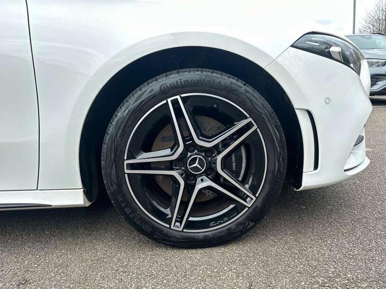 10.25" Digital instrument cluster display screen, 10.25" media display, 180 degree rear view camera with parking guidelines, Acoustic ambient protection, Active parking assist with visual and audible warning of detected obstacles, Attention assist, Brake pad wear indicator warning light, Car wash mode, Cruise control + speed limiter, Direct steering, Dual bluetooth interfaces, DYNAMIC SELECT with a choice of driving modes (ECO, Comfort, Sport and Individual), ECO start/stop function, Fluid level warning indicator for fuel, oil, coolant and washer fluid, Hard-disk navigation, Hey Mercedes Voice activation, Lamp failure indicator, Lane keeping system, Mercedes me connect including emergency call system, accident recovery, breakdown and maintenance management, Mercedes me remote services, Outside temperature gauge, Owners manual in English, Pre-installation for private car sharing, Preinstallation for Mercedes Benz link, Remote and charging services plus, Service indicator (ASSYST), Smartphone integration with Apple CarPlay and Android auto, Speed sensitive power steering, Trip computer, Ultrasonic sensors positioned in the front and rear bumpers, 7.4 kW monophase on board charger, Comfort suspension, Mode 2 charging cable with 3pin and 5m upto 2.3kW, Mode 3 charging cable 11 kW, Rear axle multi-link, 10 speakers, 2 USB ports (type C) in rear stowage compartment and one in front of center console, DAB Digital radio, MBUX multimedia system with DAB digital radio and touchpad including satellite navigation, Mercedes-Benz sound system - 100W, 4 Electric Front and Rear windows, Adaptive brake lights, AMG bodystyling - Front apron with splitter in chrome, rear apron with chrome trim and chrome visible trim elements in tailpipe, Black weather strip, Body colour bumpers, Body colour door handles, Body colour side skirt, Body coloured door mirrors, Edition badging on the front wings, Electric adjustable and heated door mirrors with integrated LED side indicators, Exclusive diamond radiator grille, Exhaust system - Twin visible tailpipes in polished stainless steel, Headlamp assist automatic headlamp activation, Heated glass rear windscreen + timer control, High gloss black beltline, LED high performance headlamps with integrated LED daytime running lights, LED tail lamp, Privacy glass, Radio aerial, Rain sensing windscreen wipers with two sensitivity settings, Rear fog lights, Third brake light featuring LED technology, Window line trim strip in high gloss black, 3 Spoke flat bottom leather multi function steering wheel with perforated leather in grip area, 40:20:40 split folding rear seats, Artico man-made leather/Microfibre Dinamica upholstery with contrast stitching in light grey, Auto Mercedes-Benz child seat recognition sensor, Black air vents with surround in silver chrome, Black roof lining, Brushed stainless steel sports pedals with rubber studs, Charging socket, Controller on centre console with chrome surround, Floor mats with black top stitching and embroidered edition logo and piping in light grey, Front centre armrest with storage compartment, Front seat backs luggage nets, Front seat cushion length adjustment, Front sports seats with adjustable head restraints, Galvanished gear shift paddles on steering wheel, Heated front seats, Height/reach adjustable steering column, Illuminated front door sills with changeable cover, Interior lighting - 64 colour Ambient lighting, Interior mirror with reading lamps in black and frameless, Manual height adjustable front seats, Pre-entry climate control, Rear armrest with 2 cupholders, Rear head restraints, Seat occupancy sensor for front passenger seat, Stowage compartment in centre console with retractable cover, Sunvisors with illuminated vanity mirrors, Touchpad on center console, Twin front cupholders, Two zone thermotronic luxury automatic climate control, Light and sight pack - A Class, Mirror package - A Class, Night pack - A Class Saloon/Hatchback, Seat comfort pack - A Class, 3 rear 3 point seatbelts, ABS with Brake Assist, Active bonnet, Active brake assist includes forward collision warning system with autonomous braking, Adaptive brake assist with hold function and hill start assist, Black seatbelts, Childproof locks manually operated for rear doors and electrically operated for rear power windows, Crash responsive emergency lighting, Driver and passenger head and side airbags, Drivers knee airbag, Dual stage driver/passenger airbags, Electronic parking brake, ESP curve dynamic assist, ESP with ASR, Front and rear seatbelt reminder, Front brake callipers with Mercedes Benz lettering, ISOFIX and top tether child seat fixing points in two outer rear seats, Perforated front brake discs, Radar based regeneration, Tyre pressure monitoring system, Warning triangle and first aid kit, Window airbags, Alarm system/interior protection/immobiliser, Keyless entry lock/unlock, Keyless Go, Remote central locking and crash sensor with emergency opening function, Urban guard vehicle protection system with immobiliser and interior protection, Matrix look light longitudinal grain aluminium trim element, 18" AMG 5 twin spoke light alloy wheels aerodynamically optimised painted in black with highsheen finish, Summer tyres, Tirefit sealant kit,