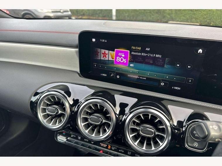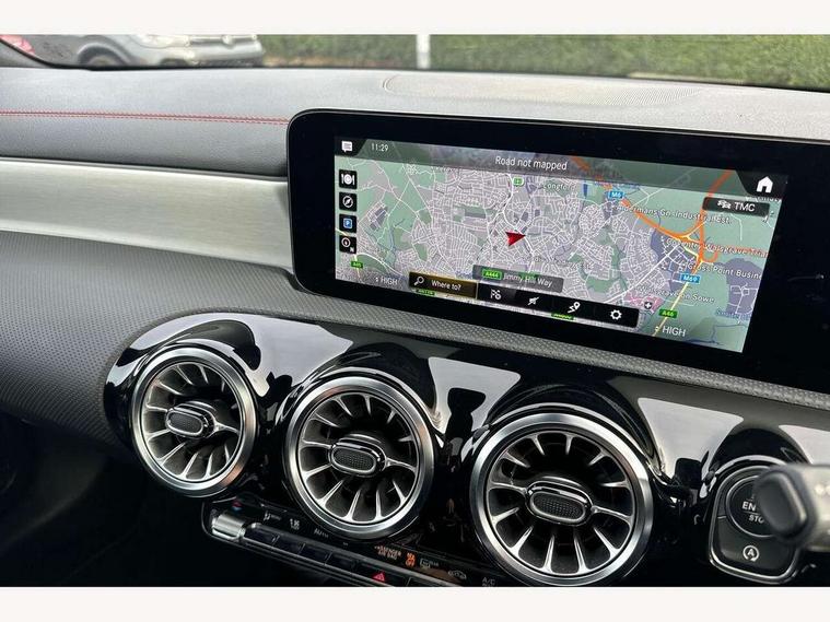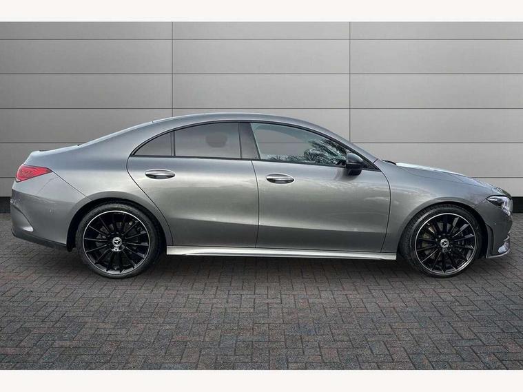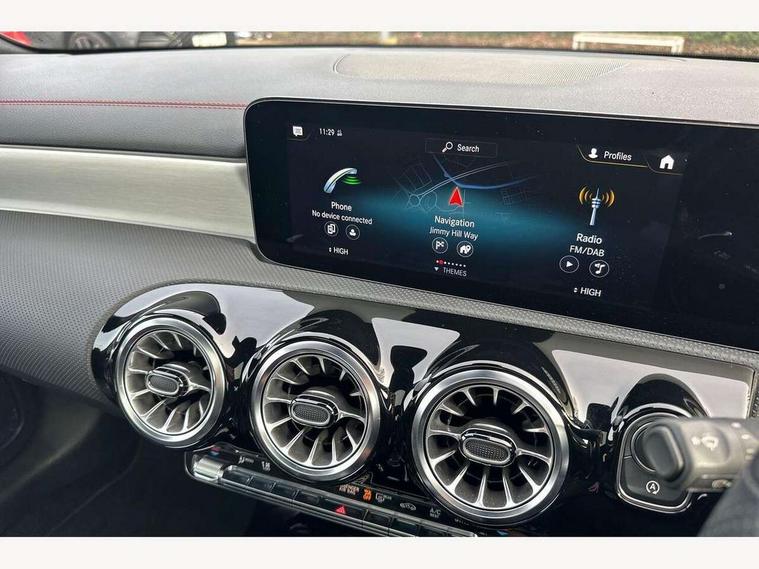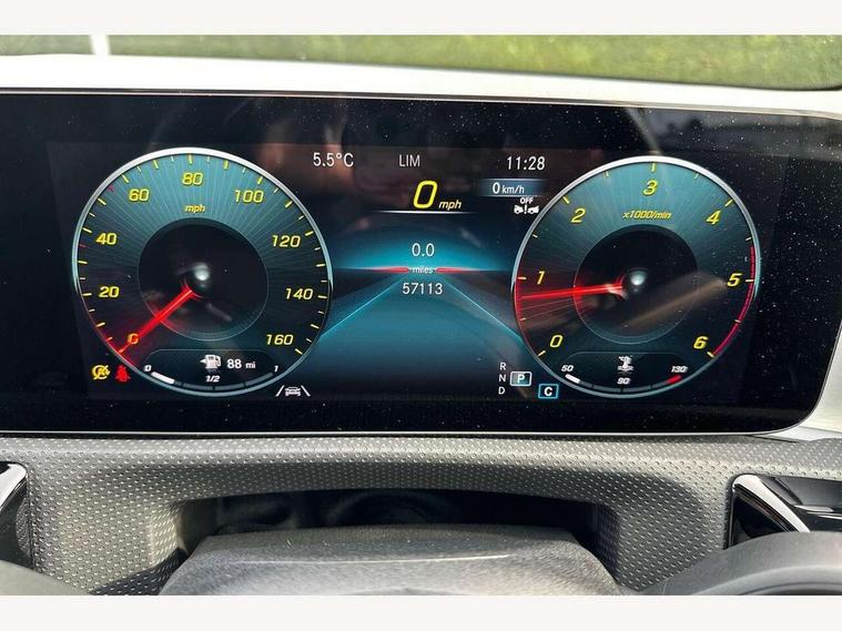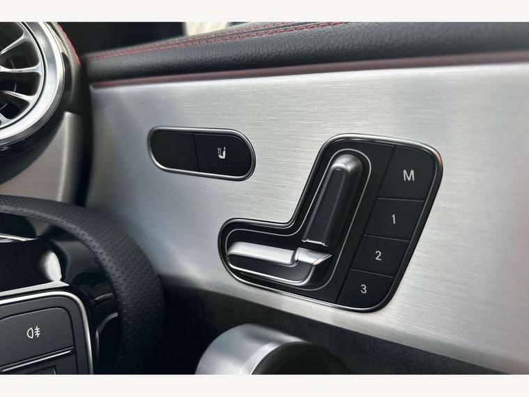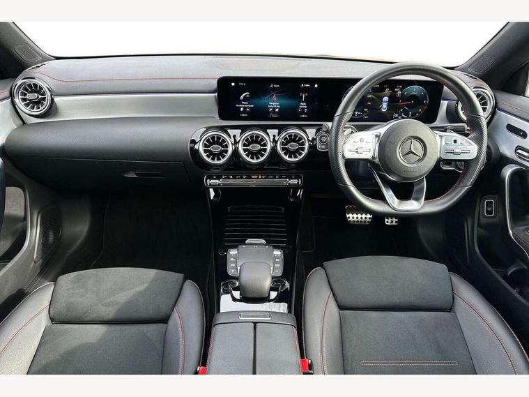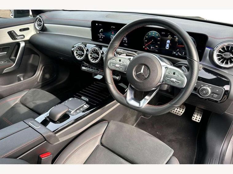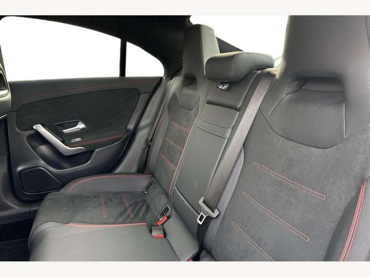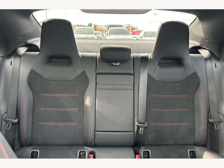 10.25 inch Instrument display with digital cockpit, 10.25 inch touchscreen central media display, Active lane keeping assist, Attention assist - Monitors steering behaviour and long journey fatigue, Blind spot assist, Bluetooth connection, Car wash mode, Cruise control with limiter, Direct steer system with speed sensitive power steering, DYNAMIC SELECT with a choice of driving modes (ECO, Comfort, Sport and Individual), ECO start/stop function, Fluid level warning indicator for fuel, oil, coolant and washer fluid, Hard-disk navigation, Hey Mercedes Voice activation, Lamp failure indicator, Mercedes me connect including emergency call system, accident recovery, breakdown and maintenance management, Mercedes me remote services, Outside temperature gauge, Owners manual and service booklet in English, Pre-installation of private car share, Preinstallation for Mercedes Benz link, Radio aerial integrated into front and rear windshields, Service indicator (ASSYST), Smartphone integration with Apple CarPlay and Android auto, Speed limit assist, Traffic sign assist, Trip computer in multifunction display with current consumption indicator, Lowered comfort suspension, Rear axle multi-link, DAB digital radio tuner, MBUX multimedia system, Mid-range sound system, USB (type C) ports (2) in stowage compartment and 1 in front of centre console, Adaptive brake lights, AMG body styling with AMG front apron and rear apron and visible exhaust tailpipe in chrome trim elements, AMG bodystyling side skirts, Body colour bumpers, Body colour door handles, Chrome beltline strips, Diamond radiator grille pins in chrome, Electric panoramic sunroof with automatic tilt and convenience closing fuinctions, rain sensor auto closing and electronic roller sunblind, Electric windows, Electrically adjustable and heated door mirrors with integrated LED indicators, Exhaust system with 2 Visible tailpipe trim elements and rear apron with trim in chrome, Headlamp assist automatic headlamp activation, Heated glass rear windscreen + timer control, High level LED third brake light, Integrated LED daytime running lights, Interior mirror with black reading lamps and frameless, LED tail lamp, Multibeam LED headlamps with adaptive highbeam assist plus, Privacy glass with dark tinting on rear side windows and rear window, Rain sensing windscreen wipers with two sensitivity settings, Rear boot, Rear fog lamp, Rear side wing doors, Variable front intermittent wipers, Window line trim strip in chrome, 3 seat bench in 2nd row, 3 spoke flattened bottom nappa leather multifunction steering wheel with perforated leather in grip area, 40:20:40 split folding rear seat backrests, Air conditioning - Two zone thermotronic luxury automatic climate control with display, Air vents with surround in silver chrome, Artico man-made leather upholstery, Automatic child seat recognition sensor, Black roof lining, Brushed stainless steel sports pedals with rubber studs, Electrically adjustable front memory seats including lumbar support, Floor mats with stitched AMG lettering, Front centre armrest with stowage, Galvanished gear shift paddles on steering wheel, Heated front seats, Illuminated front door sills with changeable cover, Illuminated glove compartment stowage, Interior lighting - 64 colour Ambient lighting, Luggage net on driver/front passenger seat backrest, Manually adjustable front seats, Manually height and reach adjustable steering column, Rear armrest with two integral cup holders for drinks, Rear head restraints, Single front passenger seat, Sport seats with fixed head restraints, Stowage compartment in centre console with retractable cover, Sunvisors with illuminated vanity mirrors, Touchpad on center console, Twin front cupholders, Two outer rear seat isofix and top tether child seat fixing points, Keyless go comfort pack - CLA, Light and sight pack - CLA, Mirror pack - CLA, Night package - CLA, Parking package - CLA, Active bonnet pedestrain safety measure which detects an impact and raises bonnet by 65mm, Active brake assist includes forward collision warning system with autonomous braking, Adaptive brake assist with hold function and hill start assist, Anti lock braking system (ABS) with brake assist, Black seat belts, Bonnet with power domes, Brake pad wear warning indicator, Childproof locks manually operated for rear doors and electrically operated for rear power windows, Crash responsive emergency lighting, Driver and front passenger head and sidebags, Driver and front passenger windowbags, Drivers knee airbag, Dual stage driver and front passenger airbags, Electric parking brake, Electronic stability programme with acceleration skid control, ESP curve dynamic assist, Exit warning, Front and rear seatbelt reminder, Front passenger seat occupancy sensor, Three point rear seat belts, Tyre pressure monitoring system, Warning triangle and first aid kit, Guard 360 degree guard vehicle protection system with immobiliser and interior protection, Remote central locking and crash sensor with emergency opening function, Light aluminium with longitudinal grain interior trim, 19" AMG multi-spoke black painted light alloy wheels with high sheen rim finish, Summer tyres, Tirefit tyre sealant kit,
