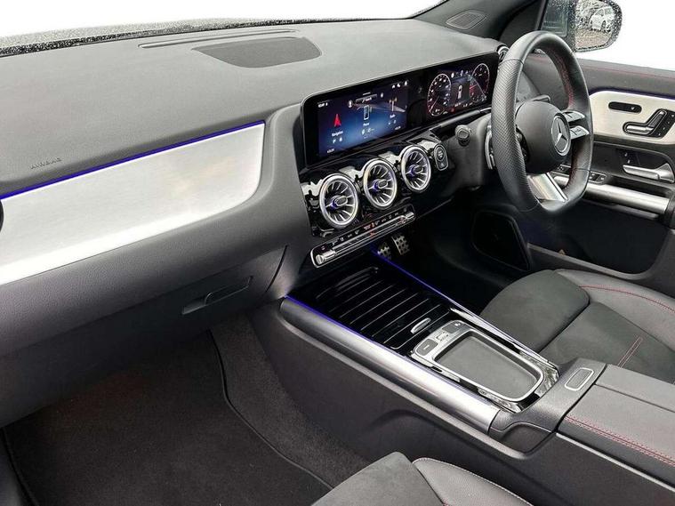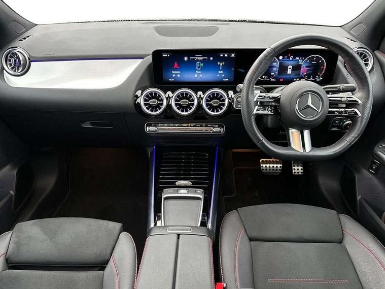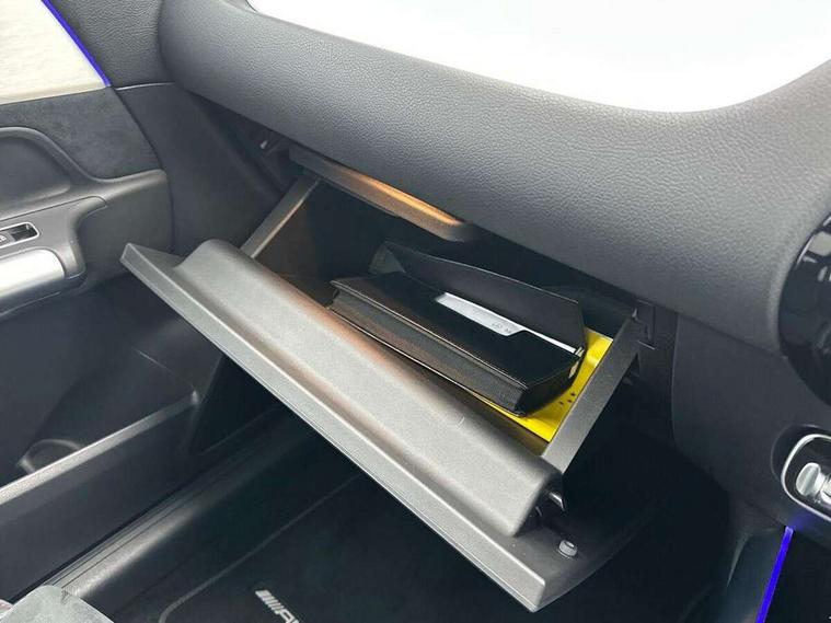 10.25 inch touchscreen central media display, 10.25" Digital instrument cluster display screen, Attention assist, Direct steering, DYNAMIC SELECT with a choice of driving modes (ECO, Comfort, Sport and Individual), Easy-pack tailgate, ECO start/stop function, Fingerprint scanner, Fluid level warning indicator for fuel, oil, coolant and washer fluid, Full color head up display, Hard-disk navigation, Hey Mercedes Voice activation, Lamp failure indicator, Lane keeping assist (LKA), Mercedes me connect including emergency call system, accident recovery, breakdown and maintenance management, Mercedes me remote services, Multi function trip computer, Outside temperature gauge, Owners manual and service booklet in English, Pre-installation of private car share, Radio aerial integrated into front and rear windshields, Service indicator (ASSYST), Smartphone integration with Apple CarPlay and Android auto, Traffic sign assist, Wireless charging, Lowered comfort suspension, Rear axle multi-link, Suspension with adaptive damping system, Bluetooth connectivity including audio streaming, DAB Digital radio, MBUX multimedia system, Mercedes-Benz (225w) sound system with 10 speakers, Adaptive brake lights, Adaptive full LED rear lights with automatic adjustment of light intensity to the surroundings, Aluminium roof rails, AMG front apron with front splitter in the colour of the vehicle with chrome trim element, AMG rear apron with visible tailpipe trim and chrome trim element, AMG specific/dual flow exhaust pipes in chrome (non-functional), Automatic headlamp activation, Beltline trim and window line trim strip in high gloss black, Black grained side sill trim with chrome inlay, Body coloured door handles with chrome insert for keyless entry, Car wash function, Cornering light function with activated high beam, Dark privacy glass from B-pillar backwards, Electric front windows, Electric rear windows, Electrically adjustable and heated door mirrors with integrated LED indicators, Exhaust system with 2 Visible tailpipe trim elements and rear apron with trim in chrome, Heat insulating dark tinted glass, Heated glass rear windscreen + timer control, Illuminated door sill panels with Mercedes-Benz lettering, Interior mirror with black reading lamps and frameless, LED daytime running lights, LED third brake light, Multibeam LED headlamps with adaptive highbeam assist plus, Panoramic sunroof, Rain sensor windscreen wipers, Rear fog lights, Rear side wing doors, Rear wiper, Wheel arch liners in the colour of the vehicle, 3 seat bench in 2nd row, 3 spoke flat bottom multifunction nappa leather steering wheel, 40:20:40 split folding rear seat backrests, Adjustable head restraints, Air conditioning - air vents with silver chrome surround, Air conditioning - Two zone thermotronic luxury automatic climate control with display, AMG floor mats, Auto Mercedes-Benz child seat recognition sensor, Black roof lining, Courtesy light in boot, Electrically adjustable front memory seats with four way lumbar support, Fluorescent jacket, Front centre armrest with stowage, Galvanished gear shift paddles on steering wheel in silver chrome, Heated front seats, Illuminated glovebox, Interior lighting - 64 colour Ambient lighting, Luggage net on driver/front passenger seat backrest, Manually height and reach adjustable steering column, Single front passenger seat, Sports pedals in brushed stainless steel with black rubber studs, Sports seats, Sports steering wheel, Stowage compartment in centre console, Stowage compartment with retractable cover, Sunvisors with illuminated vanity mirrors, Twin front cup holders, Two outer rear seat isofix and top tether child seat fixing points, Comfort seat pack - GLA Class, Driving assistance package - GLA, Interior lighting with light and sight pack - GLA, Keyless go comfort package - GLA, Mirror pack - GLA Class, Night package - GLA, Off road engineering pack - GLA, Parking package with 360-degree camera - GLA, USB package plus - GLA, 3 rear 3 point seatbelts, ABS with Brake Assist, Active bonnet pedestrain safety measure which detects an impact and raises bonnet by 65mm, Active brake assist includes forward collision warning system with autonomous braking, Adaptive brake assist with hold function and hill start assist, Black seatbelts, Bonnet with power domes, Brake pad wear warning indicator, Braking system with larger brake discs on the front axle, Childproof locks manually operated for rear doors and electrically operated for rear power windows, Crash responsive emergency lighting, Driver and passenger head and side airbags, Drivers knee airbag, Dual stage driver/passenger airbags, Electronic parking brake, ESP curve dynamic assist, ESP with ASR, Exit warning, Front and rear seatbelt reminder, Front brake callipers with Mercedes Benz logo lettering on front, Front brake discs internally ventilated and perforated, Front passenger seat occupancy sensor, Sports braking system, Tyre pressure monitoring system, Warning triangle and first aid kit, Window airbags, Alarm system with immobiliser and interior protection -Thatcham category 1, Guard 360 degree vehicle protection, Keyless Go starting function, Remote central locking and crash sensor with emergency opening function, Light longitudinal grain aluminium trim, 20" AMG multi spoke light alloy wheels aerodynamically optimised and painted in black with a high-sheen rim flangle RVT, Summer tyres, Tirefit tyre sealant kit,
