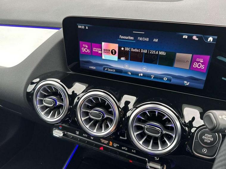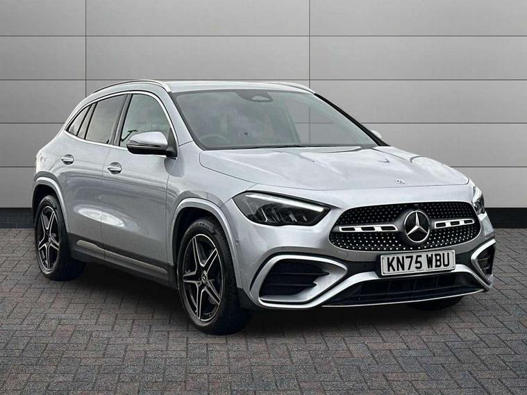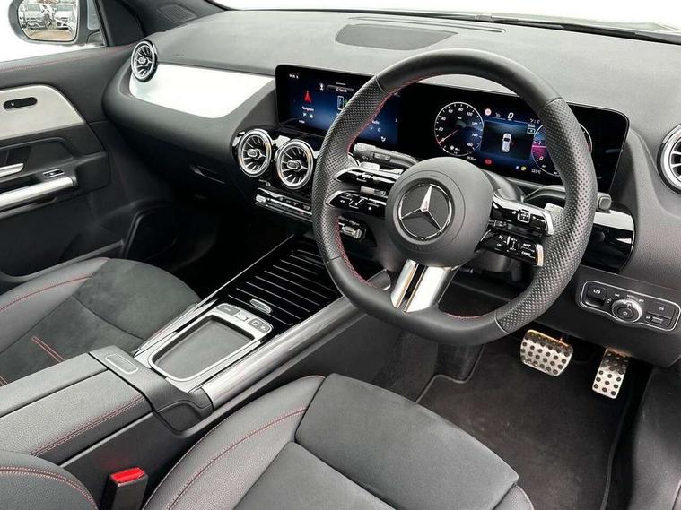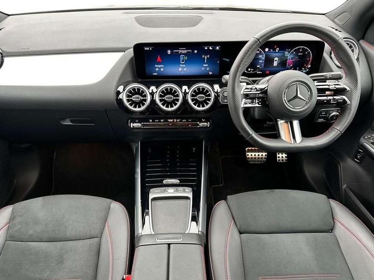 10.25 inch touchscreen central media display, 10.25" Digital instrument cluster display screen, Attention assist, Blind spot assist, Direct steering, DYNAMIC SELECT with a choice of driving modes (ECO, Comfort, Sport and Individual), ECO start/stop function, Fluid level warning indicator for fuel, oil, coolant and washer fluid, Hard-disk navigation, Hey Mercedes Voice activation, Lamp failure indicator, Lane keeping assist (LKA), Mercedes me connect including emergency call system, accident recovery, breakdown and maintenance management, Mercedes me remote services, Multi function trip computer, Outside temperature gauge, Owners manual and service booklet in English, Pre-installation of private car share, Radio aerial integrated into front and rear windshields, Service indicator (ASSYST), Smartphone integration with Apple CarPlay and Android auto, Speed limit assist, Wireless charging, Lowered comfort suspension, Rear axle multi-link, Bluetooth connectivity including audio streaming, DAB Digital radio, MBUX multimedia system, Mercedes Benz sound system (100 W) with 6 speakers, Adaptive brake lights, Adaptive highbeam assist, Aluminium roof rails, AMG front apron with front splitter in the colour of the vehicle with chrome trim element, AMG rear apron with visible tailpipe trim and chrome trim element, AMG specific/dual flow exhaust pipes in chrome (non-functional), Automatic headlamp activation, Beltline trim and window line trim strip in high gloss aluminium, Black grained side sill trim with chrome inlay, Car wash function, Dark privacy glass from B-pillar backwards, Electric front windows, Electric rear windows, Electrically adjustable and heated door mirrors with integrated LED indicators, Exhaust system with 2 Visible tailpipe trim elements and rear apron with trim in chrome, Heat insulating dark tinted glass, Heated glass rear windscreen + timer control, Interior mirror with black reading lamps and frameless, LED high performance headlamps with integrated LED daytime running lights, LED tail lights, LED third brake light, Rain sensor windscreen wipers, Rear fog lights, Rear side wing doors, Rear wiper, Wheel arch liners in the colour of the vehicle, 3 seat bench in 2nd row, 3 spoke flat bottom multifunction nappa leather steering wheel, 4 way lumbar support, 40:20:40 split folding rear seat backrests, Adjustable head restraints, Air conditioning - air vents with silver chrome surround, Air conditioning - One zone THERMATIC automatic climate control with automatically controlled air distribution, AMG floor mats, Artico man-made leather/Microcut microfibre upholstery with red contrast stitching, Auto Mercedes-Benz child seat recognition sensor, Black roof lining, Courtesy light in boot, Fluorescent jacket, Front centre armrest with stowage, Galvanished gear shift paddles on steering wheel in silver chrome, Heated front seats, Illuminated glovebox, Interior lighting - 64 colour Ambient lighting, Luggage net on driver/front passenger seat backrest, Manually height and reach adjustable steering column, Single front passenger seat, Sports pedals in brushed stainless steel with black rubber studs, Sports seats, Sports steering wheel, Stowage compartment in centre console, Stowage compartment with retractable cover, Sunvisors with illuminated vanity mirrors, Twin front cup holders, Two outer rear seat isofix and top tether child seat fixing points, Comfort seat pack - GLA Class, Interior lighting with light and sight pack - GLA, Keyless go comfort package - GLA, Mirror pack - GLA Class, Parking package with reversing camera - GLA, USB package plus - GLA, Winter package - GLA, 3 rear 3 point seatbelts, ABS with Brake Assist, Active bonnet pedestrain safety measure which detects an impact and raises bonnet by 65mm, Active brake assist includes forward collision warning system with autonomous braking, Adaptive brake assist with hold function and hill start assist, Black seatbelts, Bonnet with power domes, Brake pad wear warning indicator, Childproof locks manually operated for rear doors and electrically operated for rear power windows, Crash responsive emergency lighting, Driver and passenger head and side airbags, Drivers knee airbag, Dual stage driver/passenger airbags, Electronic parking brake, ESP curve dynamic assist, ESP with ASR, Front and rear seatbelt reminder, Front brake callipers with Mercedes Benz logo lettering on front, Front brake discs internally ventilated and perforated, Front passenger seat occupancy sensor, Sports braking system, Tyre pressure monitoring system, Warning triangle and first aid kit, Window airbags, Alarm system with immobiliser and interior protection -Thatcham category 1, Guard 360 degree vehicle protection, Remote central locking and crash sensor with emergency opening function, Light longitudinal grain aluminium trim, 19" AMG 5 twin spoke light alloy wheels aerodynamically optimised, painted in high-gloss black and with a high-sheen finish RTG, Summer tyres, Tirefit tyre sealant kit,