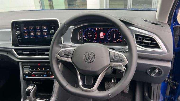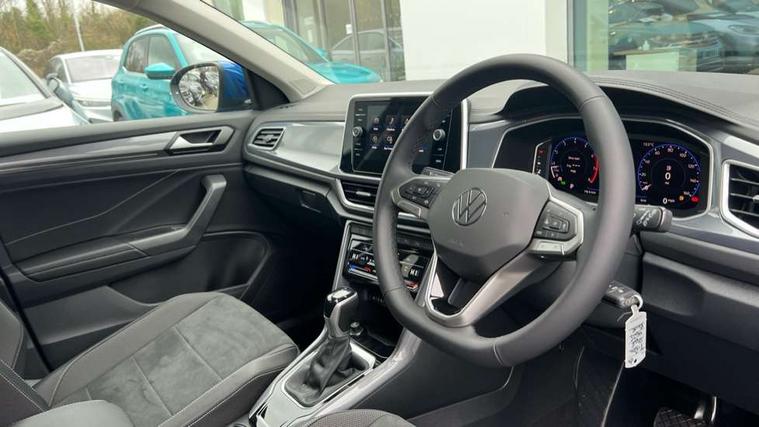 10.25" Digital cockpit pro, Advanced driver attention and drowsiness monitor, Emergency call service, Lane keeping system Lane Assist, Mobile phone interface, Modified key software - reduce switch off time for key status change to Long no motion, Online services, Park assist including front and rear parking sensors, Power assisted speed sensitive steering, Service interval indicator, Tailgate/trunk lid release from outside, Think blue trainer driver tips and journey analysis, Warning sound and light for front seatbelts unfastened, Wireless app connect, Battery regeneration during braking, Start/stop function with battery regeneration, DAB Digital radio, Diversity antenna for FM reception, Front and rear 6 speakers, Music playback - MP3, WMA and AAC files, Premium USB cable in choice of either Apple or Android smartphone compatibility, SD card slot, Simultaneous pairing of 2 compatible mobile devices, Title and cover art display, We Connect and We Connect Plus functionality, Auto dimming interior rear view mirror, Automatic hazard lights activation under emergency braking, Automatic headlight control with LED separate daytime running lights with coming/leaving home function, Body colour sports bumpers with silver metallic underbody fascia, Body coloured exterior mirror housings and door handles, Dynamic headlight range control with self adjusting whilst driving, Electrically adjustable and heated door mirrors, Extended roof spoiler, Exterior mirrors aspherical on driver side, convex on front passenger side, External USB type C socket and charging sockets, Front windscreen wiper with intermittent wipe and 4 position delay, Heated rear window, LED 3rd brake light, LED rear combination lamps, LED rear number plate lights, Light mode for poor weather, rain, fog or snow, Power windows with comfort operation and circuit breaker, Privacy glass for rear side windows and rear window, Rain sensor, Rear exhaust tailpipe, Rear fog light on one side and reversing lights on both sides, Rear side wing doors, Rear wash/wipe with intermittent wipe setting, Remote electrically foldable door mirrors, puddle lights and reverse activated passenger's door mirror, 12V power socket in centre console, 3 rear head restraints, 3 seat bench in 2nd row, 4 load lashing points in luggage compartment, Air care climatronic air conditoning system with active combination filter and 2-zone temperature control, Chrome plated radiator grille inserts, air vent surrounds and light switch surrounds, Door and side trim panel with leatherette insert, Drawer under drivers seat, Front + rear carpet mats, Front centre armrest, Front comfort sports seats, Front cupholders x 2, Front footwell illumination, Front seat back storage pockets, Glove compartment door with light, Instrument lighting, white adjustable panel illumination, Interior ambient lighting and surround lighting, Interior light delay, Isofix child seat preparation, Leather gearshift handle, LED interior light with switch off delay/dimmer and 2 front/rear LED reading lights, Load-through provision with cup holder when folded down ('Unsplit rear seat bench, split folding backrest, with centre armrest), Luggage compartment lighting, Non-folding front passenger seat backrest, Single front passenger seat, Storage compartment in left and right luggage area, Storage compartment in rear doors, Storage compartments in driver and front passenger doors, Sunvisors with illuminated vanity mirrors, Variable boot floor, height adjustable and removable, Driver assistance pack without proactive passenger protection - T-Roc, 3 point height adj front seatbelts + pretensioners, 3 point seatbelts in outer rear with ECE label, ABS, Child locks on rear doors, City emergency braking and pedestrian monitoring, Driver and front passenger airbag with front passenger airbag deactivation, Driver and front passenger safety-optimised head restraints, Drivers seatbelt reminder, Electronic parking brake, Electronic Stability Control (ESC) inc EDL (Electronic Differential Lock) and ASR (Traction Control), Front and rear passengers curtain airbag system including front side airbags, Predictive pedestrian protection, Rear disc brakes, Two tone horn, Tyre pressure loss indicator, Volkswagen roadside assistance, Deep iron grey decorative inserts in dashboard, centre console and front door trim panels, Trims for alloy wheels,