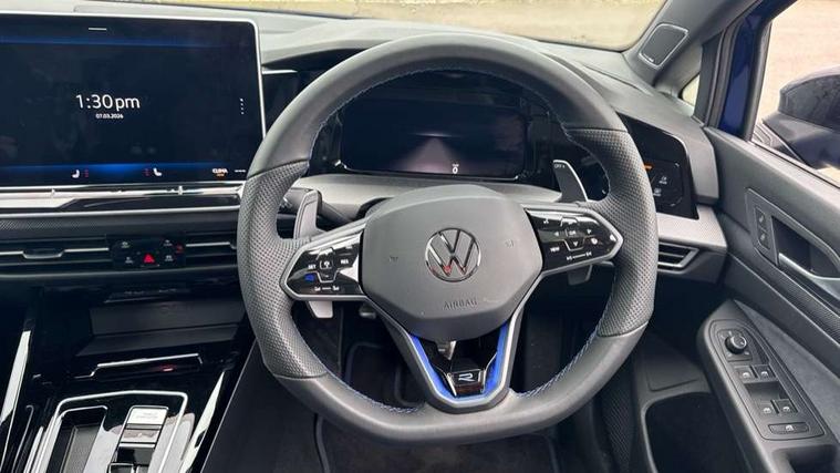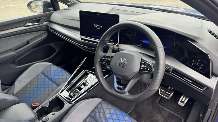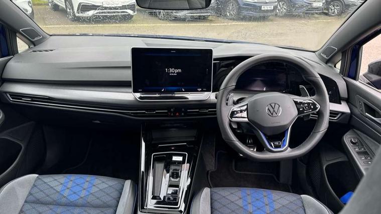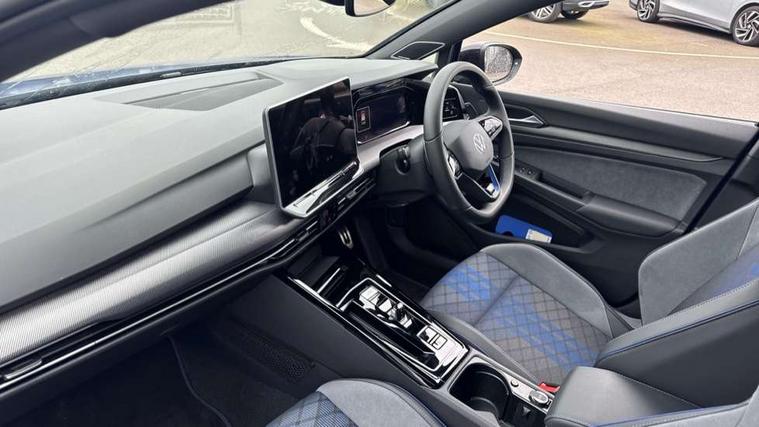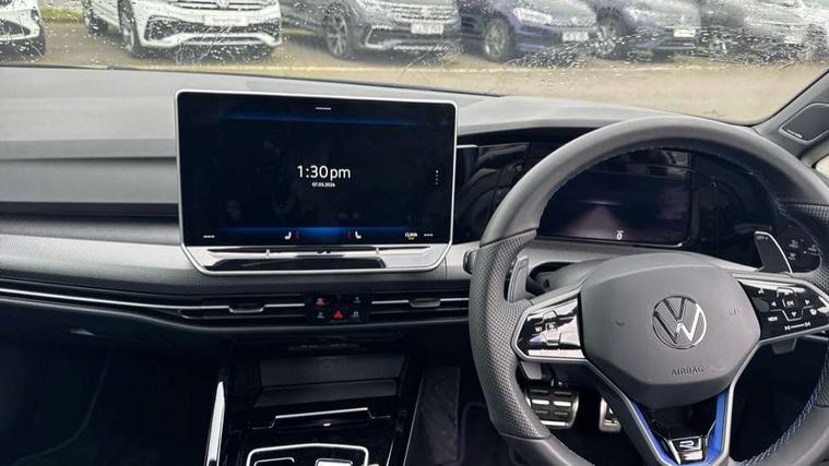 Activated carbon canister, Adaptive cruise control (ACC), Advanced driver attention and drowsiness monitor, Dynamic road sign display, E-Sim card for online connectivity, eCall emergency call system, Electronic maximum speed limit increased to 270 km/h, includes driving Modes 'drift' and 'special', larger roof spolier and GPS laptimer + G-Meter, Multi-color Digital cockpit pro, selection of different info profile possible, Multifunction front facing camera for distance control, Navigation system, Oncoming vehicle braking when turning including swerve support, Side assist blind spot lane change system, rear traffic alert and exit warning system, Speed limiter, Speedo, rev counter, electronic odometer, trip, service interval display, exterior temperature and fuel gauge, Traffic jam assist, Voice enhancer and voice control, Warning signal and warning light for front and rear seatbelts not fastened, We connect plus preparation, We connect preparation, Wireless app connect, All wheel drive - 4Motion, Petrol Particulate Filter, Start-stop system with battery regeneration (recuperation - energy recovery during braking), XDS electronic differential lock for improved traction and handling, 2 USB C ports in front, 2 USB charging sockets on the centre console in the rear charging capacity upto 45W, Digital radio reception (DAB), Diversity antenna for FM reception, Gaming platform via car app, Infotainment system with 12.9" display, Mobile phone interface with inductive charging feature, 3rd brake light, Auto dimming rear view mirror, Automatic headlamp activation with Coming home and Leaving home feature, Black badge on B-pillar, Black mirror caps, Black strips on radiator grille and headlights, Body colour door handles, Darkened headlights, Darkened R Logos and VW logos in front, rear and on fender, Exterior mirrors convex on the left and aspherical on the right, Front and rear electric windows, Front fog lamps and cornering light, Heat insulating windshield made of laminated glass, Illuminated lighting animation with wake up/goodbye scenario, LED matrix headlights with ambient light V2, advanced high beam, dynamic range contol with cornering, LED rear lamp with indicator, poor weather, LED separate daytime running light, R name plate, Rain sensor, Rear fog light on one side and reversing lights on both sides, Rear side wing doors, Rear tinted glass 65% light absorbing from B pillar backwards, Rear windscreen washer and wiper with interval delay, Remote electrically foldable door mirrors, puddle lights and reverse activated passenger's door mirror, Welcome light with surround lighting, 12V socket in front centre console, 12V socket in luggage compartment, 3 rear head restraints, 3 seat bench in 2nd row, 30 colour ambient lighting, illuminated center console storage compartment in front, Air care climatronic 3 Zone automatic climate control with rear air conditioning control panel, Aluminium gearshift handle, Brushed stainless steel pedals, Chrome plated radiator grille inserts, air vent surrounds and light switch surrounds, Entry lights, Front + rear black carpet mats, Front centre armrest, Integrated front head restraints, ISOFIX anchors for child seats on outer rear bench seats and on front passanger seat compatible for i-Size, Luggage compartment lighting, Rear cupholder and loadthough, Single front passenger seat, Soul black instrument panel, Soul black roof lining, Split folding backrest with centre armrest and unsplit rear seat bench, Sun visors with illuminated vanity mirrors, Driver assistance pack - Golf Estate/Hatchback Auto, R styling pack - Golf, Technology park and comfort pro package - Golf Hatchback, 3 point height adj front seatbelts + pretensioners, 3 rear three point seatbelts, ABS, Autonomous emergency braking front assist with pedestrian and cyclist monitoring, Child locks on rear doors, Driver and front passenger airbag with front passenger airbag deactivation, Electronic parking brake with auto hold, ESC (Electronic Stability Control), Extended pedestrian protection measures, Front and rear black brake calipers with darkened R-logo, Hill start assist, Rear disc brakes, Two tone horn, Tyre pressure loss indicator, Volkswagen roadside assistance, Anti theft wheel bolts, Preparation for alcohol interlock, 19" Estoril alloy wheels in black with progressive steering, Sporty vehicle dynamics, Tool kit for tyre mobility set, Tyre mobility kit Includes 12V compressor and tyre sealant, Wheel hub cover with darkened R-logo,