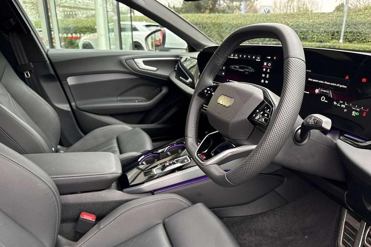 Adaptive cruise control, Advanced driver attention and fatigue montior, Audi application store, Audi assistant, Audi connect emergency call and service, Audi drive select, Audi smartphone interface, Audi virtual cockpit plus with 11.9" OLED colour display, Automatic start/stop system with coasting functionality, Camera based traffic sign recognition, Intersection assist, Lane departure warning, MMI navigation plus with high resolution 14.5" OLED touchscreen colour display, Park assist plus, Parking system plus with 360 display, Progressive steering with servotronic, Rear view camera, Swerve assist and turn assist, Traffic sign based speed limiter, Sports suspension lowered by 20mm, 2 USB-C ports in both the front and rear, Audi sound system impressive sound with 10 loudspeakers including centre speaker and subwoofer, 6-channel amplifier with a total output of 180 watts, DAB digital radio reception, Smartphone compartment with wireless charging, Aluminium window trims, Auto dimming rear view mirror, Body colour door mirrors, Door mirrors - electrically adjustable, heated, folding and auto dimming on both sides, Front and rear electric windows, Front door sill trims with aluminium inlays, illuminated with 'S' logo, High beam assist, LED headlights Plus incl. digital daytime running lights, turning light, all-weather light, motorway light, manouevring light and intersection light, LED rear lights pro incl. dynamic rear indicators and illuminated light strip with animated coming and leaving home function, LED third brake light, Privacy glass, Rear and side windows with heat insulating glass, Rear boot, Rear side wing doors, S Line badges on the front wings, S line bumpers, radiator grille and diffuser in phantom black and diffuser insert in matt anthracite, White rhombus logo projection light in exterior mirrors, Windscreen with acoustic glazing, 3 rear headrests, 3 seat rear bench, 3 spoke leather steering wheel with multi-function buttons with touch control, flattened on top and bottom, with S badging and contrast stitching, 3-zone automatic climate control, 40:20:40 split folding rear seat bench with centre armrest and cup holders, Comfort front centre armrest, Front and rear floor mats, Front seats with manual adjustment for position and 4-way electric lumbar support, Front sport seats with integrated headrest and S embossed logo, Headlining in black cloth, Heated front seats, i-Size child seat mounting on the front passenger side and outer rear seats, i-Size and top tether on the outer rear seats, Luggage compartment lid, electrically opening and closing, Manual steering column height and depth adjustment, Single front passenger seat, Stainless steel pedals and footrest, Steering wheel grips in perforated leather and shift paddles, Ambient lighting package plus - A5, 3x3 point rear seat belts, Driver airbag, Electric child safety locks, First aid kit with warning triangle and vests, Front emergency brake assist, Front passenger airbag, Front passenger airbag deactivation, Front side airbags with head airbag system and front interaction airbag, Hill hold assist, Seat belt monitoring with rear seat occupant reminder, Tyre pressure loss indicator, Anti theft alarm, Anti-theft wheel bolts, Keyless Go, Accent surfaces and control buttons in gloss black, Black dashboard with contrast stitching, Inlays in matt brushed aluminium with linear embossing, anthracite, Softwrap in leatherette with contrast stitching, Upper and lower interior elements in leatherette, Tyre repair kit,