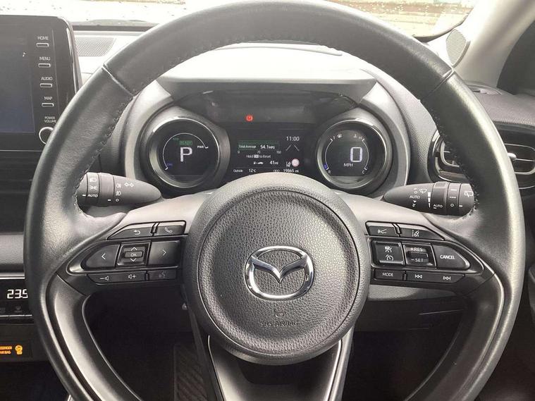 Adjustable speed limiter, Apple car play/Android Auto, Blind spot monitoring with rear cross traffic alert, Digital instrument cluster, Digital speed display meter, Drive mode selection and paddle shift, Dynamic radar cruise control, E-call with GPS, Emergency stop signalling system, Engine start/stop button, EV drive mode, Front and rear parking sensors, Hybrid system indicator, Integrated bluetooth, Lane tracing assist includes Lane centering, Lane departure alert, Steering assist and Vehicle sway warning, Multi-information display, PAS, Pre-collision system, Qi wireless charging, Reversing camera, Road sign assist - RSA, Service indicator, Trip computer, Windscreen projected head up display, i-stop, AM/FM/DAB radio with 6 speaker audio system and 8" colour screen centre display, Steering wheel mounted audio/bluetooth controls, Auto dimming rear view mirror, Automatic high beam - AHB, Body coloured front bumper, Body coloured rear bumper with gloss black lower mouldings, Coming/leaving home lighting function, Dusk sensing headlights, Front and rear electric windows, Gloss black electric adjustable/heated/folding door mirrors, Gloss black front grille with lower satin chrome trim, Gloss black rear roof spoiler, LED front fog lights, LED headlights with manual headlight levelling and LED daytime running lights, LED rear combination light with LED turn signals, LED third brake light, Privacy glass, Rain sensing front wipers with adjustable sensitivity and speed, Rear side wing doors, Rear wiper, Satin chrome lower window garnish, Shark fin antenna, 12V power outlet, 3 seat bench in 2nd row, 60/40 split rear seats, Ambient lighting, Cloth/Synthetic leather upholstery, Door panel in soft touch material, Driver, front passenger and two rear door storage, Driver, Front passenger and two rear grab handles with coathooks, Drivers seat manual slide recline and height adjustment, Drivers/front passengers with covered vanity mirrors and light, Dual zone climate control, Front centre storage with two cupholders, Front head restraints, Front passenger seat manual slide, recline and height adjust, Front passenger seatback pockets, Front sport seats, Glovebox, Interior courtesy light with LED illumination, ISOFIX child seat anchorage points attached on outer rear seats, Leather handbrake, Leather steering wheel and gear knob, Luggage compartment light, Single front passenger seat, Three height adjustable rear head restraints, Tilt/telescopic adjustable steering wheel, USB input, 2x3 point front seatbelts with pre-tensioners, 3 point seatbelts on all rear seats, Anti-lock braking system (ABS), Collision mitigation braking system, Driver and passenger central airbags, Dynamic stability control + Traction control, Electronic parking brake with auto-hold and auto-disengage function, ESP, Front and rear curtain airbags, Front driver, passenger and rear seat seatbelt warning, Front dual stage driver and single stage front passenger airbags, Front side airbags, G-Vectoring control plus, Hill start assist control (HAC), Manual child lock in rear doors, Passenger airbag cut-off switch, Rear parking support brake, Regenerative braking system, Tyre pressure monitoring system, Deadlocking system, Smart keyless entry, Thatcham approved immobiliser and alarm, 16" alloy wheels, Emergency tyre repair kit,