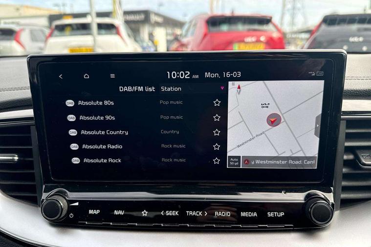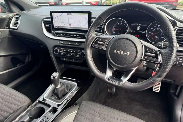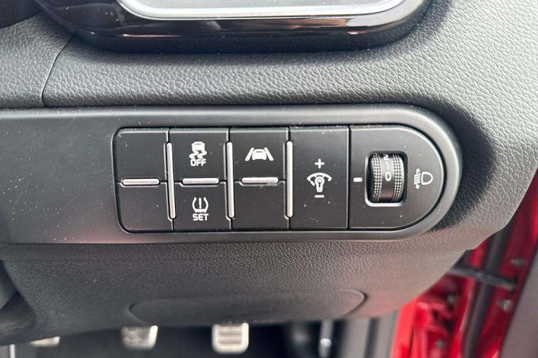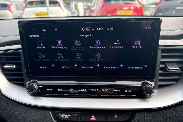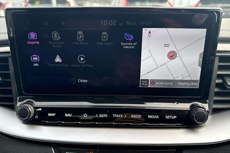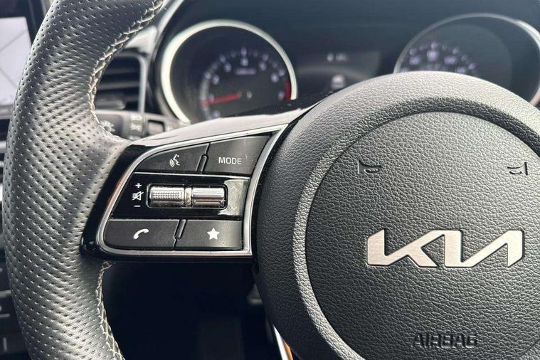 10.25" touchscreen satellite navigation, 4.2" supervision colour cluster display, Apple car play/Android Auto with voice control, Bluetooth with Voice Recognition & Music Streaming, Cruise control + speed limiter, Driver Attention Warning (DAW), Emergency call service, Emergency stop signalling system, Forward Collision-Avoidance Assist (FCA) - City/Pedestrian/Cyclist, Kia connect UVO, Lane Following Assist (LFA), Lane keep assist, Manual speed limit assist, Motor driven power steering, Rear parking sensor, Reversing camera system with dynamic guidelines (Integrated into centre fascia screen), Trip computer, Intelligent Stop and Go, 6 speaker audio system, DAB Radio with MP3, Illuminated USB ports, Steering wheel mounted controls, USB Fast Charger in Front Centre Console, USB port for connection of a media device, All-round Electric Windows with Front Auto Up & Down Function, Auto dimming rear view mirror, Automatic defog system, Automatic headlights control, Body colour bumpers, Body colour exterior door handles, Body coloured and dark chrome rear skid plate, Body coloured side sill mouldings, Dark chrome window surround, Electric adjustable/heated/folding door mirrors with LED Indicators, Heated rear window with timer, High beam assist, High gloss black and dark chrome radiator grille, High gloss black door mirrors, High Gloss Black rear spoiler, LED daytime running lights, LED front fog lights, LED Headlights, LED High-mounted Brake Light, LED honeycomb rear light, LED rear combination lights, LED rear fog light, Privacy glass (rear side windows and tailgate), Rain sensing front wipers, Rear side wing doors, Rear wash/wipe, Satin chrome dual exhaust trim, Tinted glass, Wide view drivers door mirror, Windscreen Washer Level Warning, 1 x Front 12V socket, 12V power socket in luggage compartment, 3 seat bench in 2nd row, 3 x passenger assist grips, 60/40 split folding rear seat, All-round height adjustable headrests, Aluminium pedals, Black headlining, Centre console storage box/armrest, Cloth/faux leather upholstery, Cupholders in centre console, Cupholders in rear armrest, Dash illumination dimmer switch, Door courtesy lamps, Driver & Front Passenger Sunvisors with Vanity Mirror Illumination & Ticket Holder, Driver + front passenger electric lumbar support, Driver's seat height adjuster, Dual Height Luggage Area Floor, Dual zone automatic air conditioning, Faux leather door centre trim, Front and rear door storage, Front cabin map light with sunglasses case, Front Passenger Seat Height Adjuster, Front seat back pockets, Gear shift indicator, Heated front seats, Heated steering wheel, Interior door lock/unlock function, ISOFIX Child seat top tethers and anchor fixings, Leather D-Cut steering wheel, Leather handbrake, Luggage area light, Luggage area parcel shelf, Luggage hooks, Rear centre armrest, Rear coat hooks, Satin chrome interior door handles, Single front passenger seat, Tilt/telescopic adjustable steering wheel, All round 3-point seatbelts, Anti-lock braking system (ABS), Brake assist system, Dual front side airbags, Dual horn, EBD - Electronic brakeforce distribution, Electronic parking brake, Electronic stability control (ESC) and vehicle stability management (VSM), Front passenger airbag cut-off switch, Height adjustable front seatbelts, Hill start assist control (HAC), Impact sensing auto door unlocking, Rear door child safety locks, Seatbelt reminder warning, Twin curtain airbags, Twin front airbags, Tyre pressure monitoring system, Alarm system, Engine Immobiliser & Deadlocks, Locking wheel nuts, Remote central door locking with fold away key, Speed sensitive auto door locking, Black high gloss front console garnish & door trim, Satin Chrome Fascia Trim, 17" GT-Line alloy wheels, Tyre mobility kit,