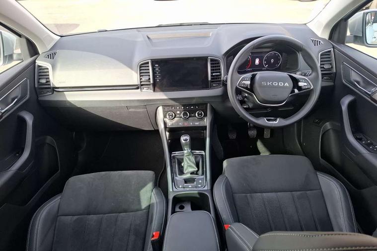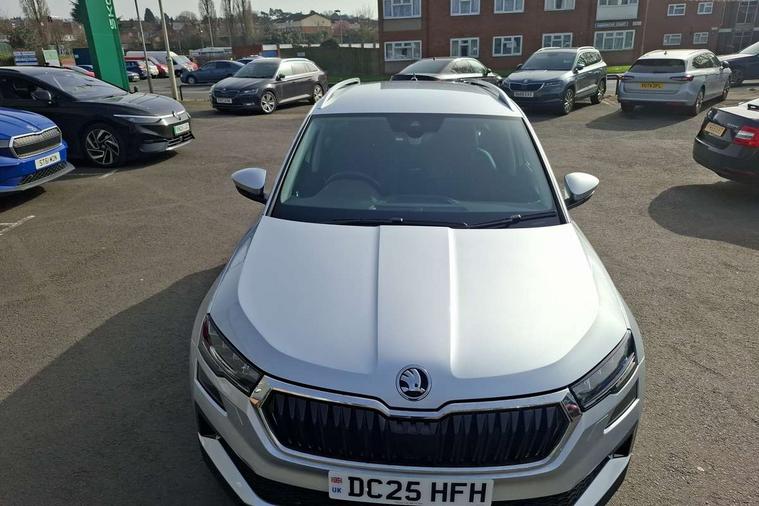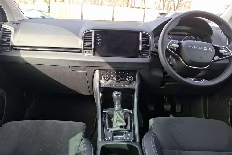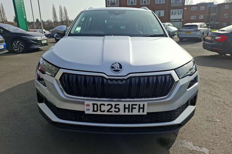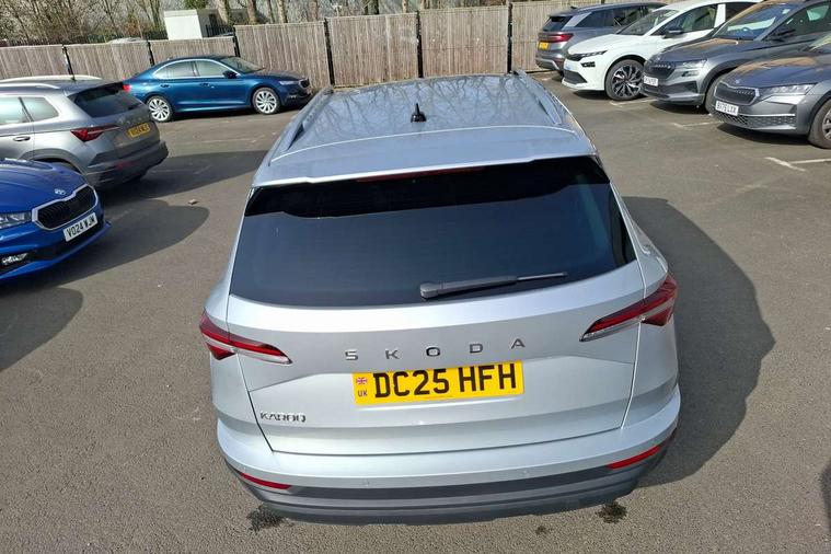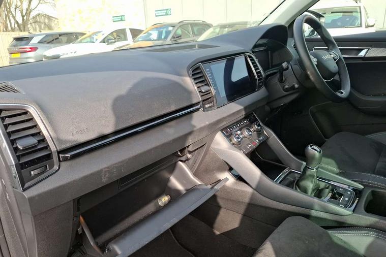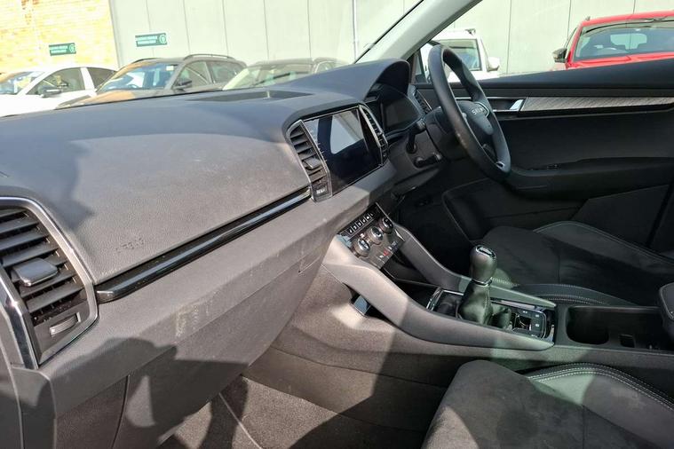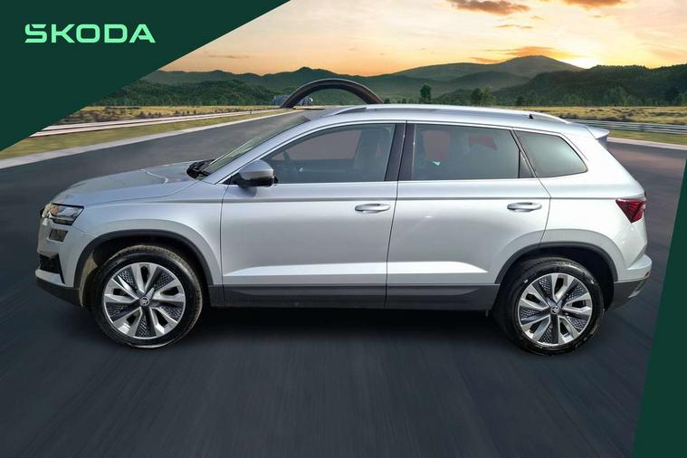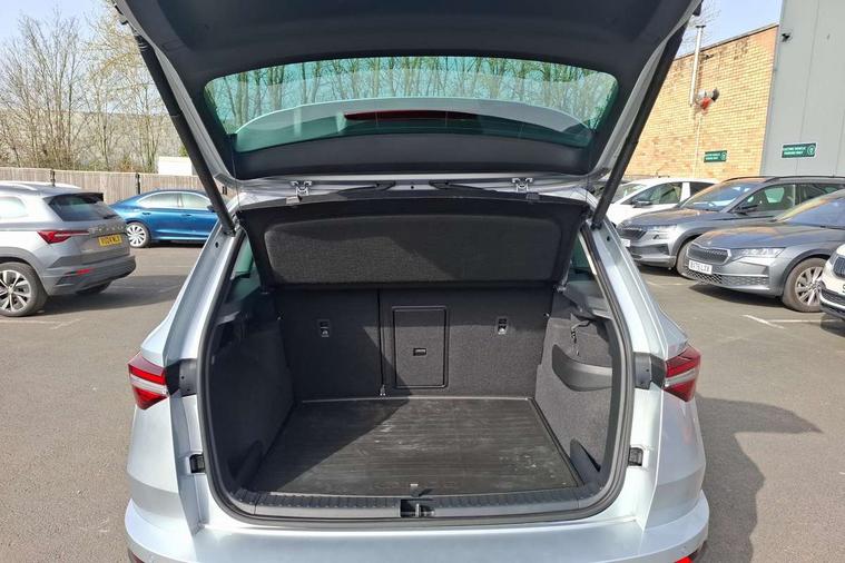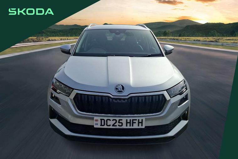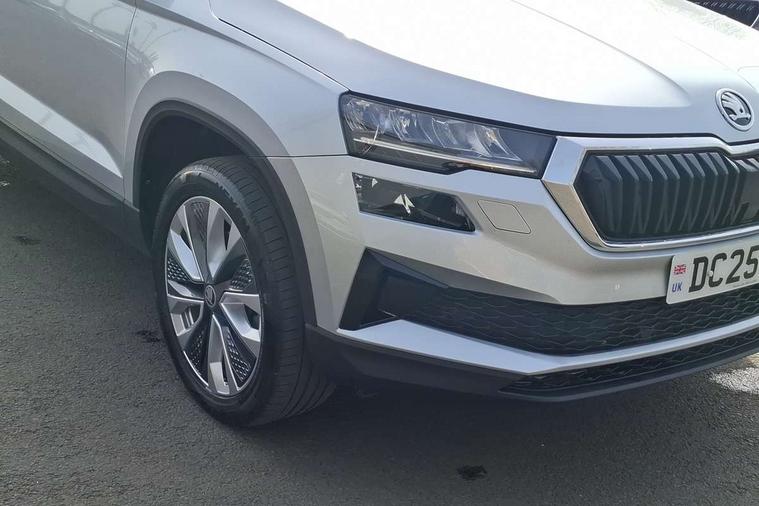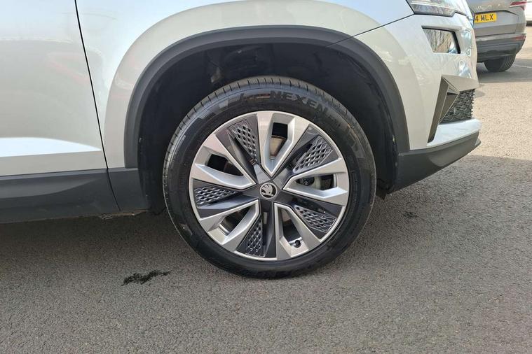 Advanced driver attention and drowsiness monitor, Drive Mode Selection including ECO function, Electro-mechanical PAS, Emergency services call system, Outside temperature gauge, Sensor for driver assistance systems, Service interval indicator, SmartLink wireless for Apple and wired for Android, Start/stop system with regenerative braking, Traffic sign recognition, USB C Port x 2 in front centre console, Virtual Cockpit - 10.25" digital display, Virtual pedal with electrically operated boot door, Wireless smartphone charging, DAB radio with Bluetooth, USB connection, Acoustic glass, Aero front windscreen wipers with intermittent function, Auto dimming rear view mirror with light and rain sensors, Black electric window control buttons, Body colour door mirrors and handles, Electric front and rear windows with child proof lock, Extended rear roof spoiler, Heated rear windscreen, LED daytime running lights, LED rear lights with high functionality welcome effect and dynamic indicators, Light assistant (coming/leaving home/tunnel light), Plastic scuff plates in door apertures, Privacy glass, Rear side wing doors, Rear window wiper with washer system and intermittent control, Safety reflectors on front doors, Third brake light, Unique dark chrome design logo on alloy wheels, 1.5 litre bottle holders in driver and front passenger door panels, 12V socket in boot, 12v socket in front centre armrest with storage compartment and rear air vents, 2 spoke leather heated multifunction steering wheel, 2 x Tablet holder, 3 rear height adjustable headrests, 3 seat bench in 2nd row, 4 foldable roof handles with rear coat hooks, Black floor carpet, Cargo elements in boot, Chrome inner door handles, Decorative door sills with KAROQ badging, Foldable hooks in the boot, Front head restraints, Height adjustable front three point seats belts with tensioners, Height/reach adjust steering wheel, Ice scraper, Illuminated glovebox, Illuminated luggage compartment, Interior noise suppression, Isofix child seat preparation for front passenger seat, Isofix child seat preparation outer rear, Manual lumbar support for front seats, Pearl grey interior ceiling, Pen holder, Pollen filter, Rear boot cover, Rear package tray, Rear reading lights, Rubbish bin door, Safety vest holder, Single front passenger seat, Skoda lettering on steering wheel, Storage box in upper central dashboard closed, Sunvisors with illuminated vanity mirrors, Textile floor mats, Ticket holder, Columbus pack - Karoq, Design Pack - Karoq, Non Smokers pack, Parking pack - Karoq, Automatic door unlocking in case of crash, Automatic fuel cut off in case of crash, Driver airbag, Electronic parking brake with auto hold function, Emergency rear braking signal, ESC (incl. ABS+MSR+ASR+EDS+HBA+DSR+RBS+MKB), Front side airbags, Head airbags, Hill hold control, Knee airbags, Passenger airbag with switch-off function, Pedestrian monitor, Power operated child safety locks, Seatbelt reminder signalisation and pretensioner for all seats, Three point seatbelts rear, Two tone horn, Tyre pressure monitor, Alarm with interior monitoring, back up horn and tilt sensor with safe function, Electronic engine immobiliser, Keyless entry and start/stop, Remote central locking with 2 remote folding keys, Black centre console, Chrome framed air vents, Satin black dashboard, Anti-theft wheel bolts protection, Breakdown and tool kit,