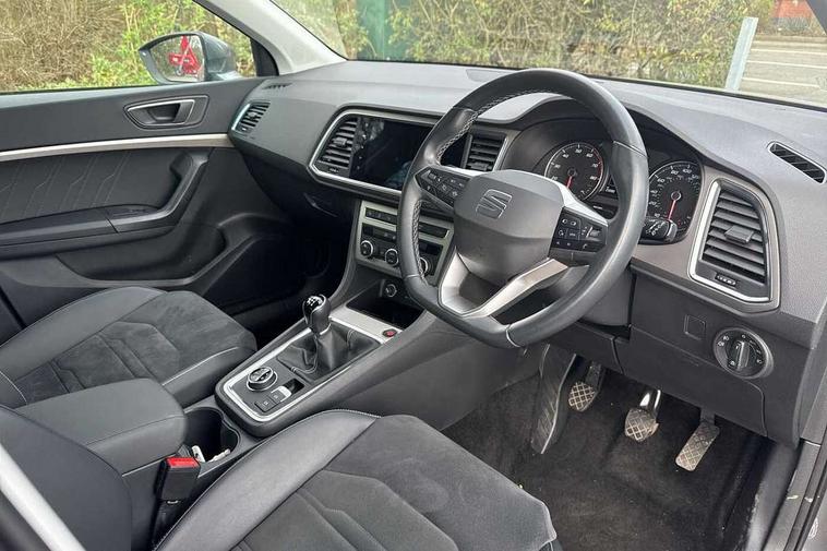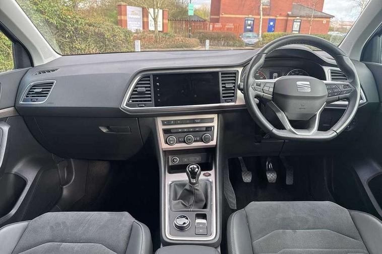 8" Digital cockpit, Colour multi-function on board computer display, E-call, Outside temperature gauge, Progressive power assisted steering, Rear view camera, SEAT drive profile with driving experience button - Normal, Sport, Eco and Individual mode, steering and throttle response, Self parking functionality (includes front and rear parking sensors), Start/stop system, Tailgate, Trip computer, Wireless full link smartphone integration, Wireless phone charger, Steering wheel mounted audio/phone controls, Black simulated exhaust pipes, Black wheel arch surrounds, Body colour bumpers, Chrome front grille frame, Chrome roof rails, Chrome side window trim, Dark tinted rear windows, Daytime running lights, Door mirrors with welcome light silhouette, Dynamic headlight range control with self adjusting whilst driving, Electric adjustable/heated/folding door mirrors, Front and rear electric windows, Front grille hot stamping, Full LED headlamps with lens and LED front fog lamps with cornering function, Illuminated aluminium front door sill, LED rear tail lights with dynamic indicators, Rear fog lights, Rear side wing doors, Rear wash/wipe, Reflex silver side mouldings, Variable front intermittent wipers, 12V socket in front, 3 seat bench in 2nd row, 60/40 split folding rear seat, Drawer under right front seat, Dual zone climate control, Front and rear head restraints, Front centre armrest, Front seat back storage pockets, Height adjustable driver and passenger seat with lumbar adjustment, ISOFIX points in outer rear seats with top tether anchorage points, Leather steering wheel and gear knob, Microsuede upholstery with front comfort seats, Rear armrest and easy back seat release mechanism from boot, Single front passenger seat, Convenience pack - Ateca, Interior lighting pack - Ateca, Navigation system pack with DAB - Ateca, Safe and driving pack with lane assist - Ateca, 3x3 point rear seatbelts, ABS, Traction control system (TCS), Electronic stability control (ESC) and Electronic differential lock system (XDS), Airbags - Driver and front passenger airbag with deactivation, front side, two curtain and driver's knee airbags, Electric parking brake with auto hold function, Front and rear seatbelt reminder, Hill hold control, Manual rear child locks, Single tone horn, Tiredness recognition system, Traction control, Tyre pressure monitoring system, Alarm, Keyless entry, Locking wheel bolts, Remote central locking, Chrome interior detailing, 18" Brillaint silver alloy wheels,