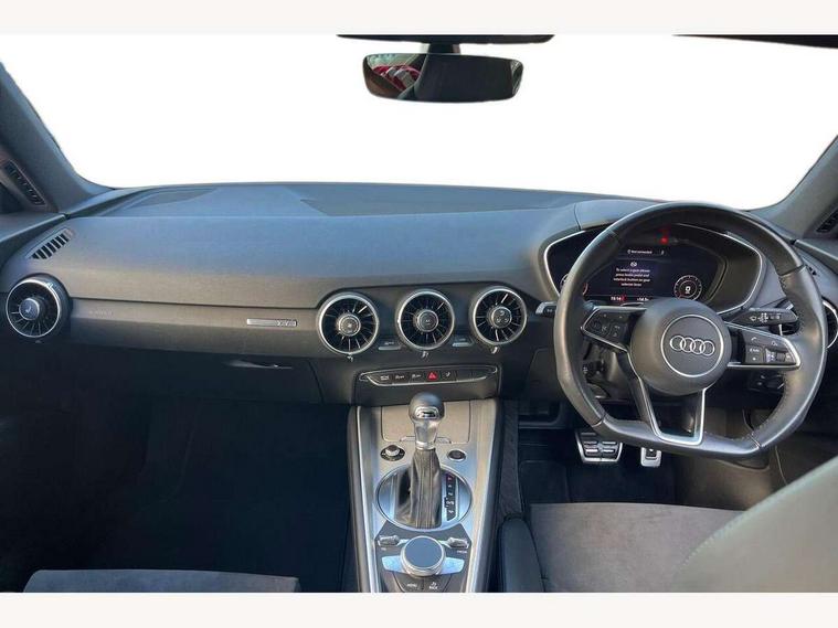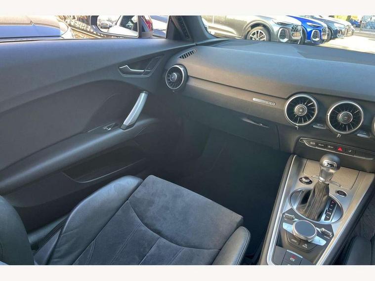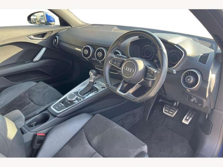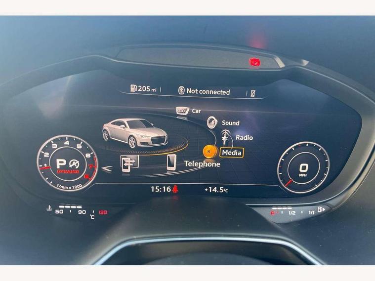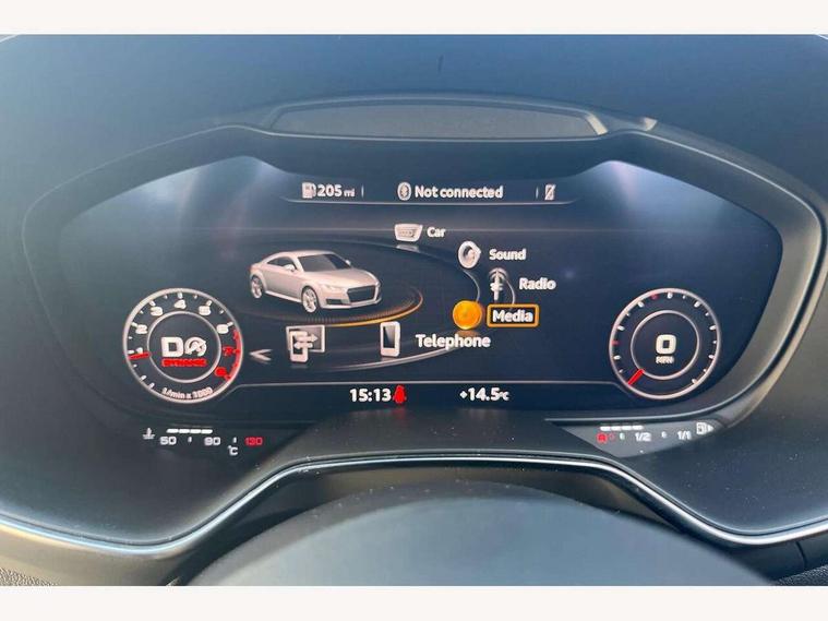Audi drive select with 4 Pre configured modes, Audi smartphone interface, Audi virtual cockpit - 12.3" high-resolution LCD display with fully customisable instrument cluster, Cruise control + speed limiter, Emergency call service, MMI touch panel, Mobile phone preparation with bluetooth interface, Progressive power assisted steering, Service interval indicator, Start/Stop system with energy recuperation, TP memo, Sports suspension, AM/FM radio, Bluetooth audio streaming, DAB Digital radio, MMI Radio with CD player and SD/XC card slot, Auto dimming rear view mirror, Body colour bumpers, Body colour door mirrors, Electric folding door mirrors, Electric front windows, Electrically adjustable and heated door mirrors with integrated LED side indicators, Front fog lights, Green tinted heat insulating glass, LED 3rd brake light, Light and rain sensors, Rear boot, Retractable rear boot spoiler, Sunband for windscreen, Xenon headlights with LED daytime running lights with automatic headline range control + LED rear lights, brake lights and rear indicators, 12V socket, 2 rear seats, 3 spoke flat bottomed high multi-function leather sport steering wheel with gearshift paddles, Alcantara/Leather upholstery includes seat centre panels, door trim inserts in black Alcantara with side bolsters, head restraints in black leather, Aluminium door sill trims, Front centre armrest, Front passenger seat, Front sports seats, Heated front seats, Height/reach adjust steering wheel, Integrated head restraints, ISOFIX child seat mounting for front passenger seat with airbag deactivation, Manual adjustment of seat height, fore/aft position, seat angle, seat depth and backrest angle, Rear head restraints, Rear top tether child seat ISOFIX attachment, Split folding rear seat, Non smoking pack - TT/TT RS, 3 point front seat belts, ABS, ASR traction control, Curtain airbags, Driver and front passenger airbag with front passenger airbag deactivation, EDL traction control, Electromechanical parking brake, ESP, First aid kit, Front side airbags, Head airbags, Hill hold assist, Seatbelt warning, Tyre pressure loss indicator, Warning triangle, Anti theft alarm, Anti theft wheel bolts, Immobiliser, Keyless Go, Remote central locking, Aluminium design inlays, Tool kit, Tyre repair kit,
