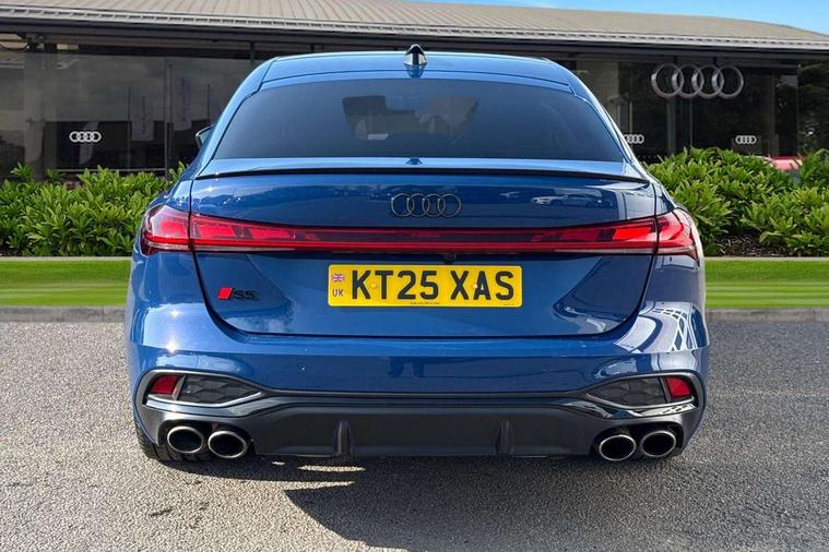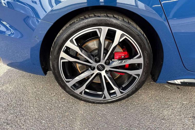 Adaptive cruise assist plus with steering intervention, Advanced driver attention and fatigue montior, Audi application store, Audi assistant, Audi connect emergency call and service, Audi drive select, Audi smartphone interface, Audi virtual cockpit plus with 11.9" OLED colour display, Automatic start/stop system with coasting functionality, Camera based traffic sign recognition, Garage door opener, Intersection assist, Lane change assistant with exit warning system, rear cross traffic alert and rear turn assist, Lane departure warning with emergency assist, MMI 10.9" front passenger touch display, MMI navigation plus with high resolution 14.5" OLED touchscreen colour display, Park assist plus, Parking system plus with 360 display, Progressive steering with servotronic, Swerve assist and turn assist, Top view camera, Traffic sign based speed limiter, Quattro with sport differential, S sports suspension with damper control lowered by 20mm, 2 USB-C ports in both the front and rear, DAB digital radio reception, Smartphone compartment with wireless charging, Aluminium window trims, Auto dimming rear view mirror, Black door handles, Black roof rails, Dark chrome-plated tailpipe trims, Digital OLED tail lights including communication light, Door mirrors - electrically adjustable, heated, folding and auto dimming on both sides, Front and rear electric windows, Front door sill trims with aluminium inlays, illuminated with 'S' logo, Headlight cleaning system, High beam assist, LED daytime running lights, LED third brake light, Matrix LED headlights with eight light signatures selectable via the MMI or the myAudi app, Panoramic glass roof with switchable transparency, Privacy glass, Rear and side windows with heat insulating glass, Rear side wing doors, Rear wash/wipe, Red S rhombus badging with S lettering on rear, S bumpers, radiator grille and diffuser in titanium matt black and diffuser insert in matt silver, White rhombus logo projection light in exterior mirrors, Windscreen with acoustic glazing, 3 rear headrests, 3 seat rear bench, 3 spoke leather steering wheel with multi-function buttons with touch control, flattened on top and bottom, with S badging and contrast stitching, 3-zone automatic climate control, 40:20:40 split folding rear seat bench with centre armrest and cup holders, Comfort front centre armrest, Electric steering wheel adjustment, Electrically adjustable front seats, Front and rear floor mats, Front sport seats plus with integrated headrest and S embossed logo, Headlining in black cloth, Heated front and outer rear seats, Heated steering wheel, i-Size child seat mounting on the front passenger side and outer rear seats, i-Size and top tether on the outer rear seats, Luggage compartment lid, electrically opening and closing, Memory function for driver seat, Pearl Nappa leather upholstery, Pneumatically adjustable lumbar support, Single front passenger seat, Stainless steel pedals and footrest, Steering wheel grips in perforated leather and shift paddles, Ventilation seat and massage function for the driver and front passenger, Black styling package plus - A5, Sound and vision pack - A5, 3x3 point rear seat belts, Acoustic vehicle alerting system, Convenience key with safelock, Driver airbag, Electric child safety locks, First aid kit with warning triangle and vests, Front emergency brake assist, Front passenger airbag, Front passenger airbag deactivation, Hill hold assist, Occupant detection in rear seat area, Proactive passenger protection system for front, sides and rear, Red brake calipers, Seat belt monitoring with rear seat occupant reminder, Side airbags in front and rear with head airbag system and front interaction airbag, Tyre pressure loss indicator, Anti theft alarm, Anti-theft wheel bolts, Keyless Go, Accent surfaces and control buttons in gloss black, Black dashboard with contrast stitching, Softwrap in Dinamica with contrast stitching, Upper and lower interior elements in dinamica microfiber, 20" 5 twin spoke design Audi Sport alloy wheels in metallic black and gloss turned finish, Tyre repair kit,